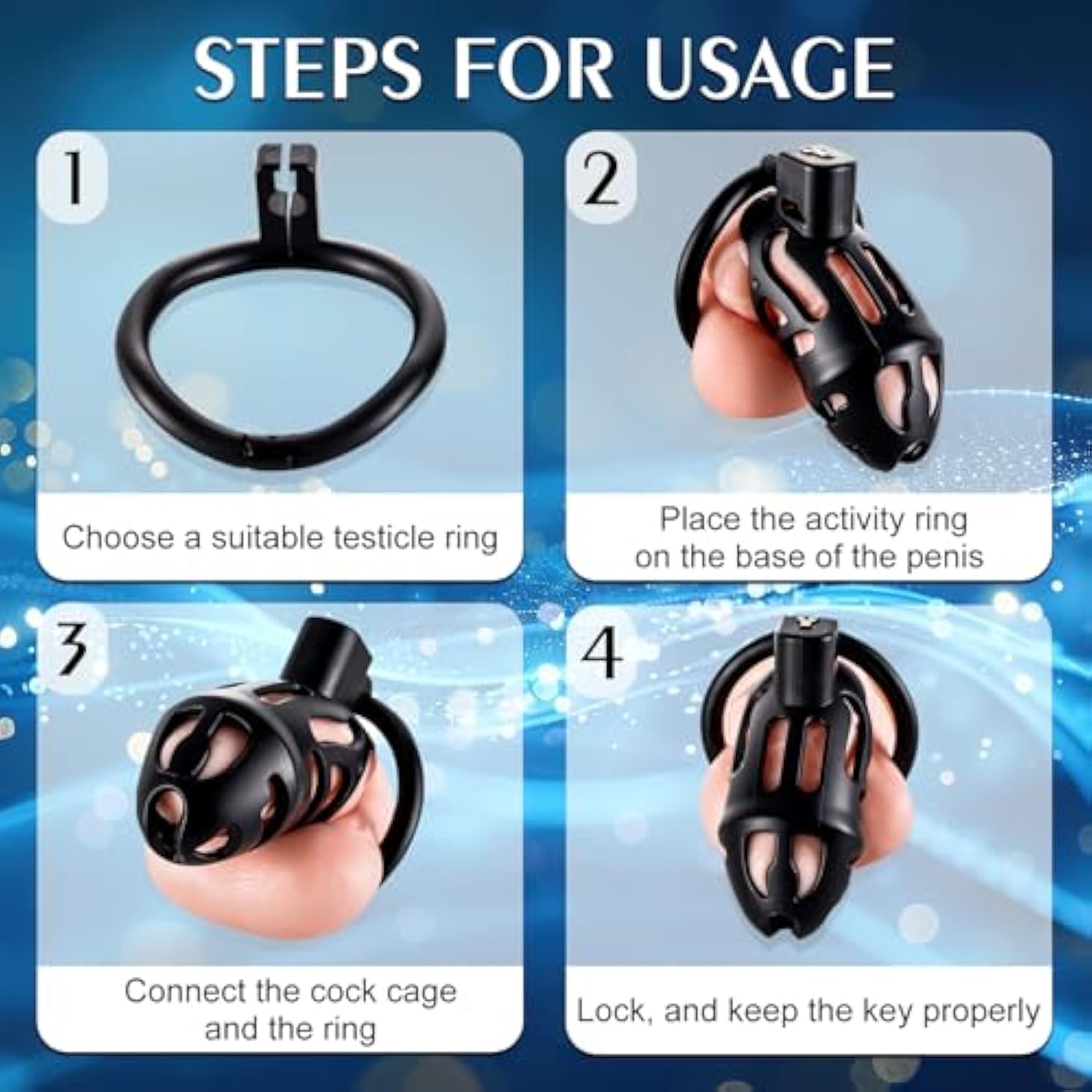 Male Cock Chastity Cage,Lightweight Invisible Male Chastity Device With 3 Active Rings,Adult Abstinence Penis Bondage Male Sex Toy(Invisible Lock)