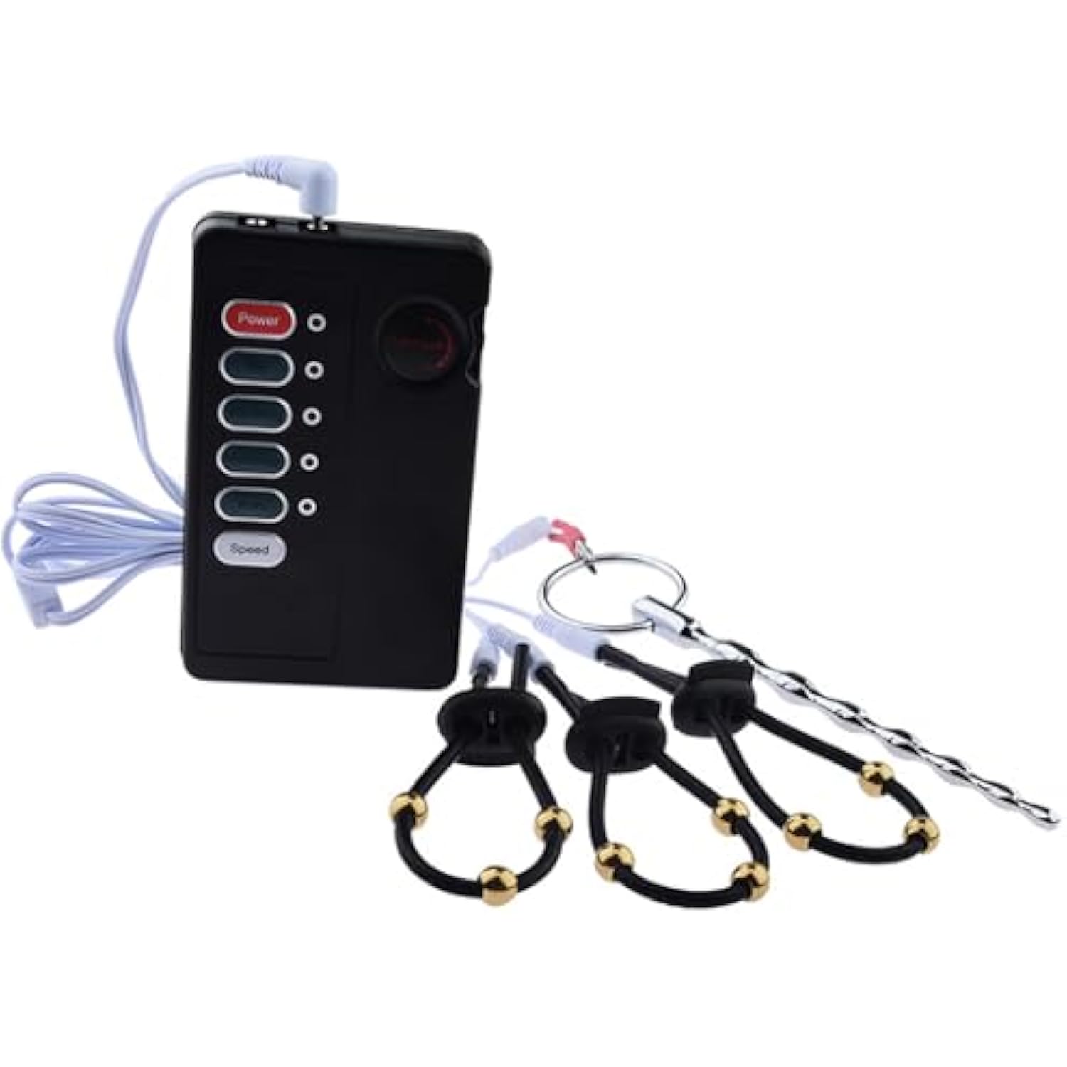 Male Masturbation Electric Shock Set Adjustable Penis Ring Penis Ring With Beads Metal Beads Electric Shock Urethral Plug Sex Toy