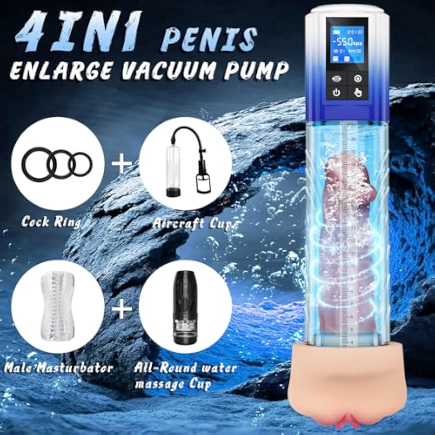 - [4-In-1 Penis Enlargement] This Male Sex Toy Combines An Automatic Male Masturbator Cup And Penis Pumps Erection Trainer, Featuring A Penis Enlarge Air Pressure Device, 3D Realistic Pump Sleeve, Smart Lcd Display, And An Extended Cylinder That Can Grow
