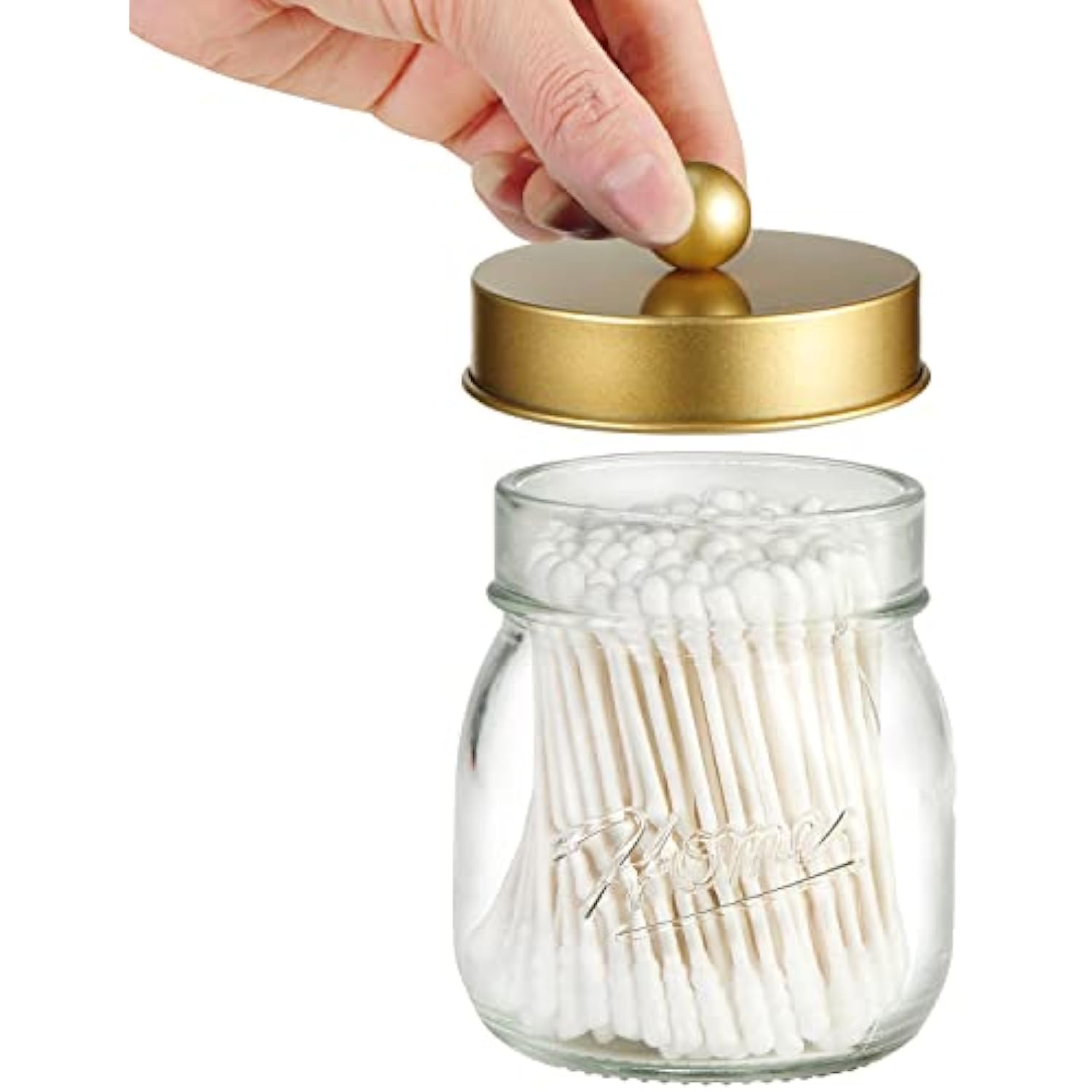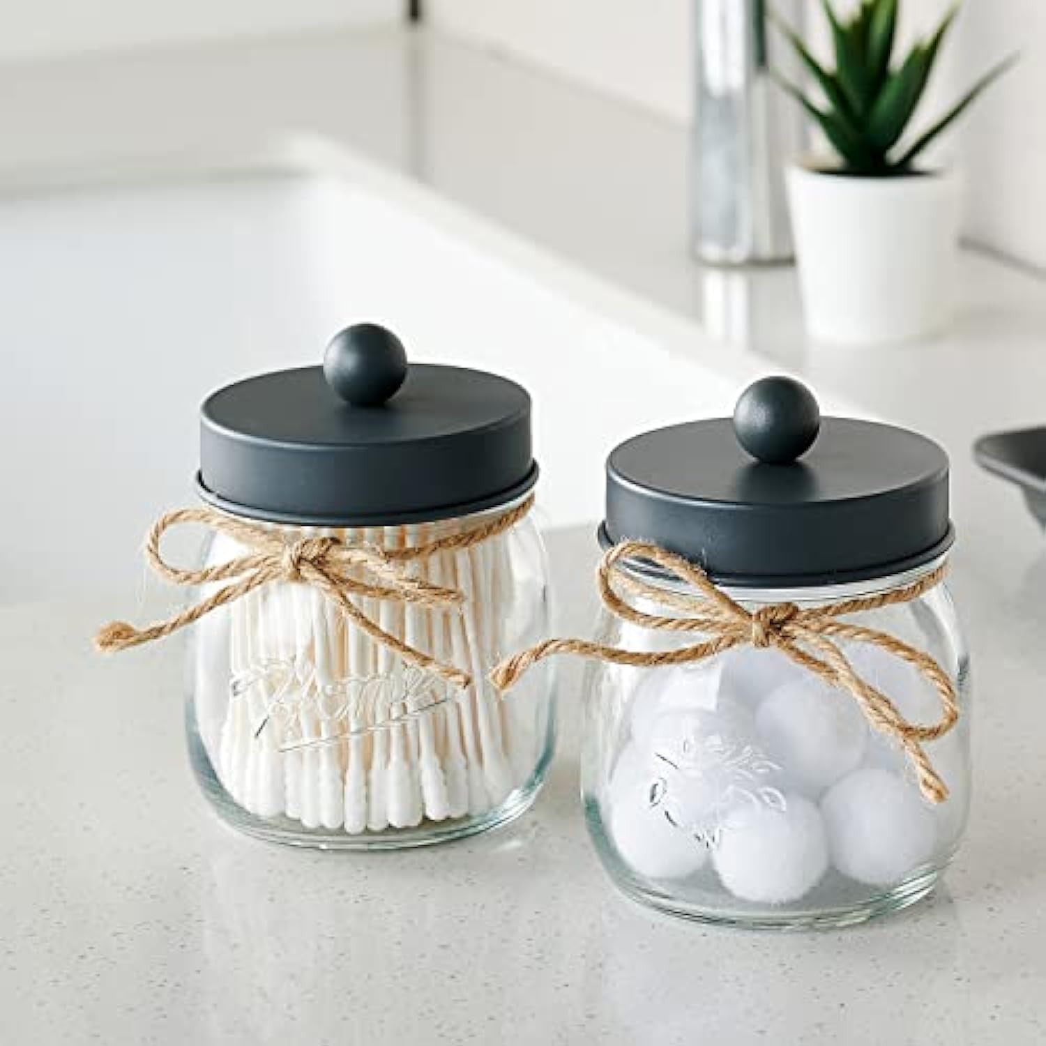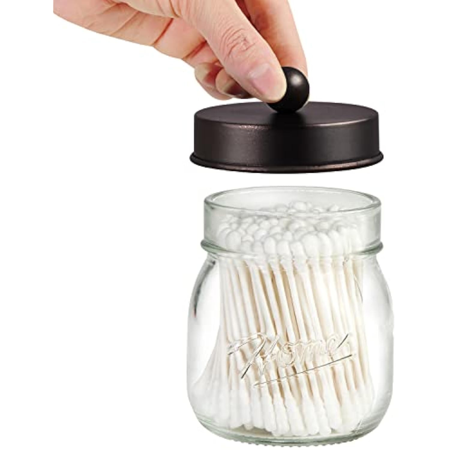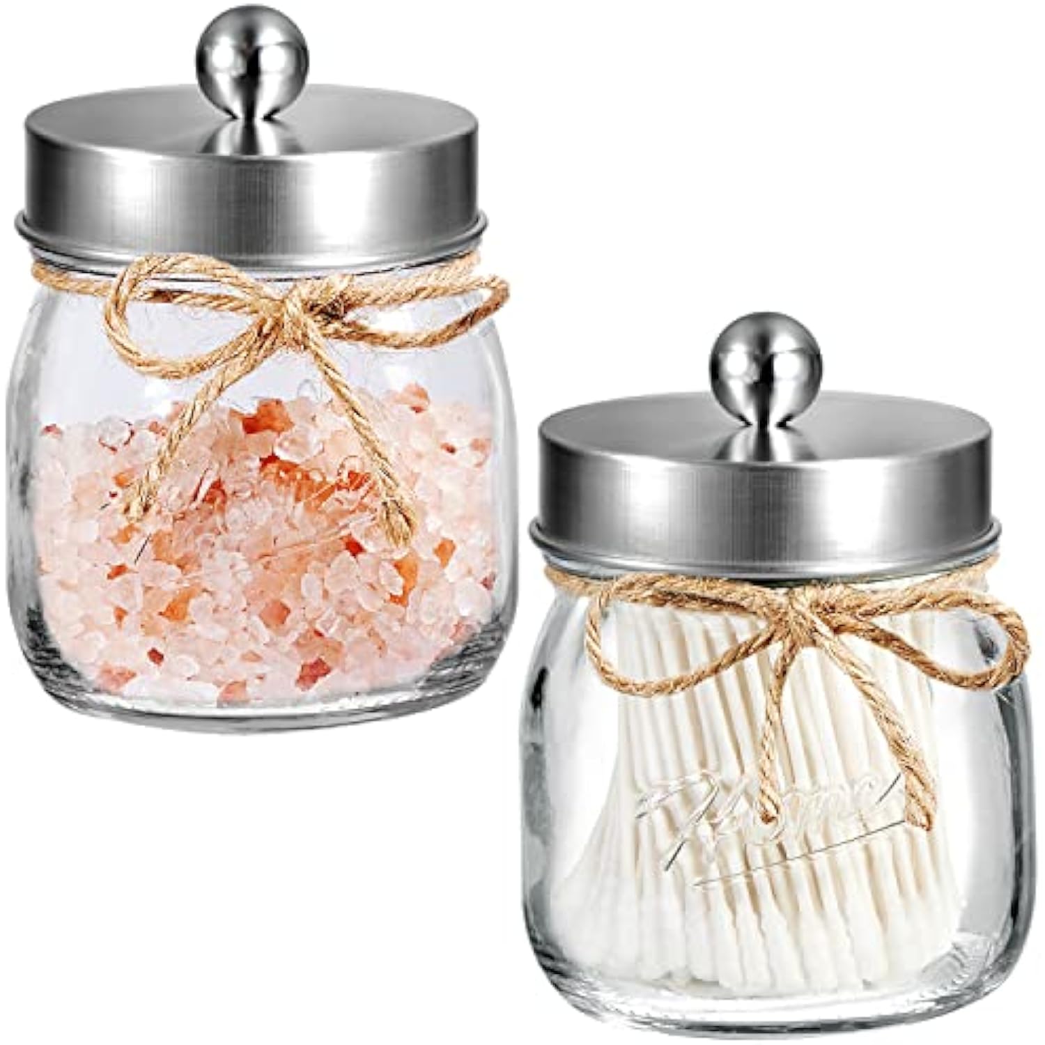 - This Mason storage jars are an attractive way to organize items like Q-tips, cotton balls, cotton rounds,and bath salts,or any other bathroom necessities and accessories. Plus they're simple and affordable to make!