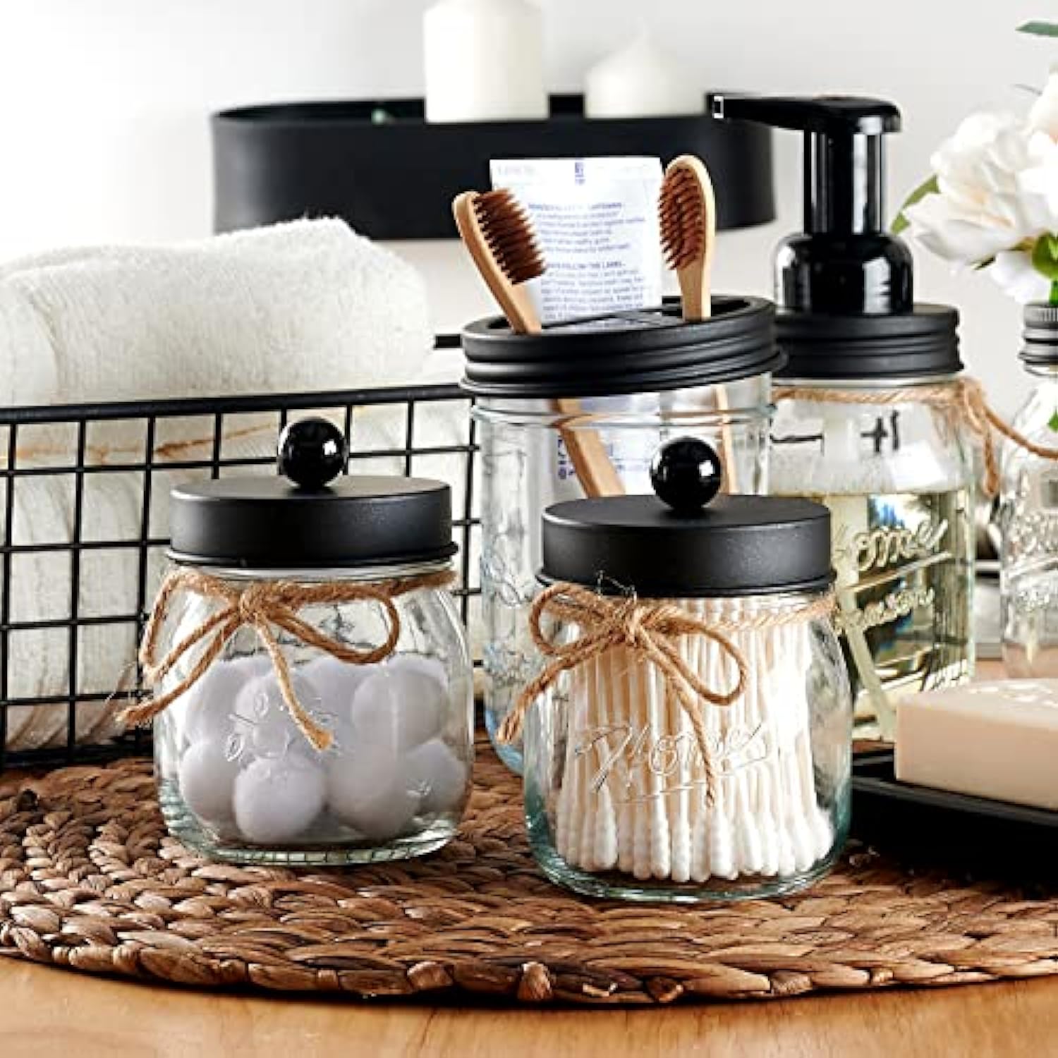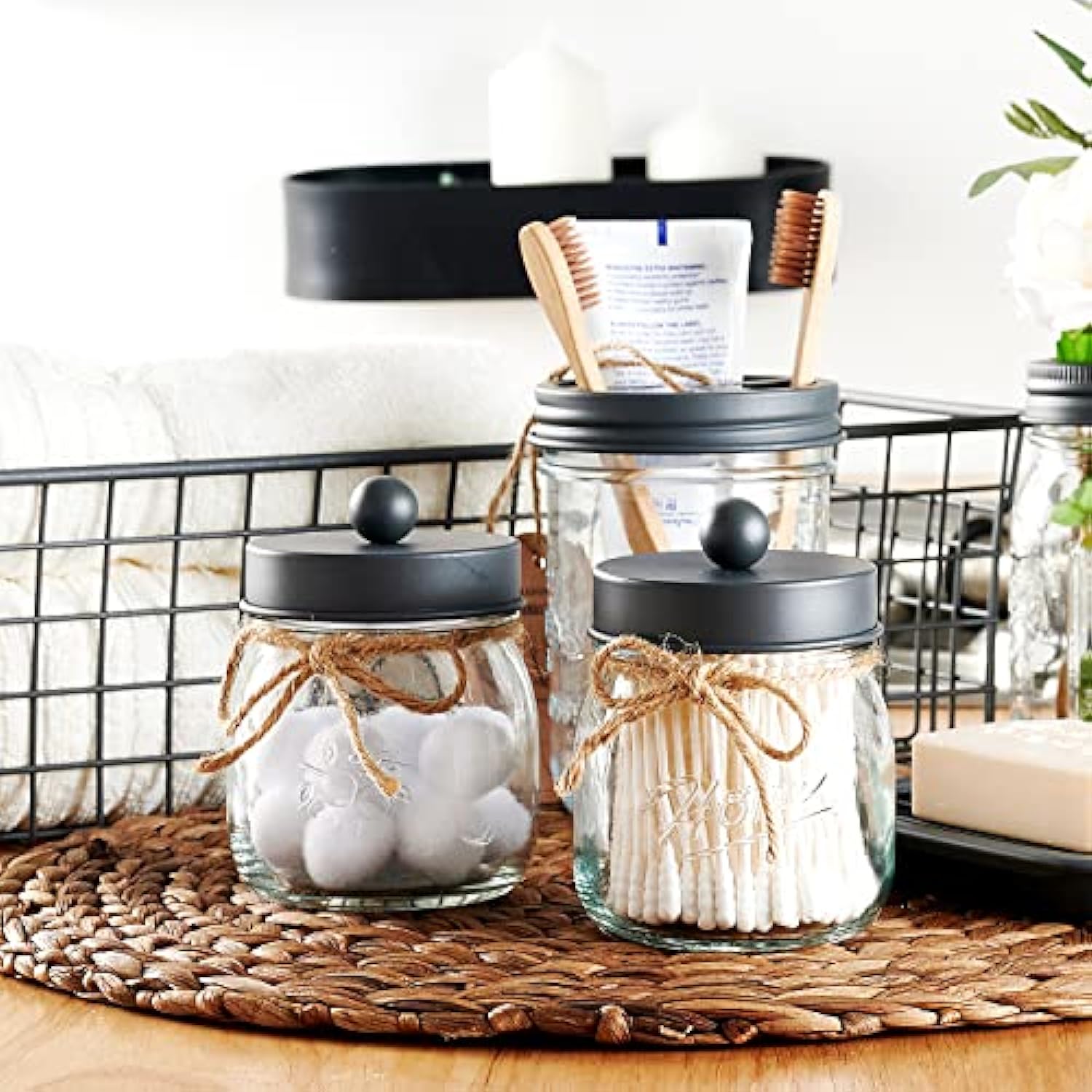 Mason Jar Decor Bathroom Vanity Storage Organizer Canister