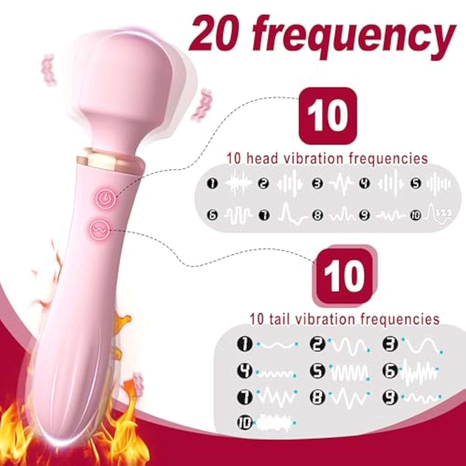 | Don'T Want To Wait And Want To Reach The Ultimate Thrill Instantly This Vibrator Sex Toy For Woman Is A Good Choice! This Vibrator Erotic Product Has A Dual Head Vibration Function. One Head Is Striped Design, Can Be Used As A Dildo, The Other Head Is Designed As A Vibrator. It Is Flexible Fit And Comfortable To Touch Which Is Suitable For Neck, Back, Vagina, Nipples And Other Large Areas. | | The Clitoral Massager Has 10 Vibration Modes On The Head And Tail, Ranging From Shallow To Deep, From Weak To Strong, Allowing You To Gradually Lose Yourself Under Its Control. The Constant Energy Micro-Heating At The End Provides A More Comfortable Warmth. | | With A Maximum Vibration Volume Of 50 Decibels, The G-Spot Vibrator Uses Powerful Motors To Further Reduce Noise And Make It Work More Quiet. The Vibrator Can Be Used As A Female Masturbator And Can Also Be Used For Body Massage, Which Is Helpful For Relaxing The Body. | | The Female Massager Wand Is Made Of Body-Friendly Silicone. With A Beautiful Appearance And Smooth Surface, It Can Directly