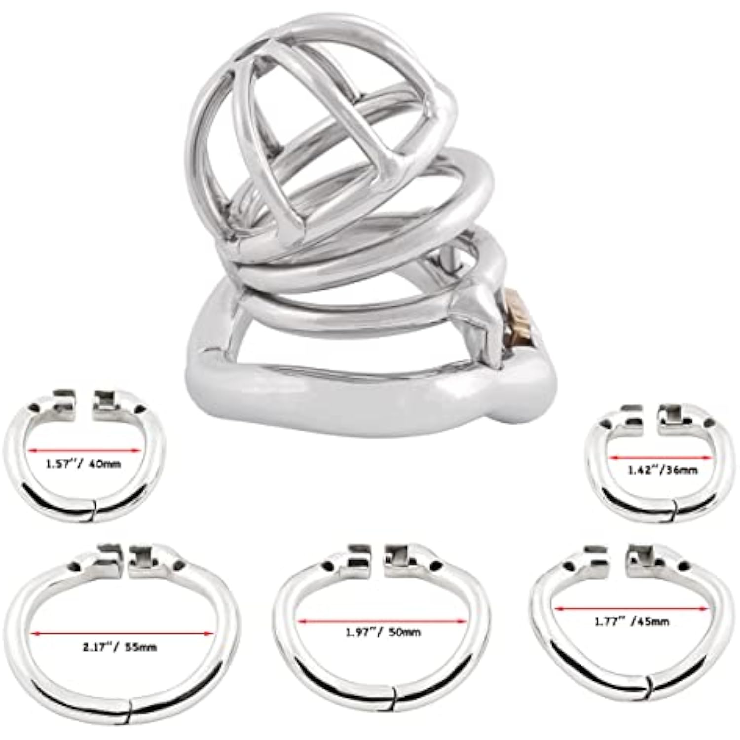 Medical Grade 304 Stainless Steel Ergonomic Design Chastity Device Easy To Wear Male Sm Penis Exercise Sex Toys K750 (50Mm/ L Size)
