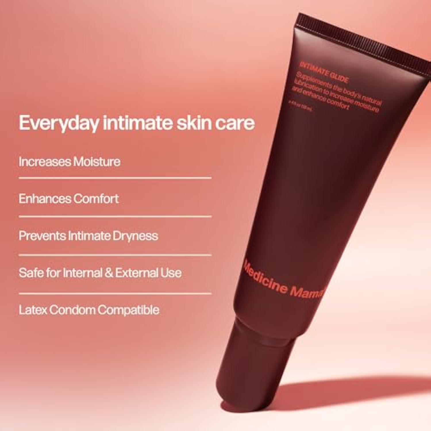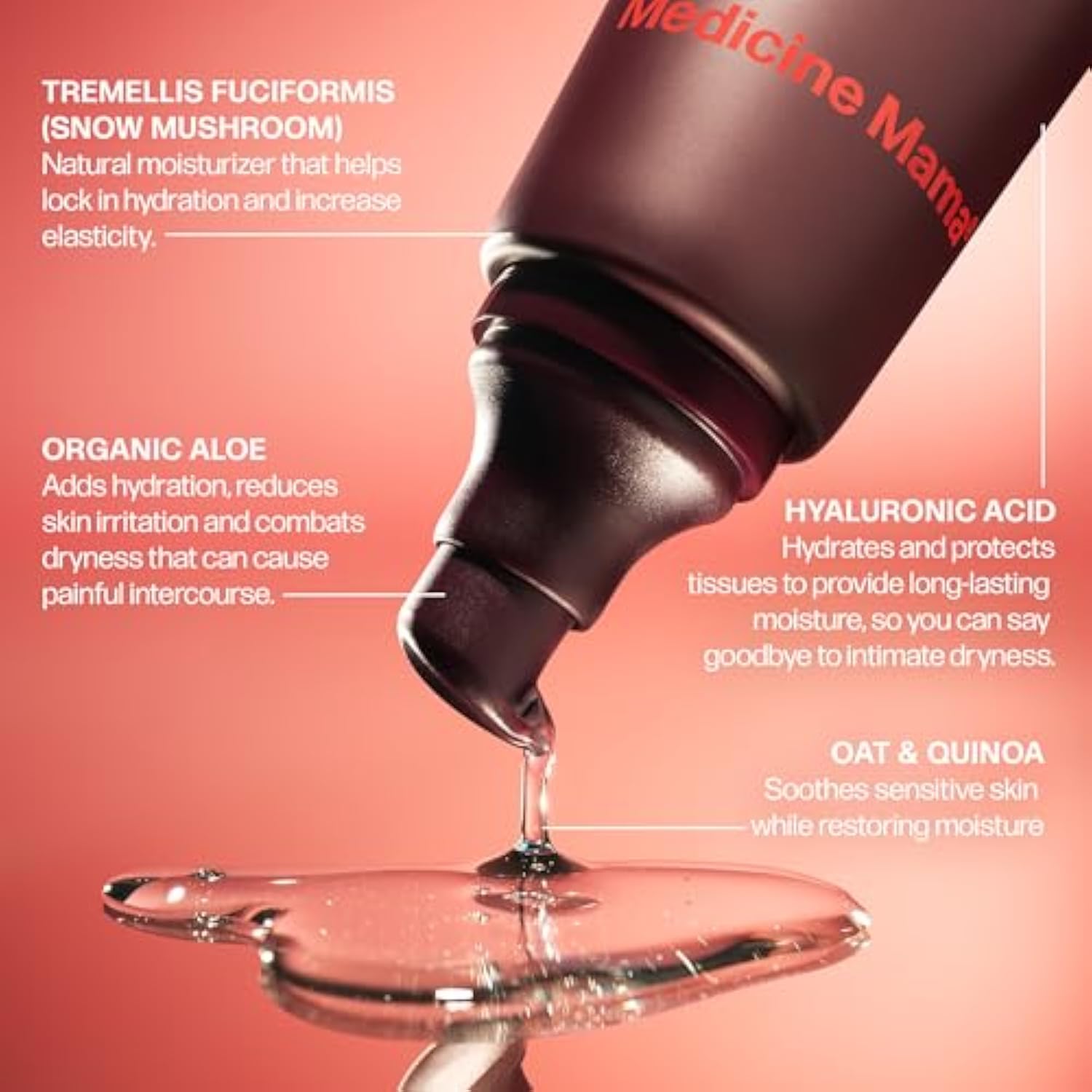 | All-Natural Lubricant: This Organic Aloe and water-based personal lubricant and vaginal moisturizer supplements the body's natural lubrication to increase moisture and enhance comfort | | Gentle, Long-Lasting Moisture: Hydrates and protects tissues, so you can say goodbye to intimate dryness; use as needed externally or internally to supplement your body's natural moisture during sex or for everyday hydration | | Nature Knows Best: Contains Snow Mushroom, a rich natural moisturizer that helps lock in hydration and increase elasticity, and Hyaluronic Acid, that hydrates and protects tissues to provide long-lasting moisture, so you can say goodbye to intimate dryness. | | Tested Safe for Internal Use: Intimate Glide personal lubricant is FDA 510(k) cleared, meaning it is safe for internal use.; in a clinical study* on hyaluronic acid, an ingredient in Intimate Glide, many women began to see relief from vaginal dryness within nine days of treatment | | Handcrafted by Artisans for Over 20 Years: Medicine Mama’s Apothecary has been making natural, vegan cruelty-free feminine care products since 1988; formulated without; Parabens, Phthalates, GMO’s, PEGs, Petrochemicals, Mineral Oil, Propylene Glycol, Glycerin, Sulfates, Dyes Hormones | |