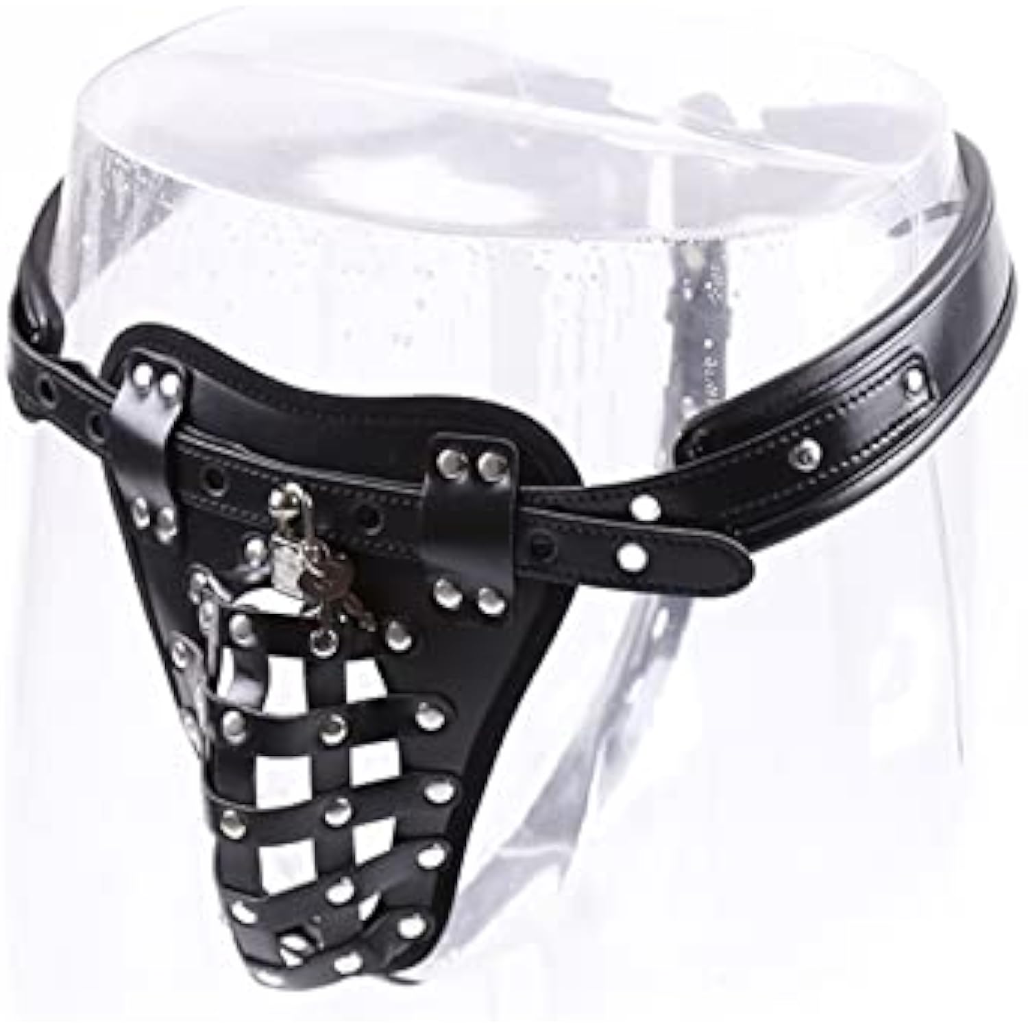 Men'S Chastity Pants Penis Cage Chastity Belt For Man Gay Male, Sexy Faux Leather Chastity Thong With Chastity Lock And Key For Adults Couples Bdsm Sm Sex Bondage Restraint Role Play Fetish Underwear