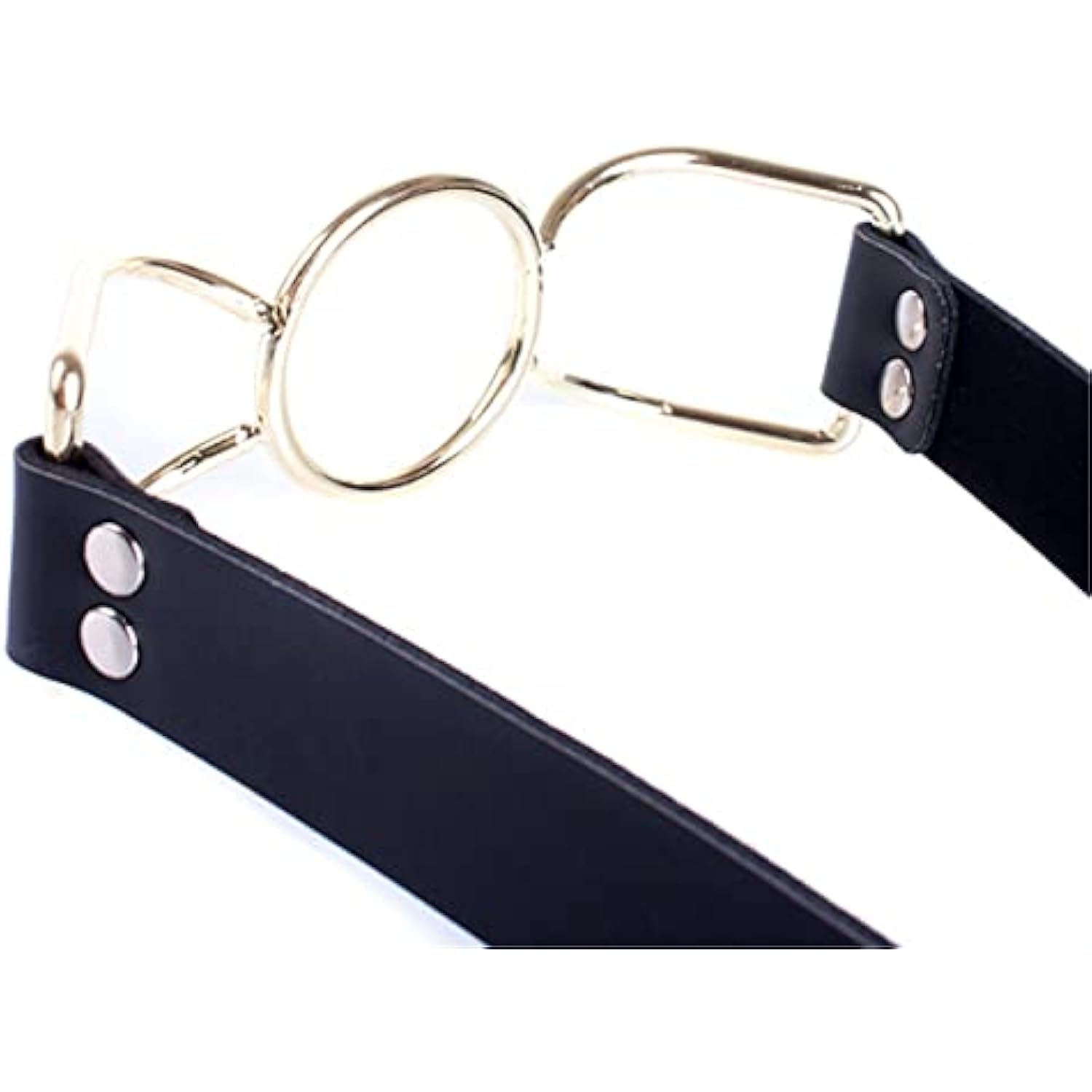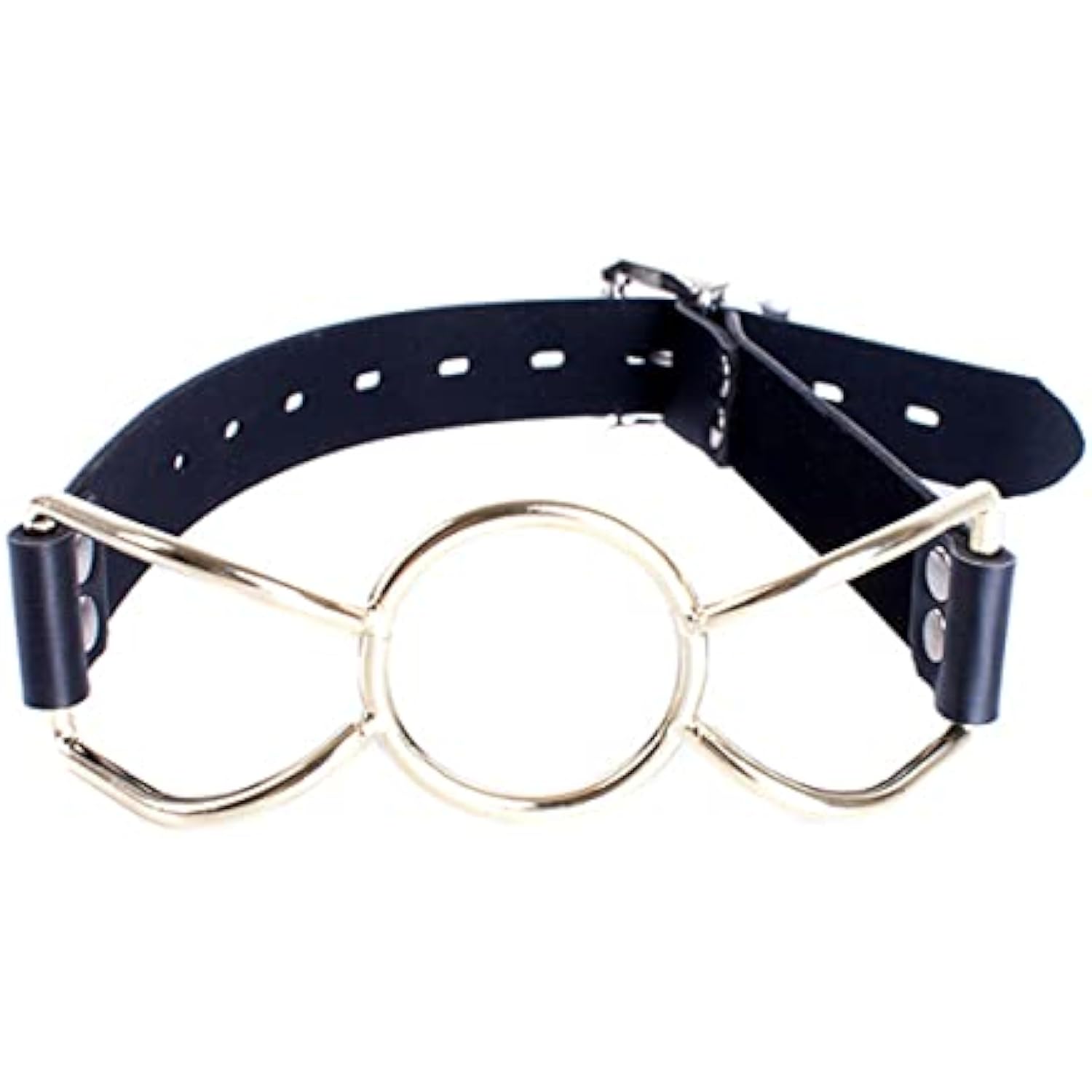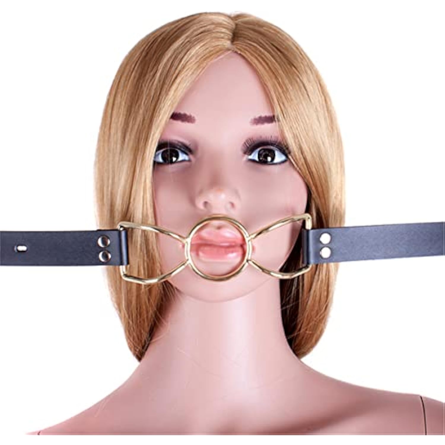 Metal Butterfly Ring Gag With Leather Head Slave Harness Restraint Mouth Gags Sex Toys For Couples (Gold)