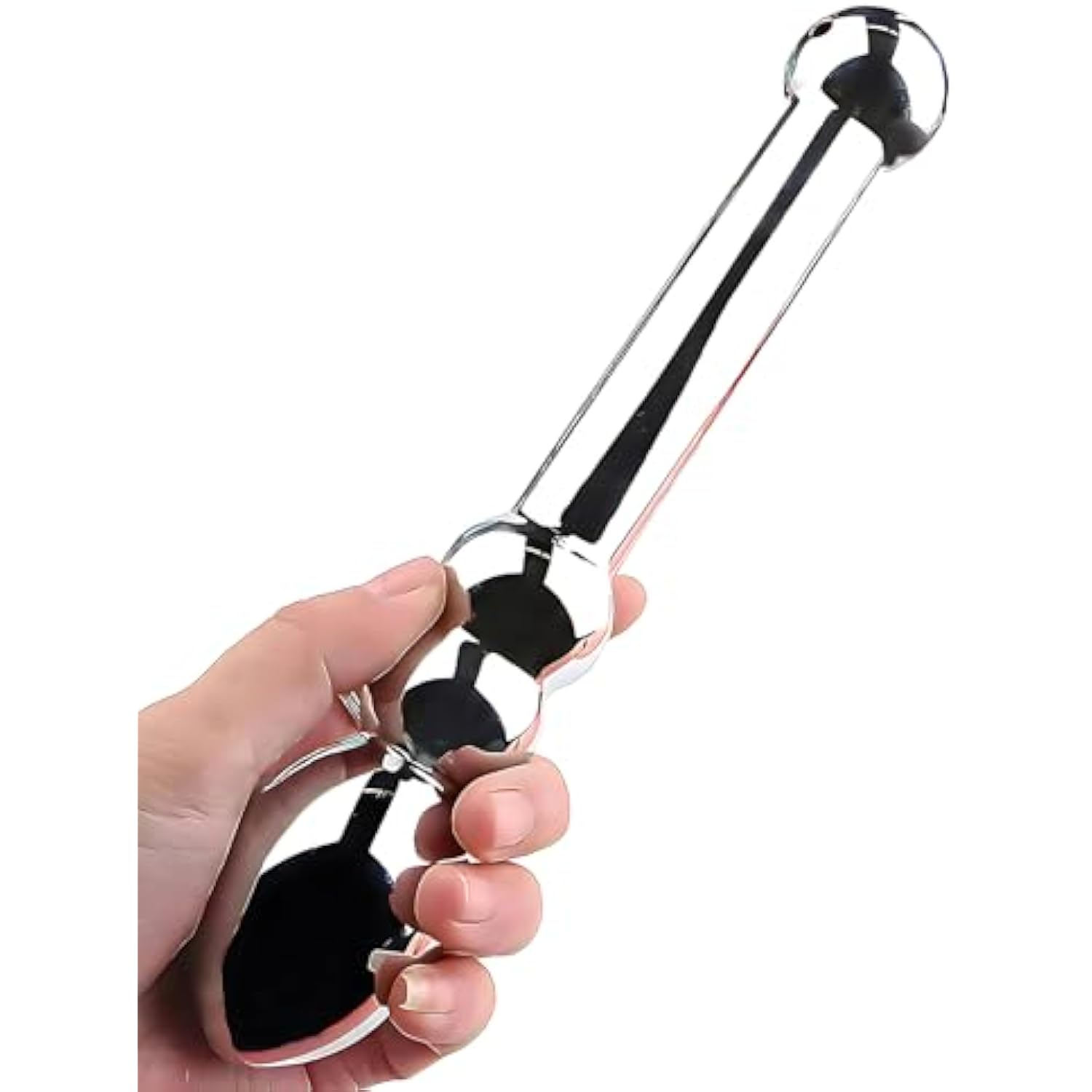 Metal G-Spot Dildo With Anal Beads & Massage Wand - Double-Ended Stimulator For Couples, Dual Pleasure Anal Plug And Clitoral Toy (Pd-S11)