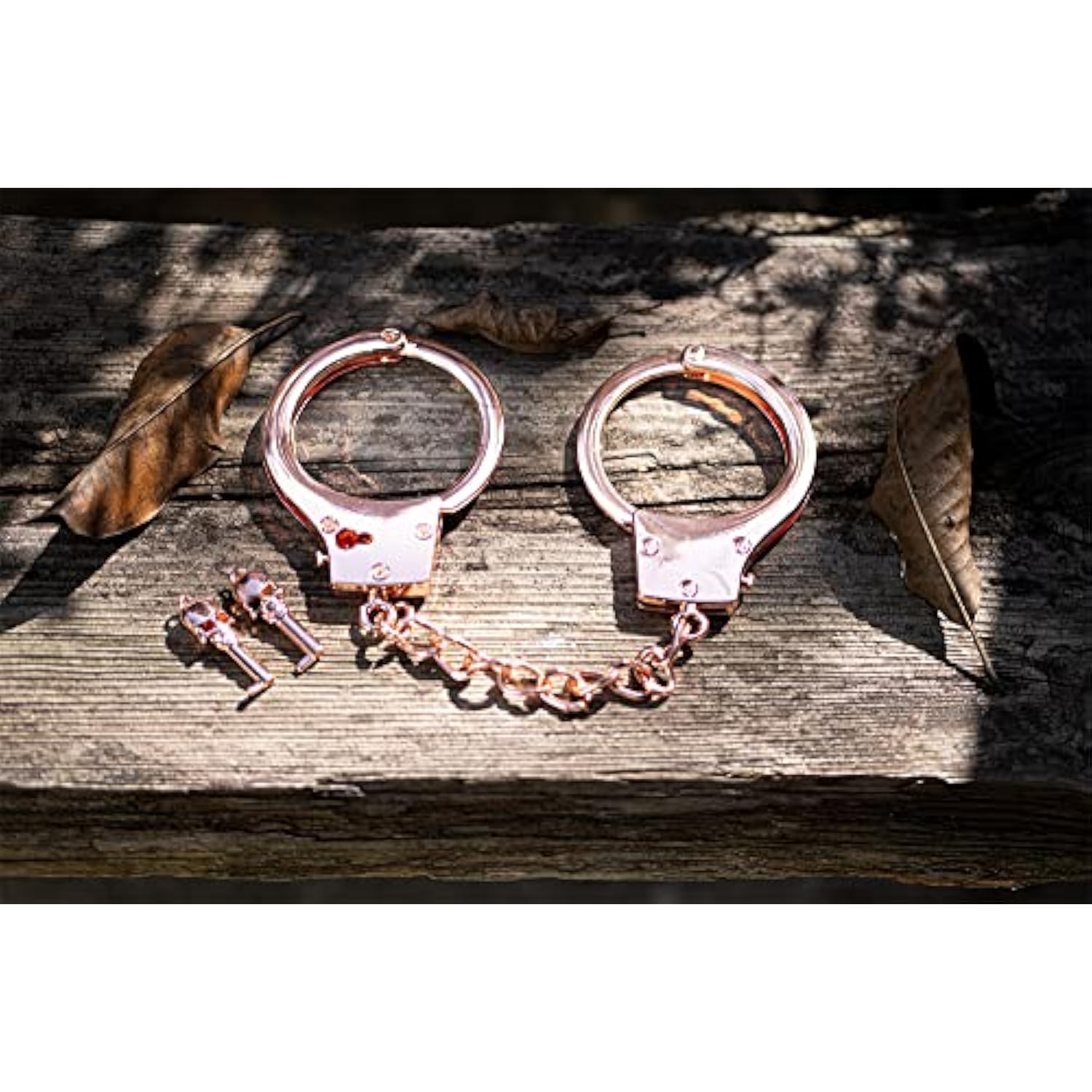 Metal Handcuffs With Two Skull Keys - Prop Toy Handcuffs (Rose Gold)