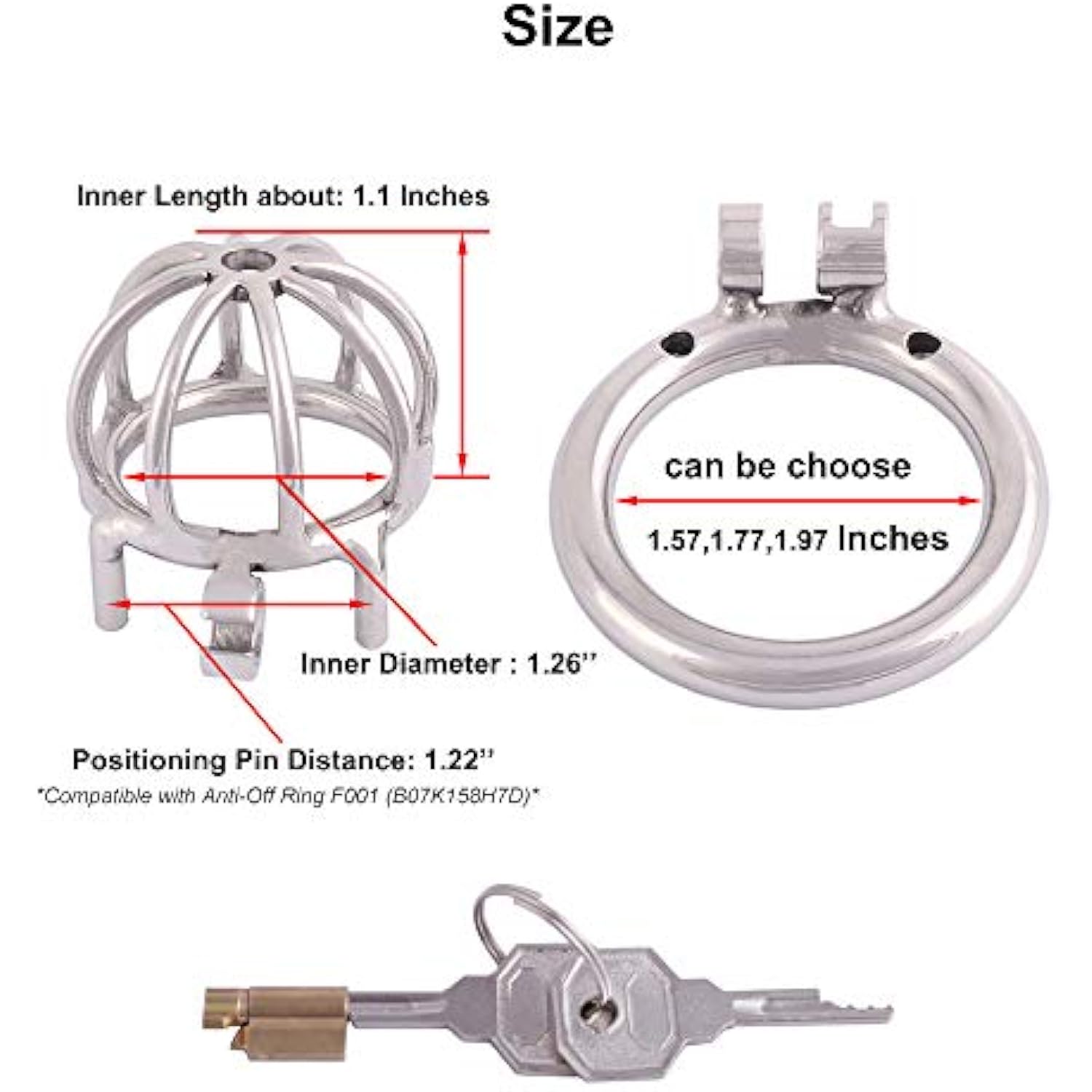 Metal Male Chastity Device Small 304 Steel Stainless Comfortable Cock Cage Adult Game Sex Toy D250 (1.97 Inch / 50Mm) Silver Grey