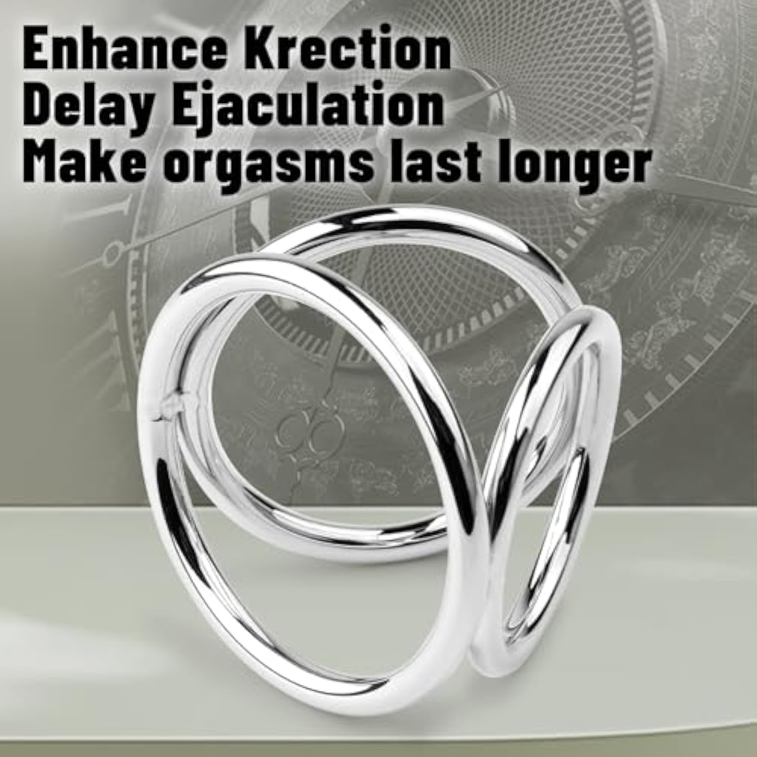 Metal Penis Ring, Triple Cock Ring Penis Loop Sex Toy For Men, L