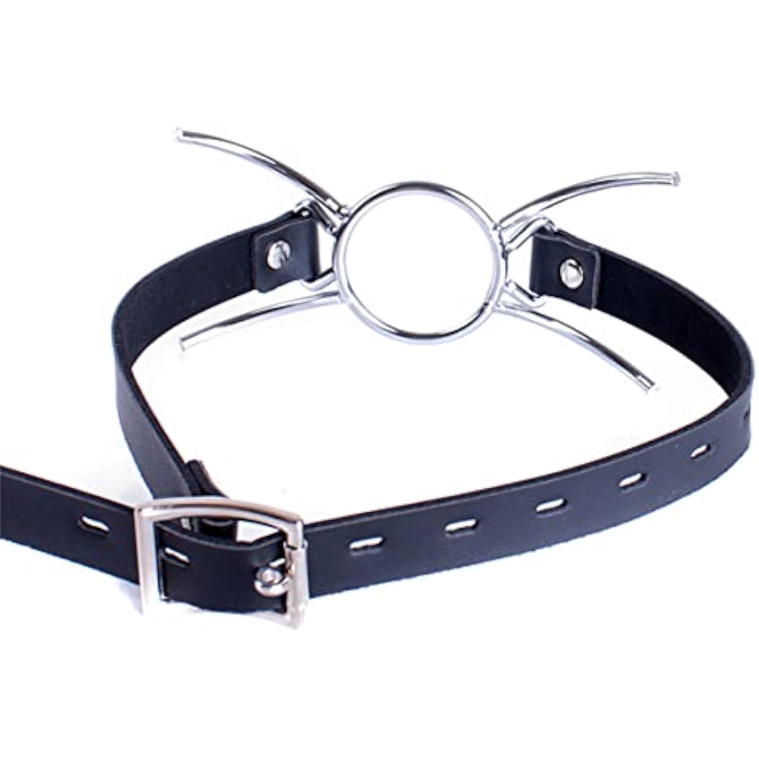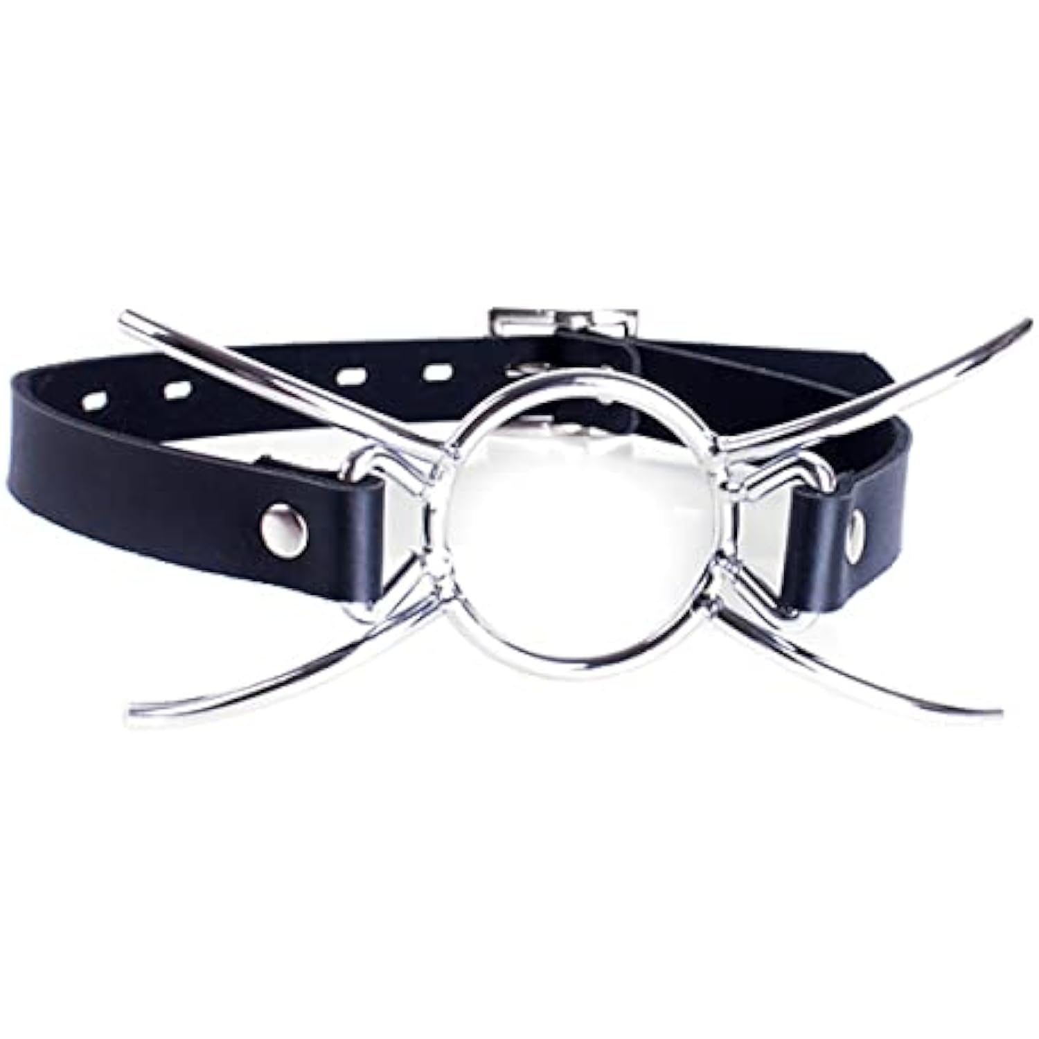 Metal Spider Ring Gag With Leather Head Slave Harness Restraint Mouth Gags Sex Toys For Couples (Silver)