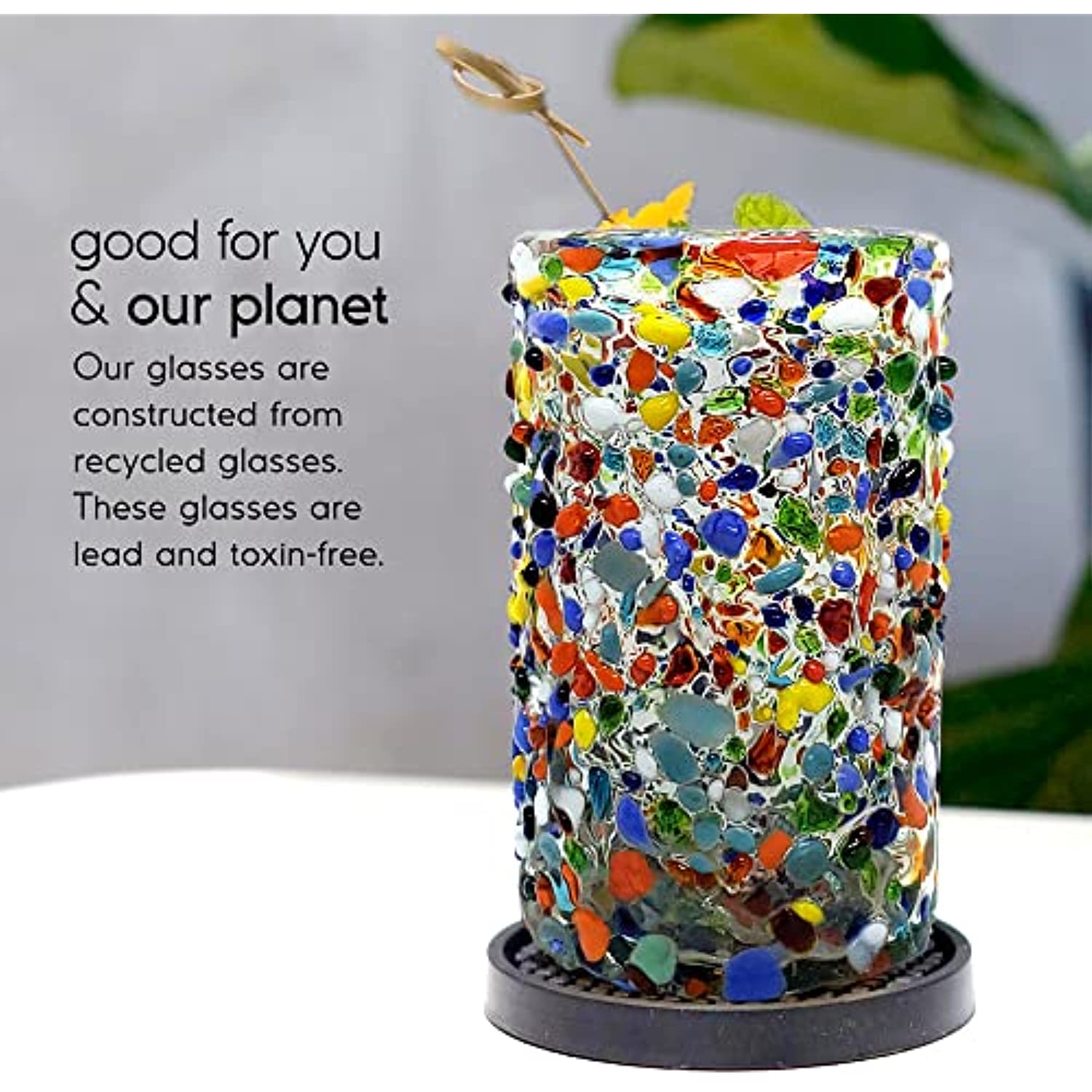 Mexican Handmade Multicolor Glassware, Recycled Glass, Lead & Toxin Free (Drinking)