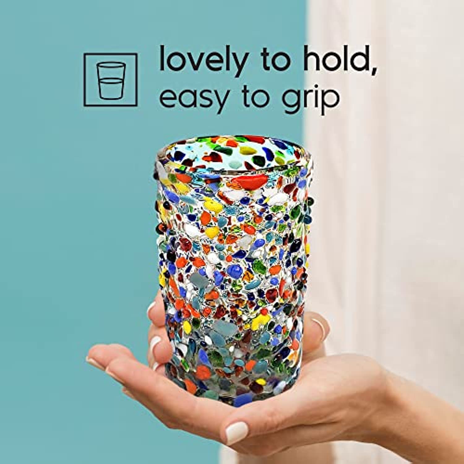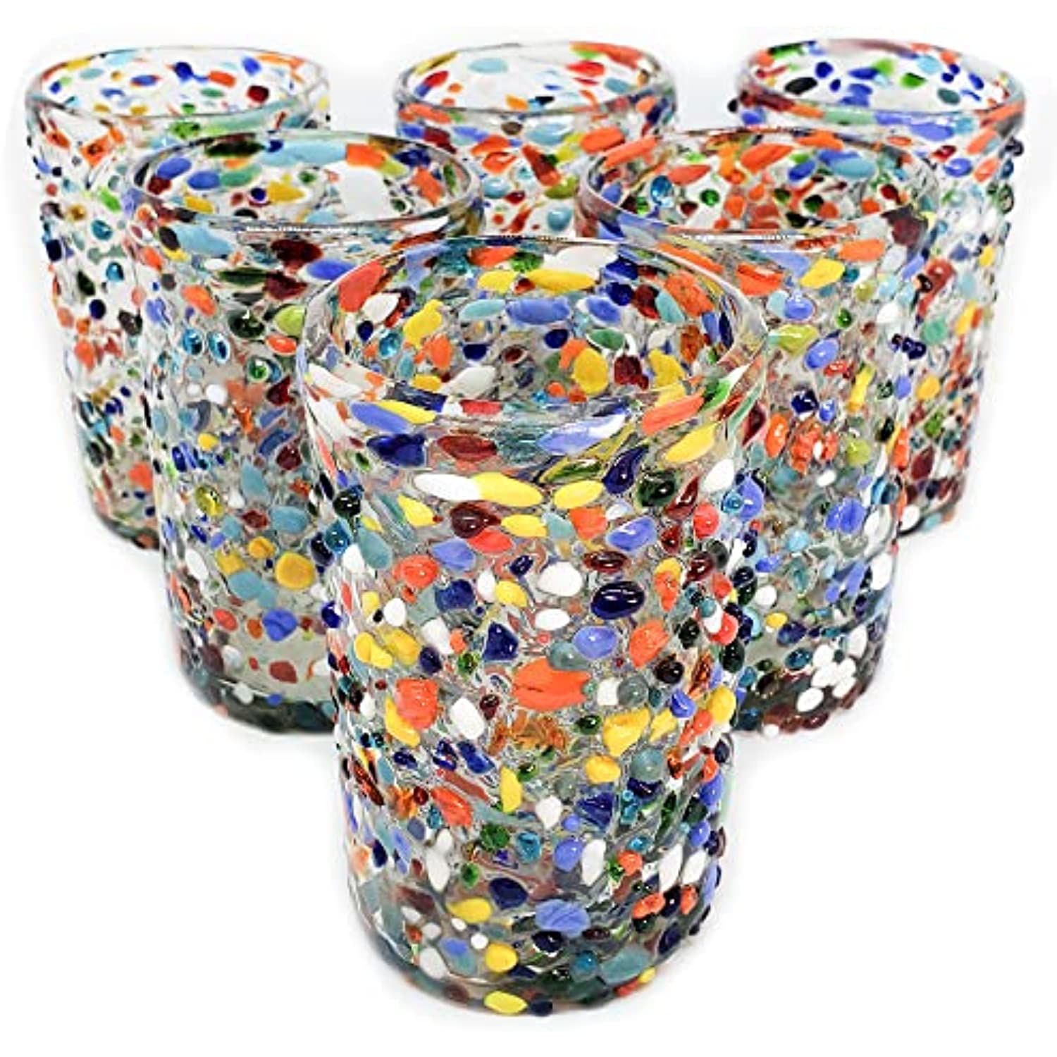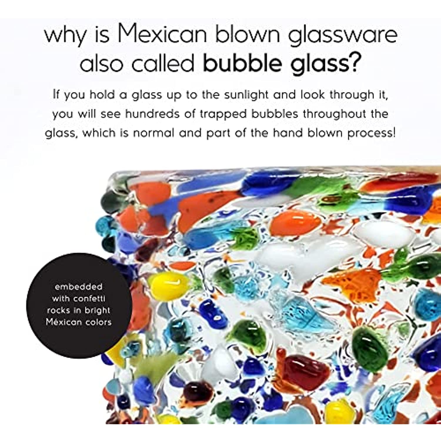 - FESTIVE & FUN! - Get ready for your next fiesta with our colorful Confetti Rocks Glassware Collection! Clear glass embedded with small rounded crystals in bright Mexican colors, provide these glasses with a nice feeling and grip. They are also enjoyable day-to-day glasses that will look great in your cupboard. Available in many sizes and styles, only from MexHandcraft.