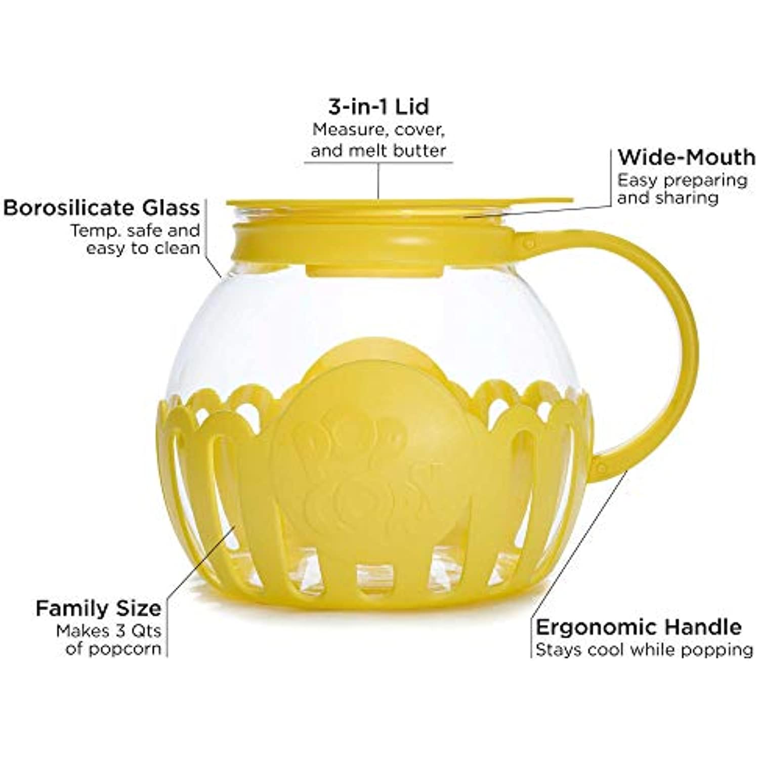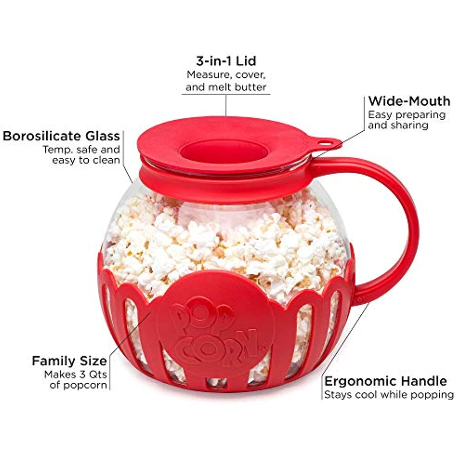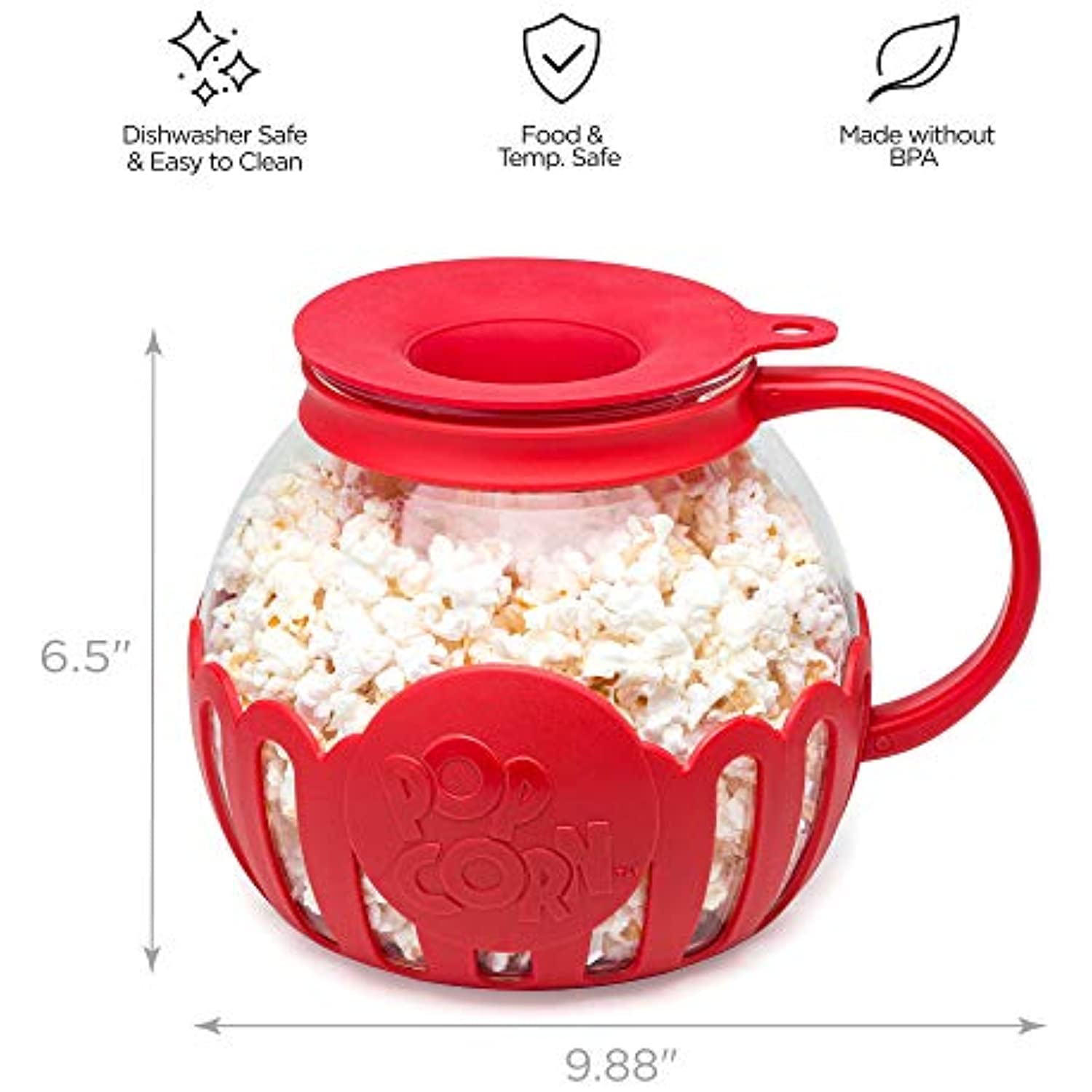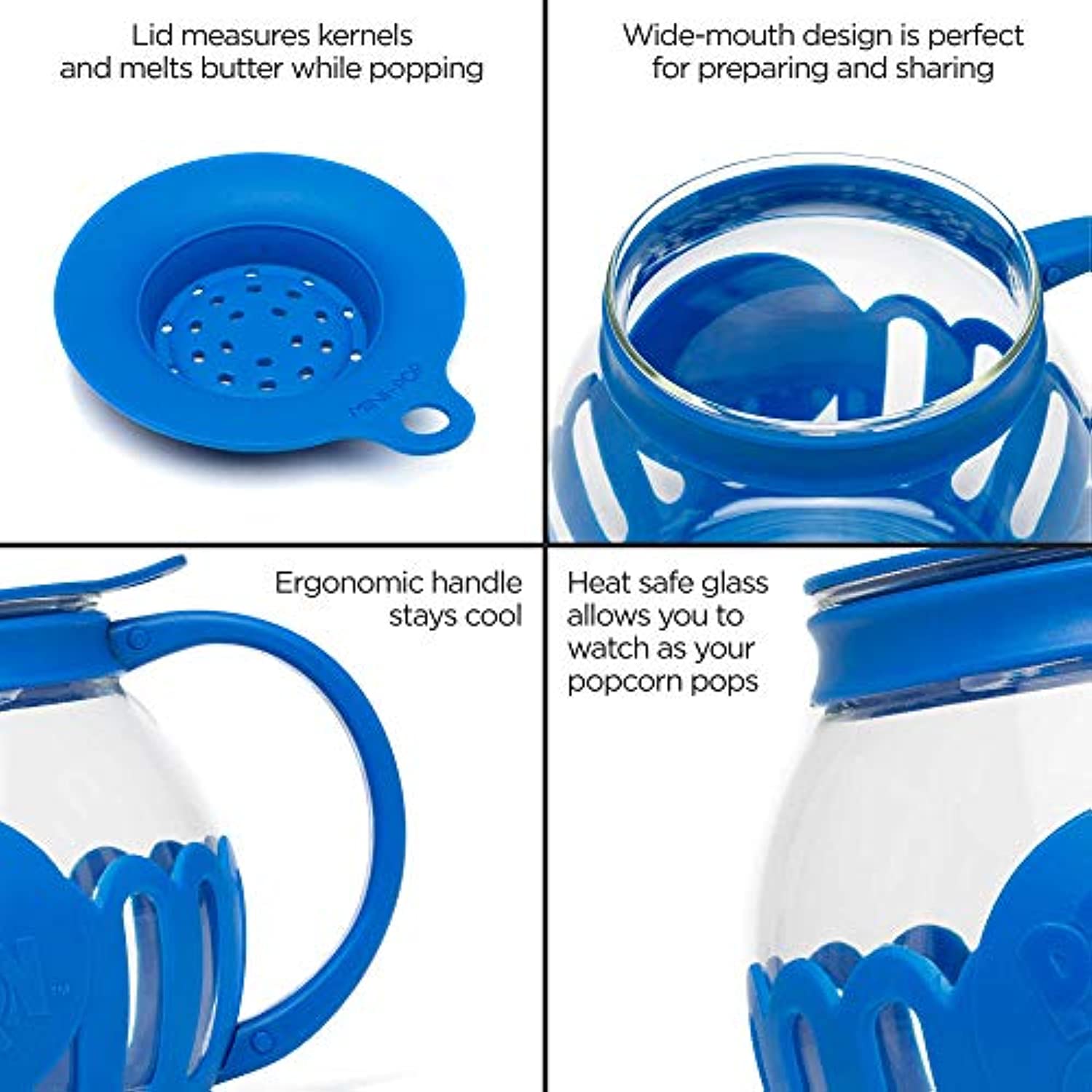 • WHY GLASS IS BETTER: Watch your popcorn popping for perfect results. Temperature safe glass resists wear-and-tear and will not absorb acids or chemicals typically produced during use. Glass is made without BPA, hypoallergenic, and thermal shock resistant. Wide-mouth design and ergonomic handle add versatility and ease-of-use.