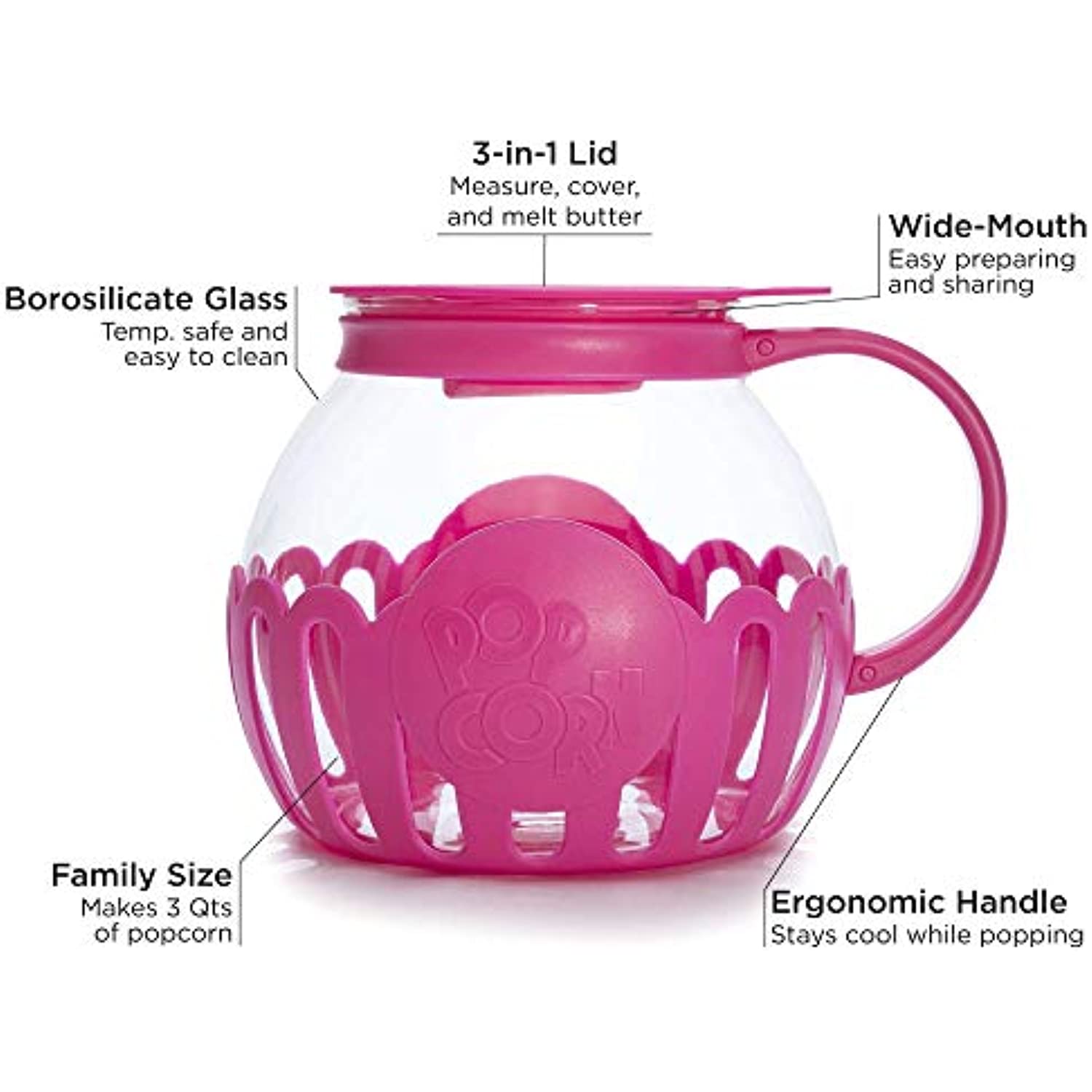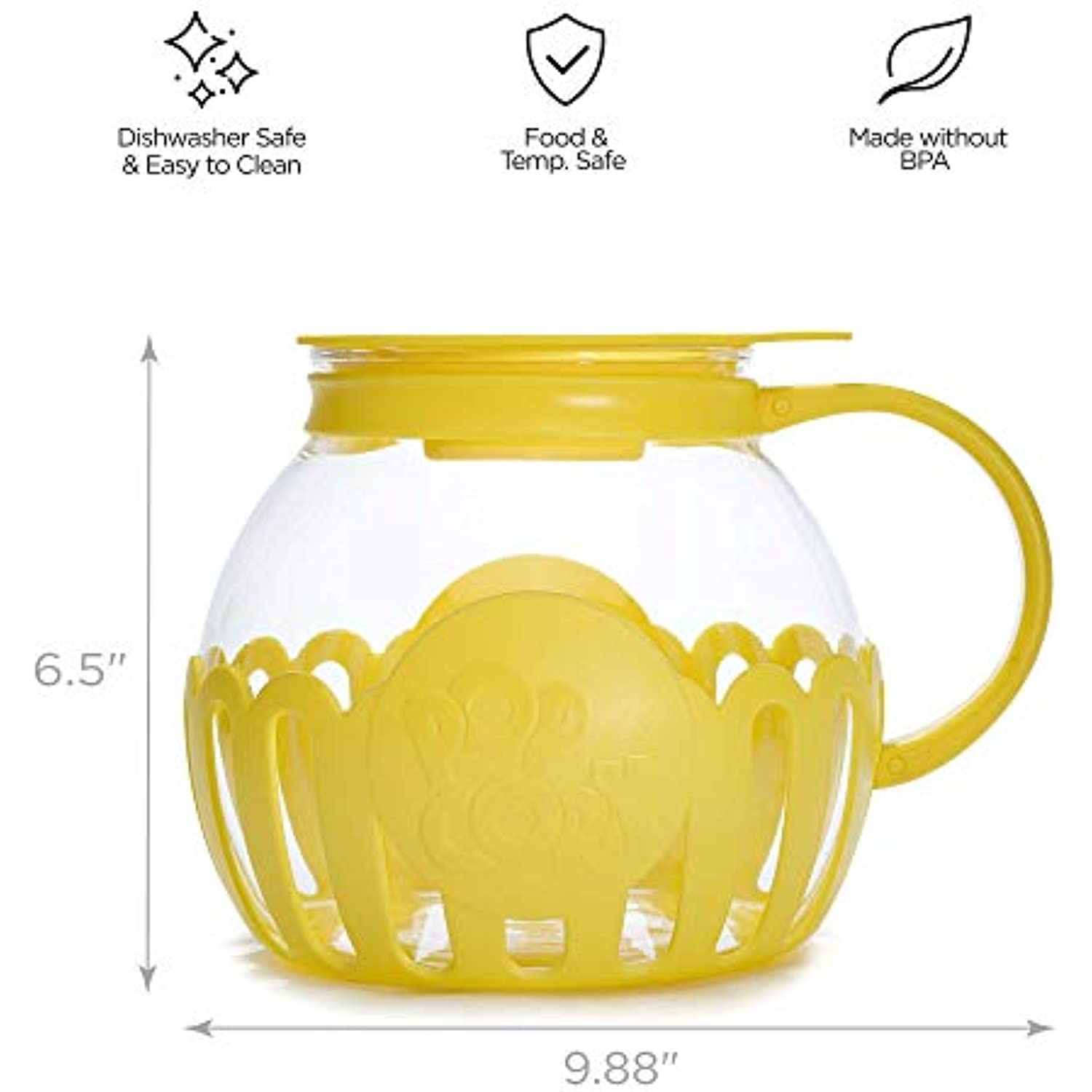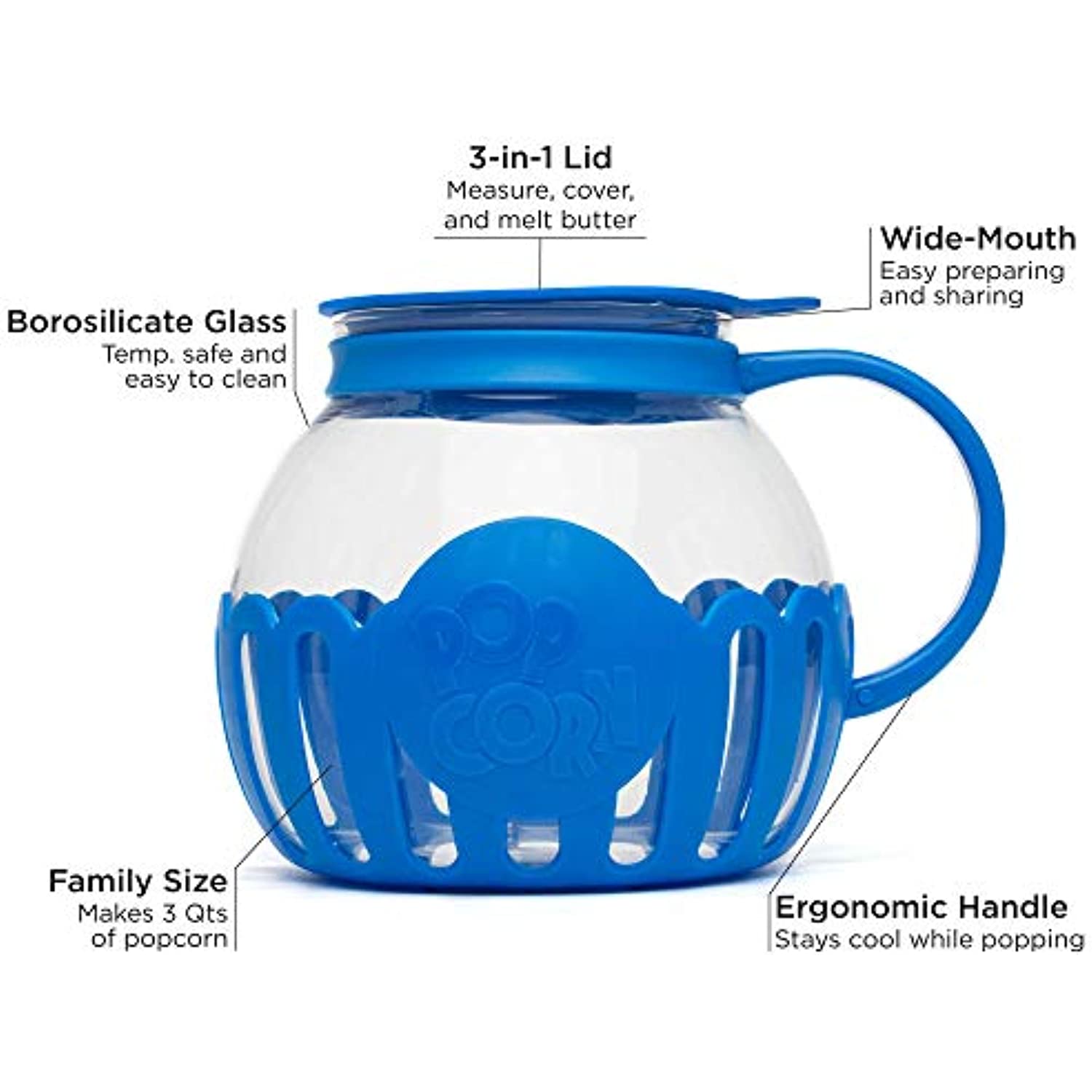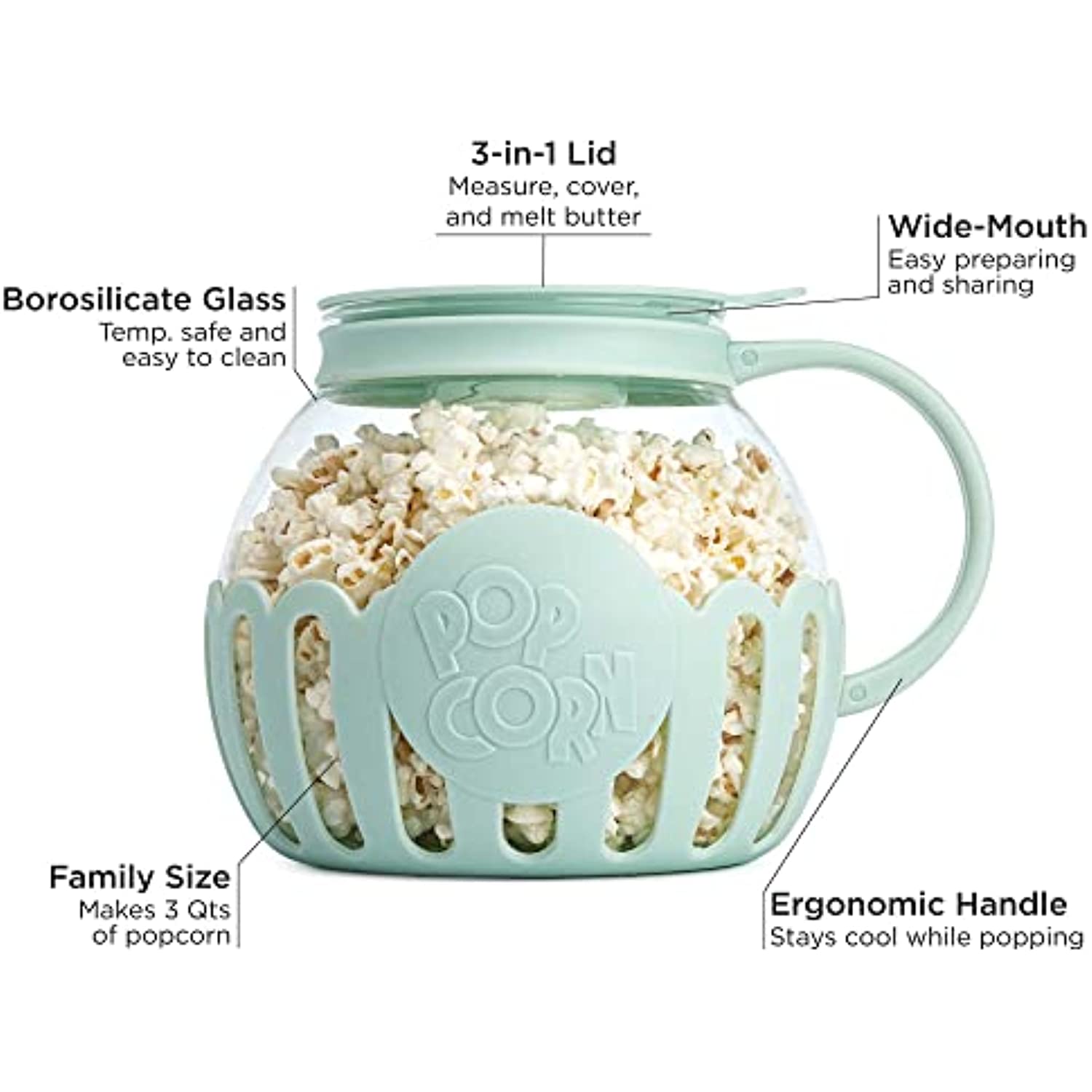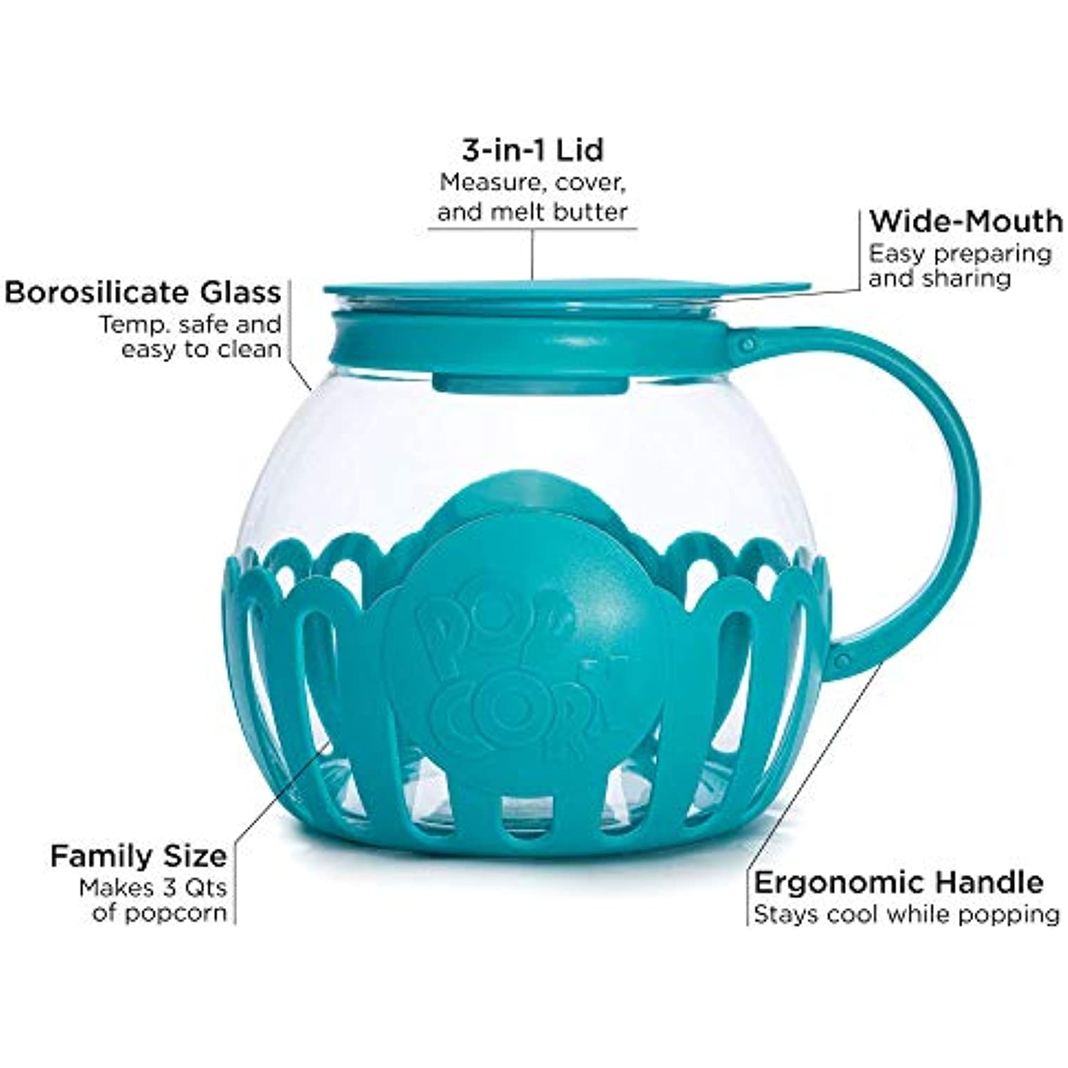 • WHY GLASS IS BETTER: Watch your popcorn popping for perfect results. Temperature safe glass resists wear-and-tear and will not absorb acids or chemicals typically produced during use. Glass is made without BPA, hypoallergenic, and thermal shock resistant. Wide-mouth design and ergonomic handle add versatility and ease-of-use.