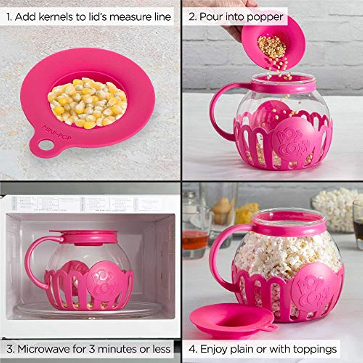 • PREPARING AND SHARING: Great for a healthy snack, movie night, the big game or recipes including popcorn. Simply use the dual-function lid to measure the desired serving size, pour into the Micro-Pop and place in microwave for 3-minutes or less. Hundreds of fun and healthy snack recipe possibilities for your popcorn enjoyment.