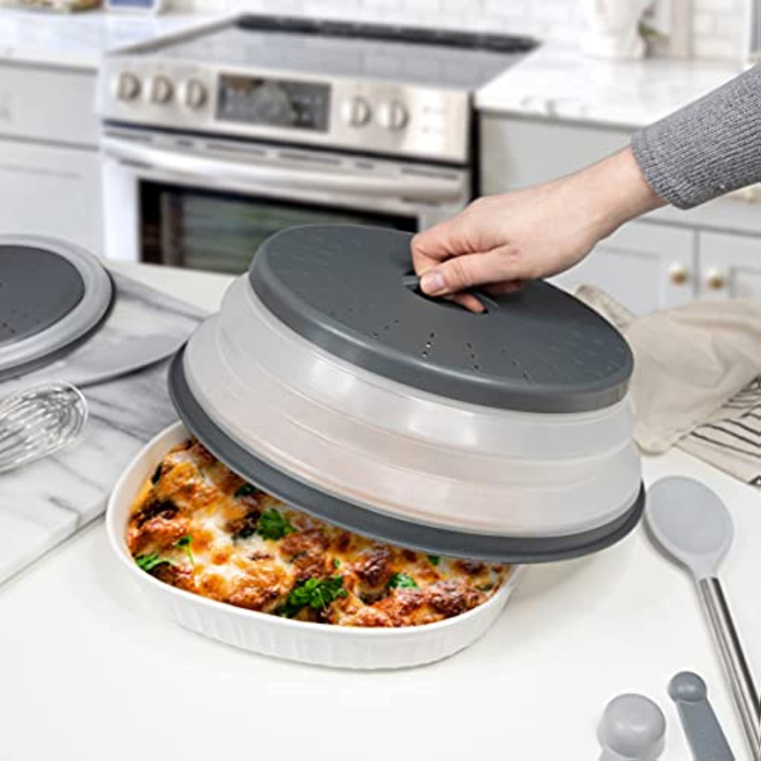 - CLEAN MICROWAVE: With this cover you can be sure your microwave will stay clean, as the lid prevents your appliance from messy food splatters or spills, making for an all-around easier meal prep experience.