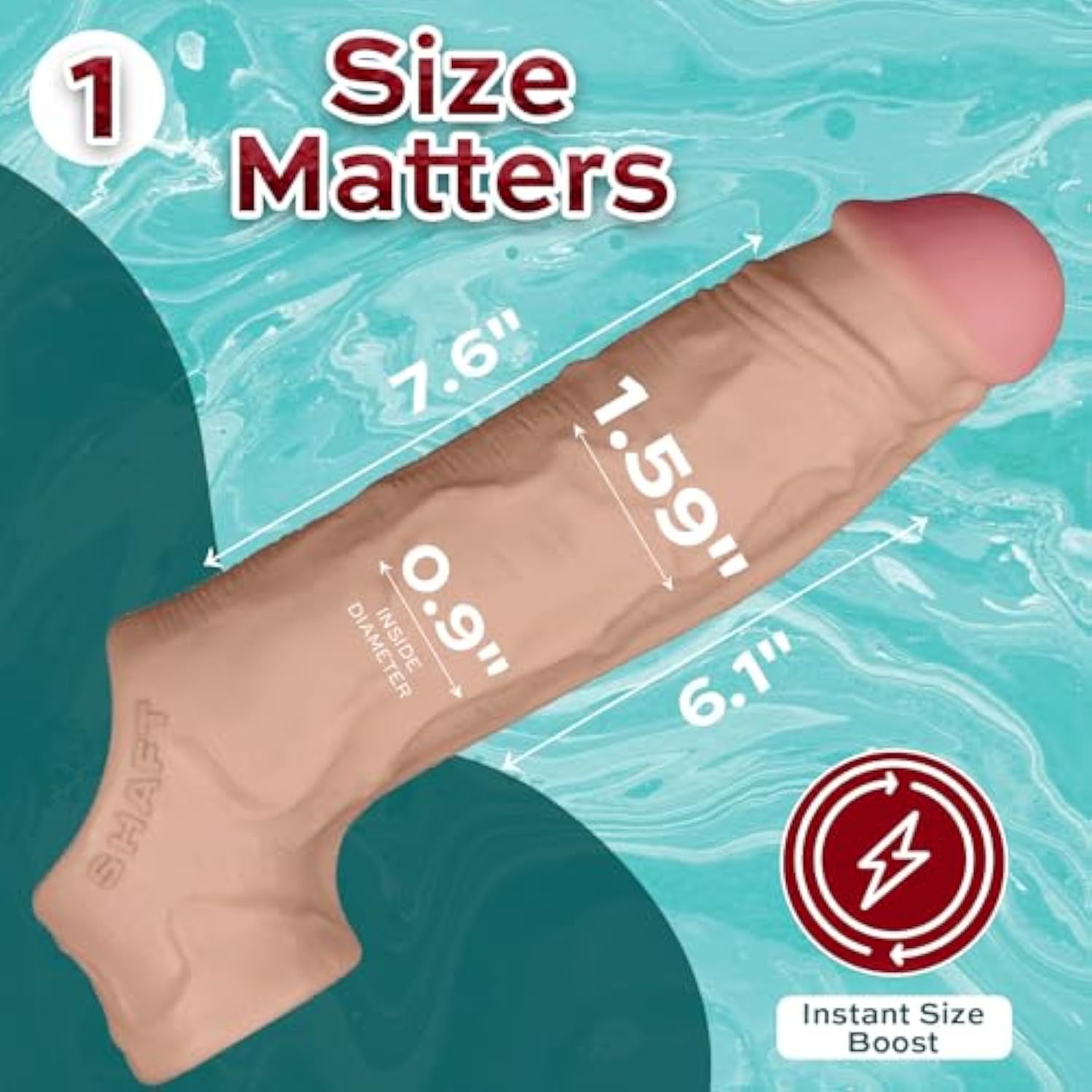 Model F Silicone Penis Sheath - Premium Penis Extension Sleeve, Sex Toys, Adult Toys, Sex Toy For Additional Length & Girth, Flexiskin Liquid Silicone, Water-Based Lubricant Compatible
