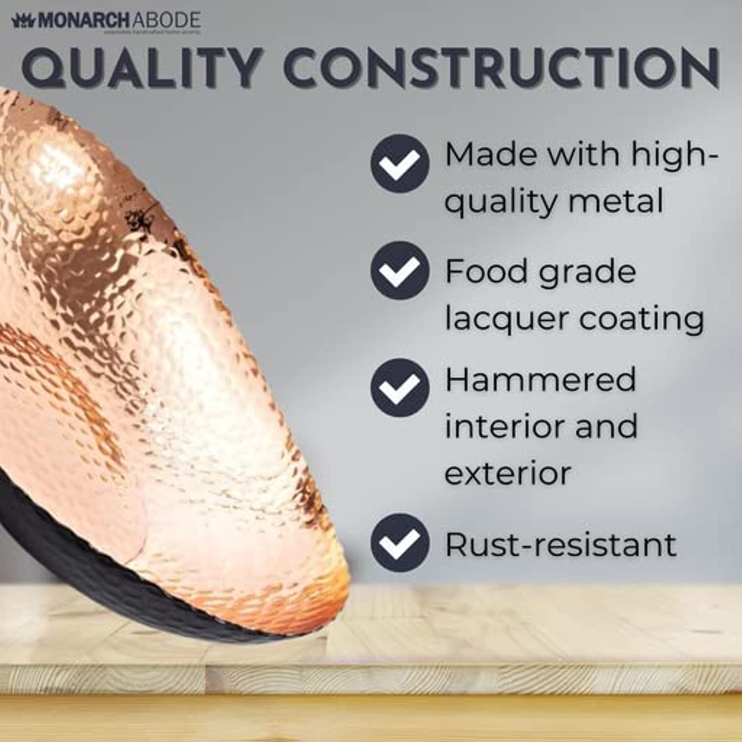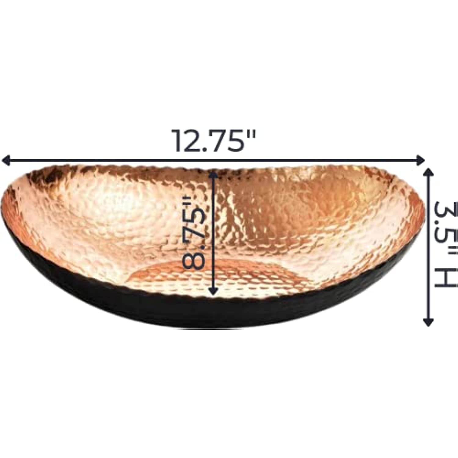 Modern Fruit Bowl, Metal Hand-Hammered Bowl Decor, Black/Copper Finish,3.5 quarts