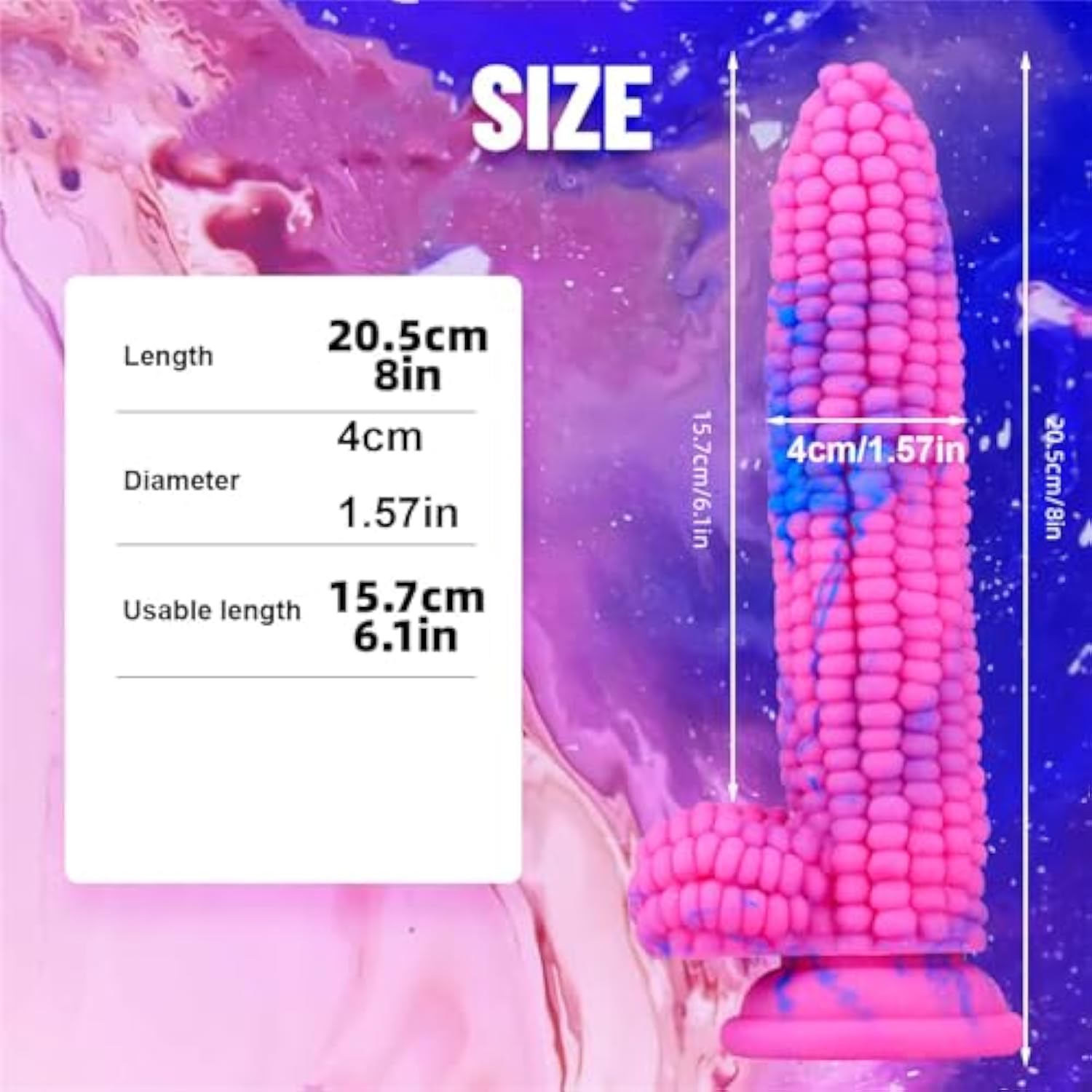 Monster Dildo Colourful Big Grain Corn Adult Sex Toy With Strong Suction Cup 8 Inch Flexible Soft Vegetable Dildos - Pink