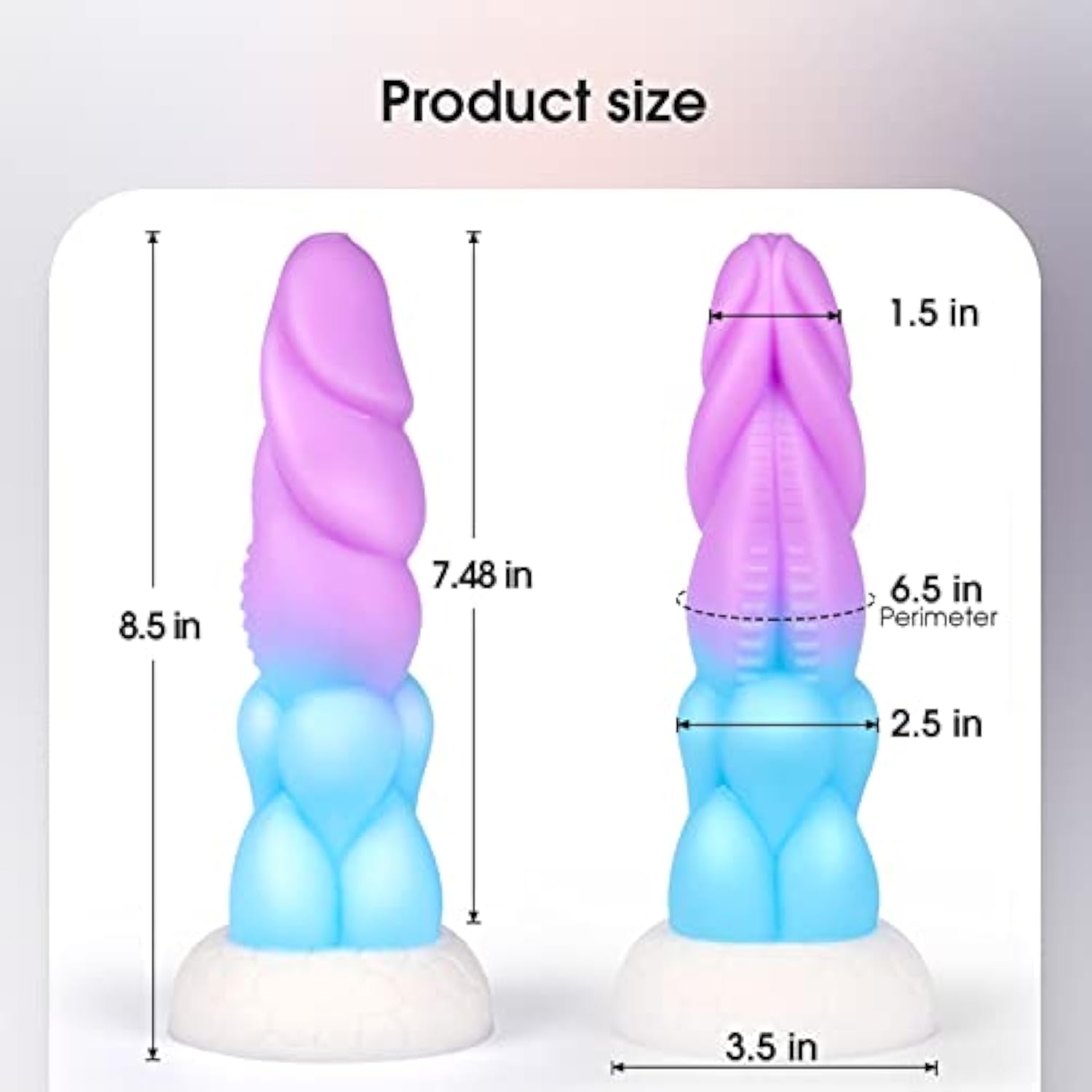 - ?Colorful Anal Dildo With Ergonomic Design?The Soft Gradient Color Adds A Touch Of Cuteness To The Monster Dildo, Providing A More Pleasurable Mood For Women. An Eye-Pleg 8.5 Inches Long, It Has Bumps Along Its Thick Shaft, Delicate Ridges, And Realisti