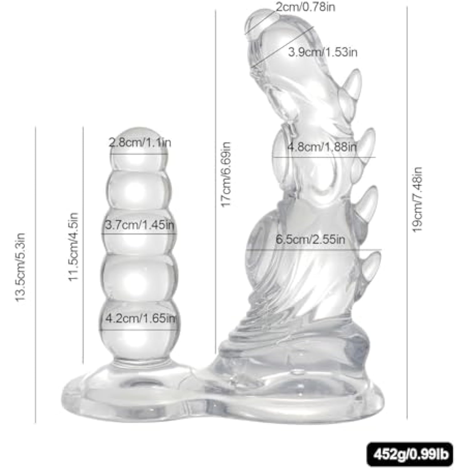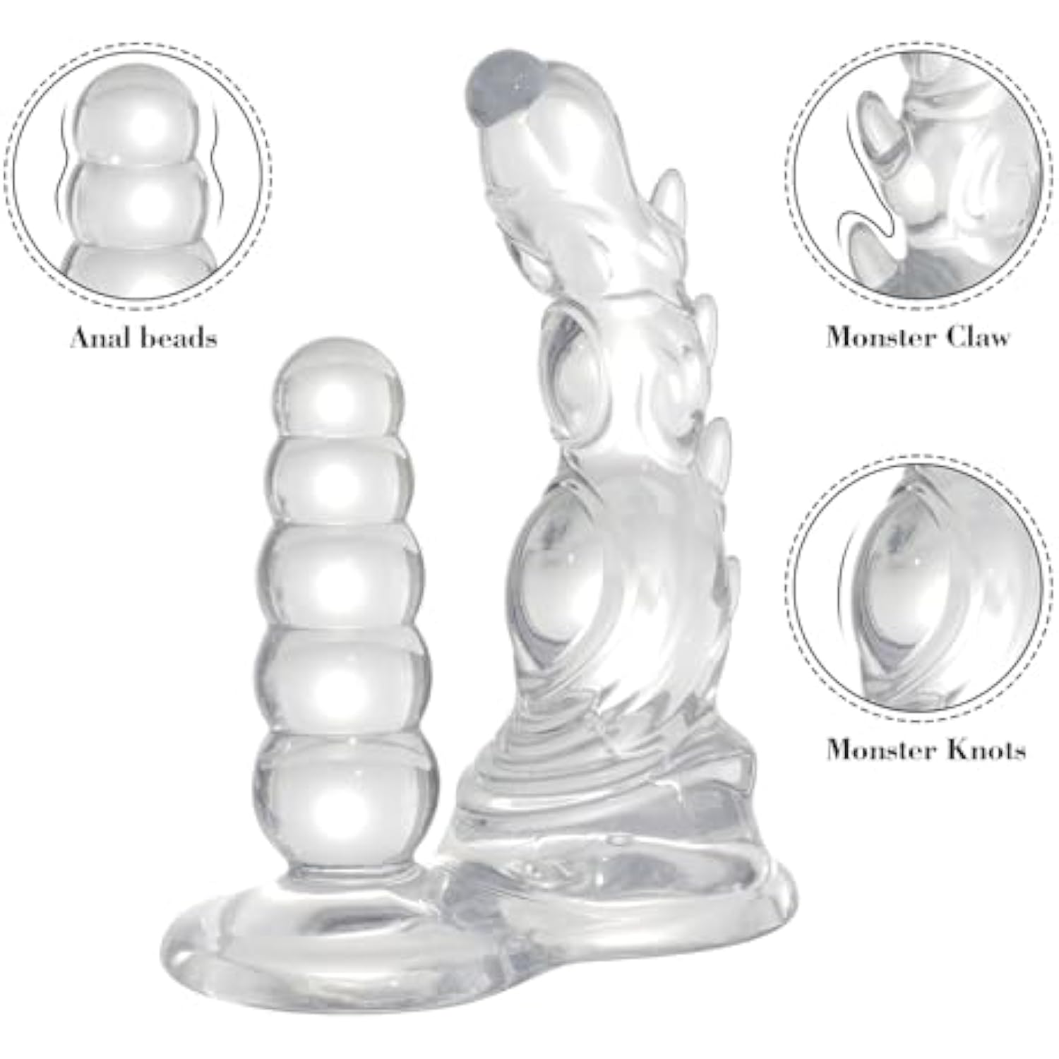 Monster Double Dildo,7.4 In Knot Dildo And 5.3 In Anal Beads,Clear Dildo With Strong Suction Cup,Adult Sex Toys For Women Men Lesbian