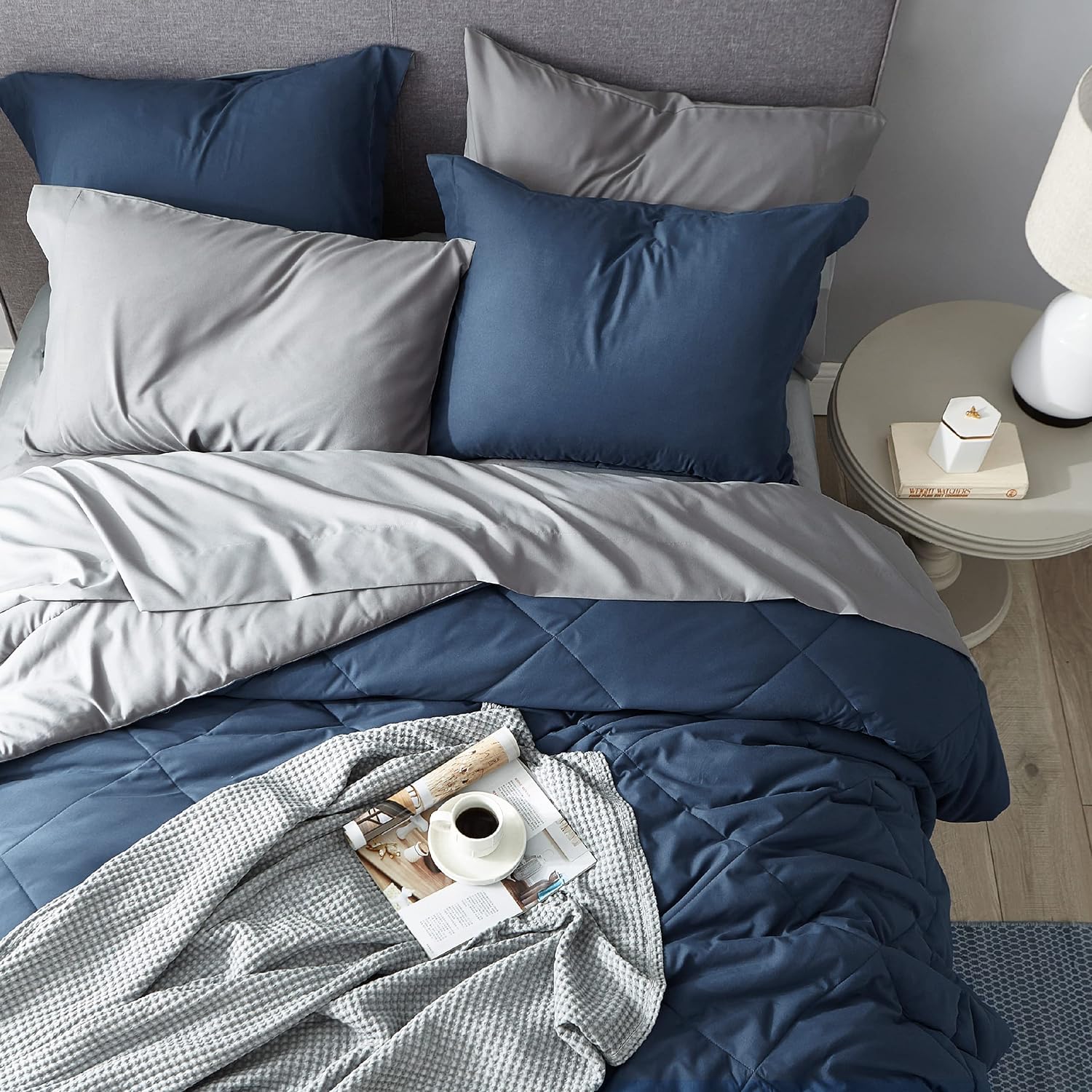 Navy Full Size Bed In A Bag - 7 Pieces Reversible Comforter Set Full Bed Set With Comforters, Sheets, Pillowcases & Shams, Full Bedding Sets