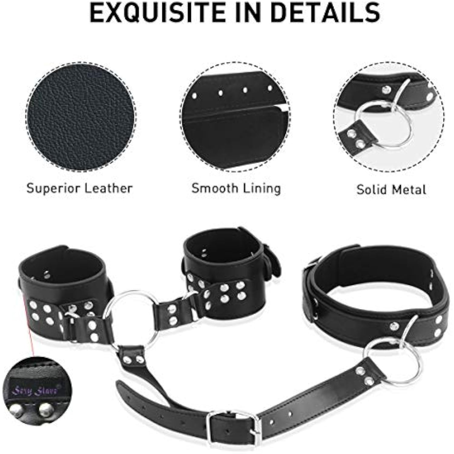 Neck To Wrist Restraints Kit, Adult Sex Toys Frisky Beginner Behind Back Handcuffs Collar, Adjustable Bondage Set, Couple Sm Sex Game Tool(Black-1)