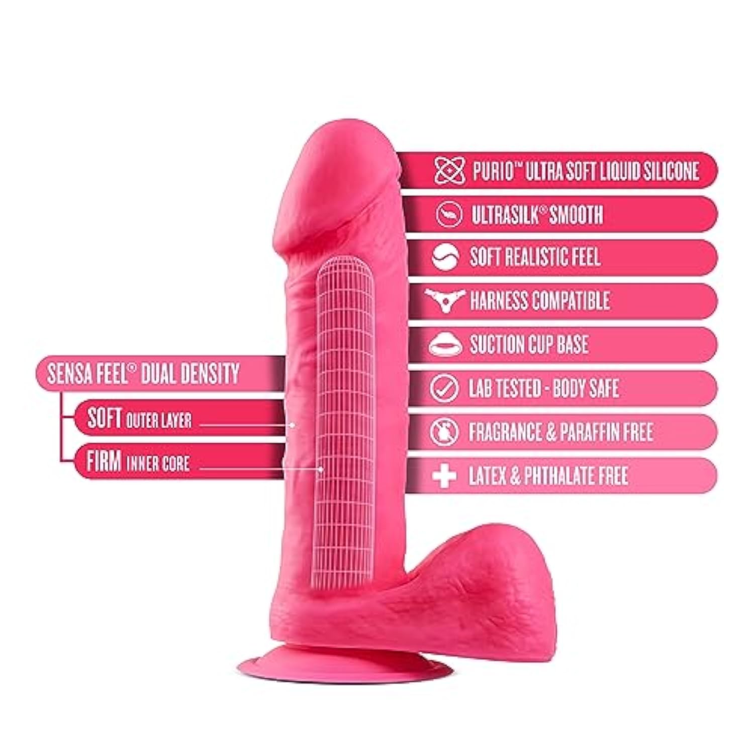 Neo Elite 8 Inch Realistic Silicone Dildo – Sensa Feel Dual Density, Suction Cup & Harness For Hands-Free Play, Lifelike Penis For G-Spot & Anal Stimulation - Adult Toys – Neon Pink