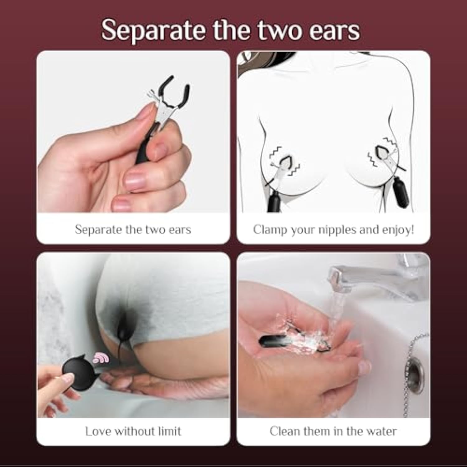 | Multiple Mode Vibration: The Nipple Clamps Have 10 Different Powerful Vibration Modes That Can Be Applied To Everyone For A Different Experience. | | 3-In-1 Vibrators Combo: The Combination Of A Bullet Vibrator And Nipple Clamp Allows For Nipple Stimulation While The Mini Bullet Vibrator Provides Massage Stimulation For The Rest Of The Body,Clitoris Stimulator-Anal Sex Toys | | Ipx5 Waterproof: This Nipple Vibrator Is Ipx5 Waterproof, It Can Be Cleaned With Water After Use, But Don'T Put It In Water For A Long Time. | | Adjustable Nipple Clamps: Our Nipple Clamps Are Different From Others, Nipple Clamps Can Be Adjusted According To The Size Of Each Person'S Nipples Nipple Clamp Looseness, From The Beginning Of The Design, Ergonomics For Everyone To Bring A Good Experience. | | Remote Control: Vibrating Nipple Clamps Can Be Controlled By Remote Control, The Remote Control Cable Is 48In Long, This Nipple Clamp Remote Control Is Different From Others, It Is Rechargeable, No Need To Replace The Batteries, The Factory Has Been Charged, You Can Use It When You Receive It. | |