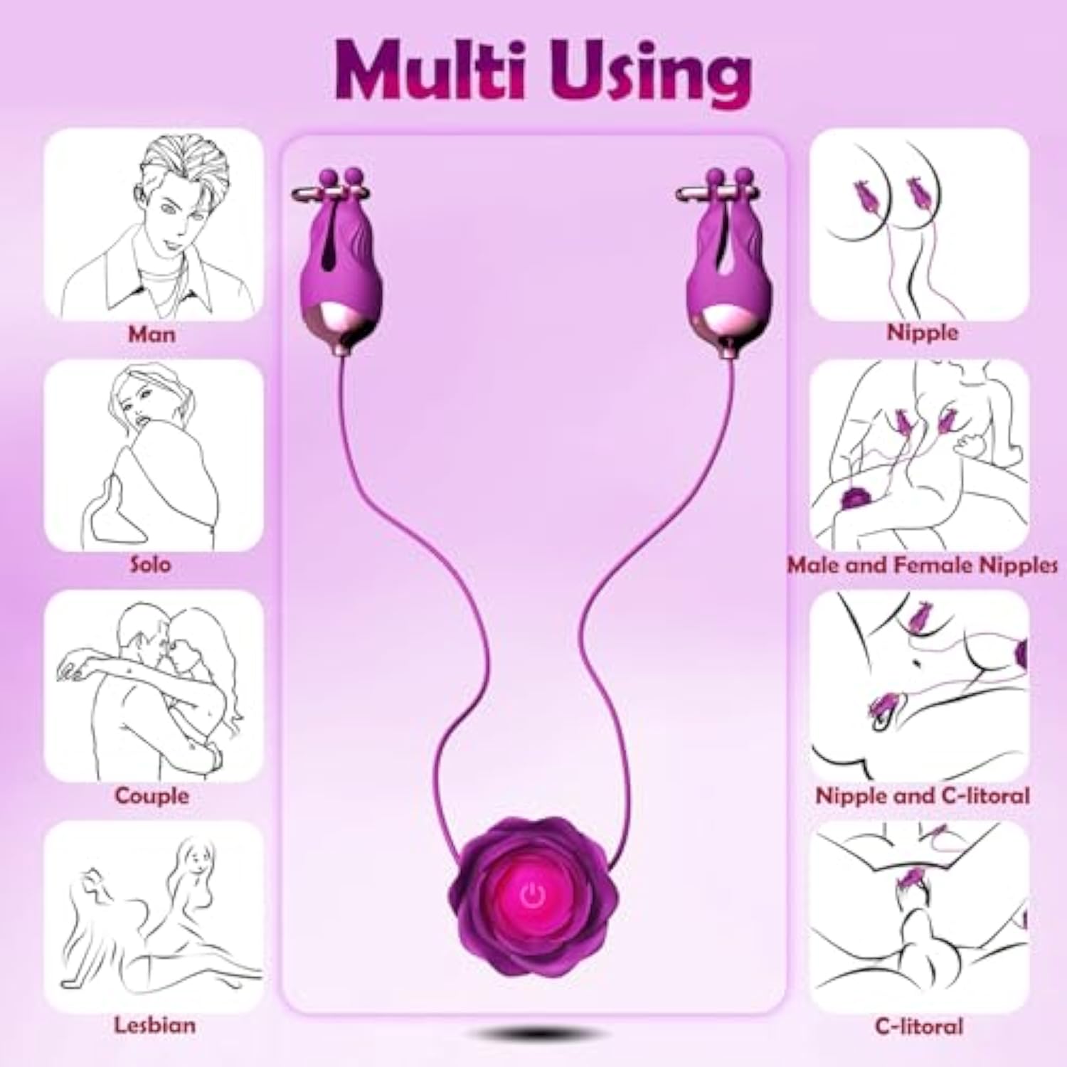 Nipple Toys Rose Sex Toy, Nipple Vibrator With 10 Vibration Modes Adjustable Rechargeable Vibrating Nipple Clamps Adult Toys For Couples Or Women Bdsm Sex Pleasure