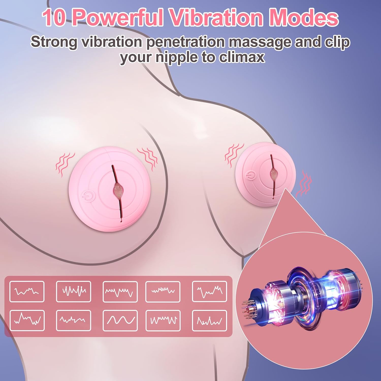 10 Vibration Modes Nipple Vibrator: This adult toy features 10 stimulating patterns for intense pleasure. Perfect for women and couples, this vibrating nipple clamp offers a mix of BDSM and sexual pleasure, enhancing intimate experiences.