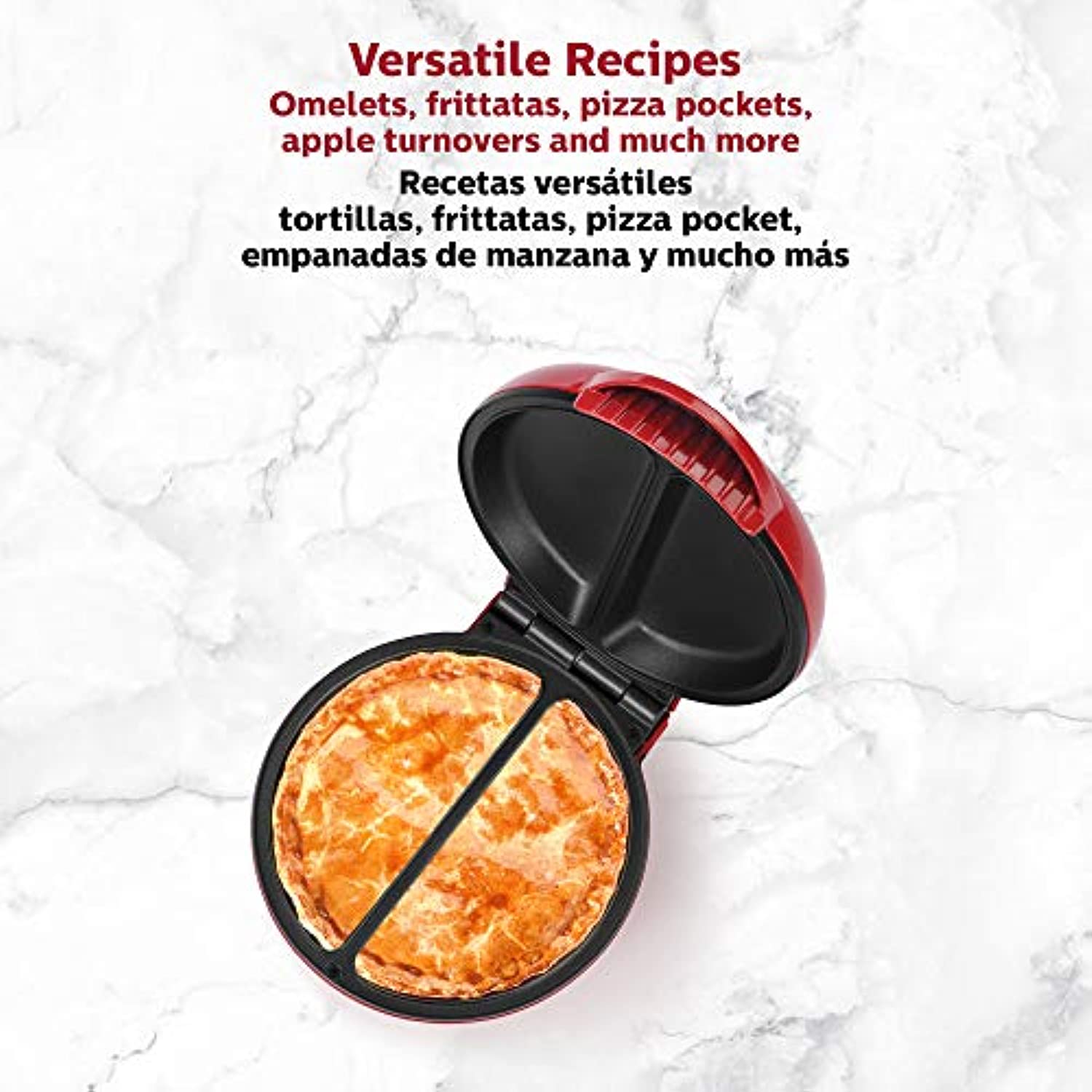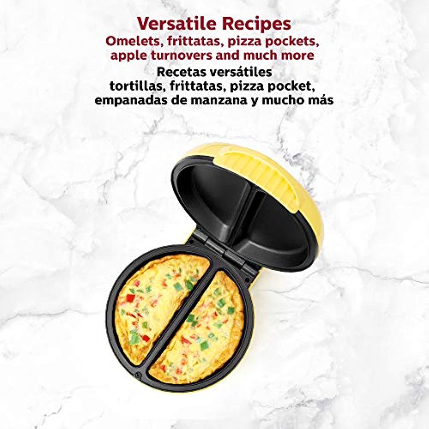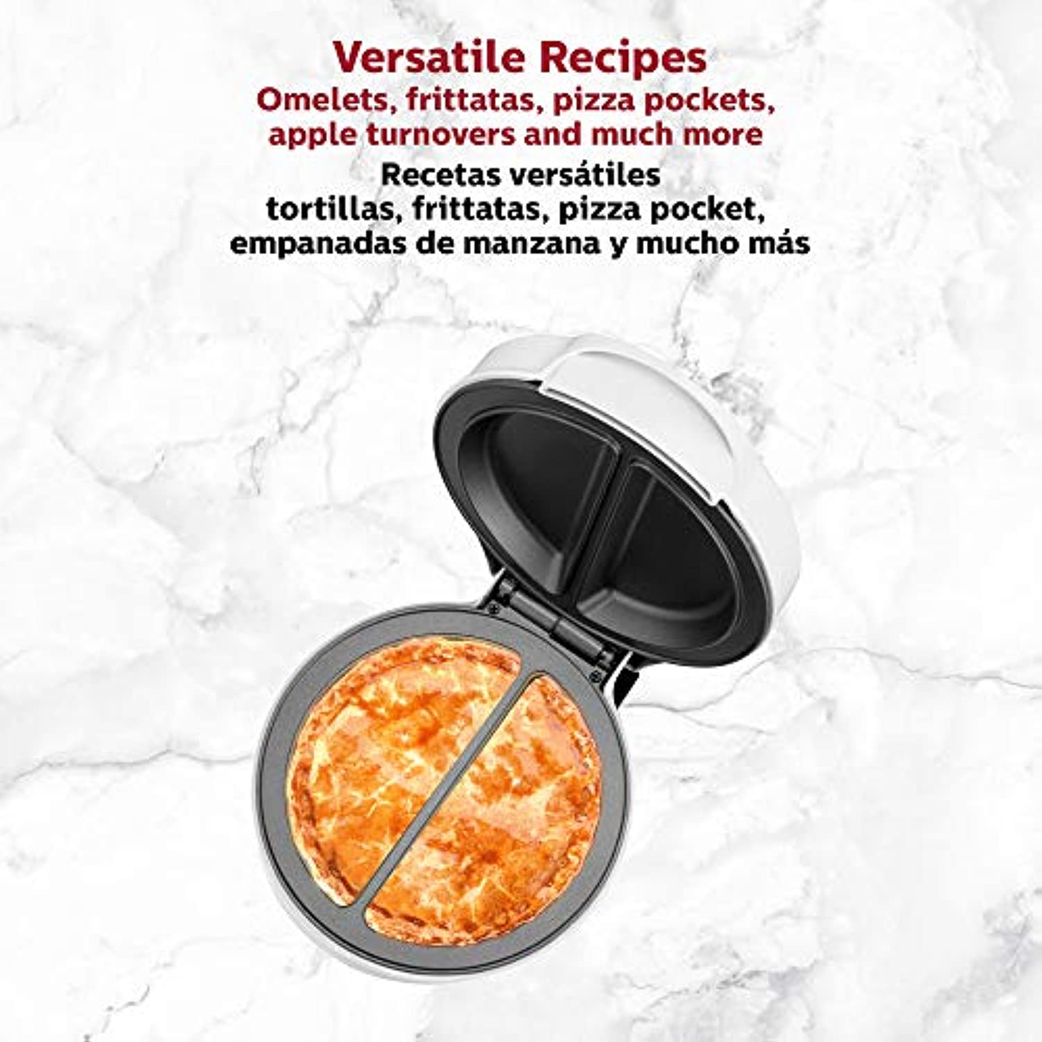 • MANY DELICIOUS CHOICES: Makes two fluffy omelets in just minutes. You can also make frittatas, pizza pockets, apple turnovers and so much more! Make two customized individual portions at a time to satisfy everyone’s requests.