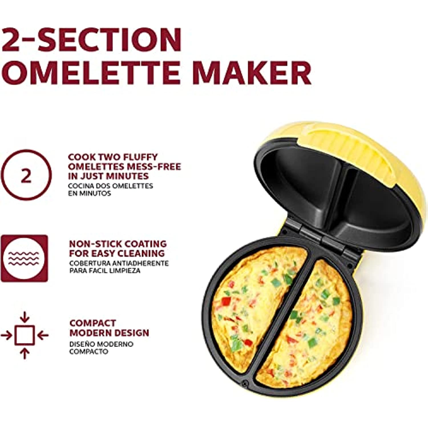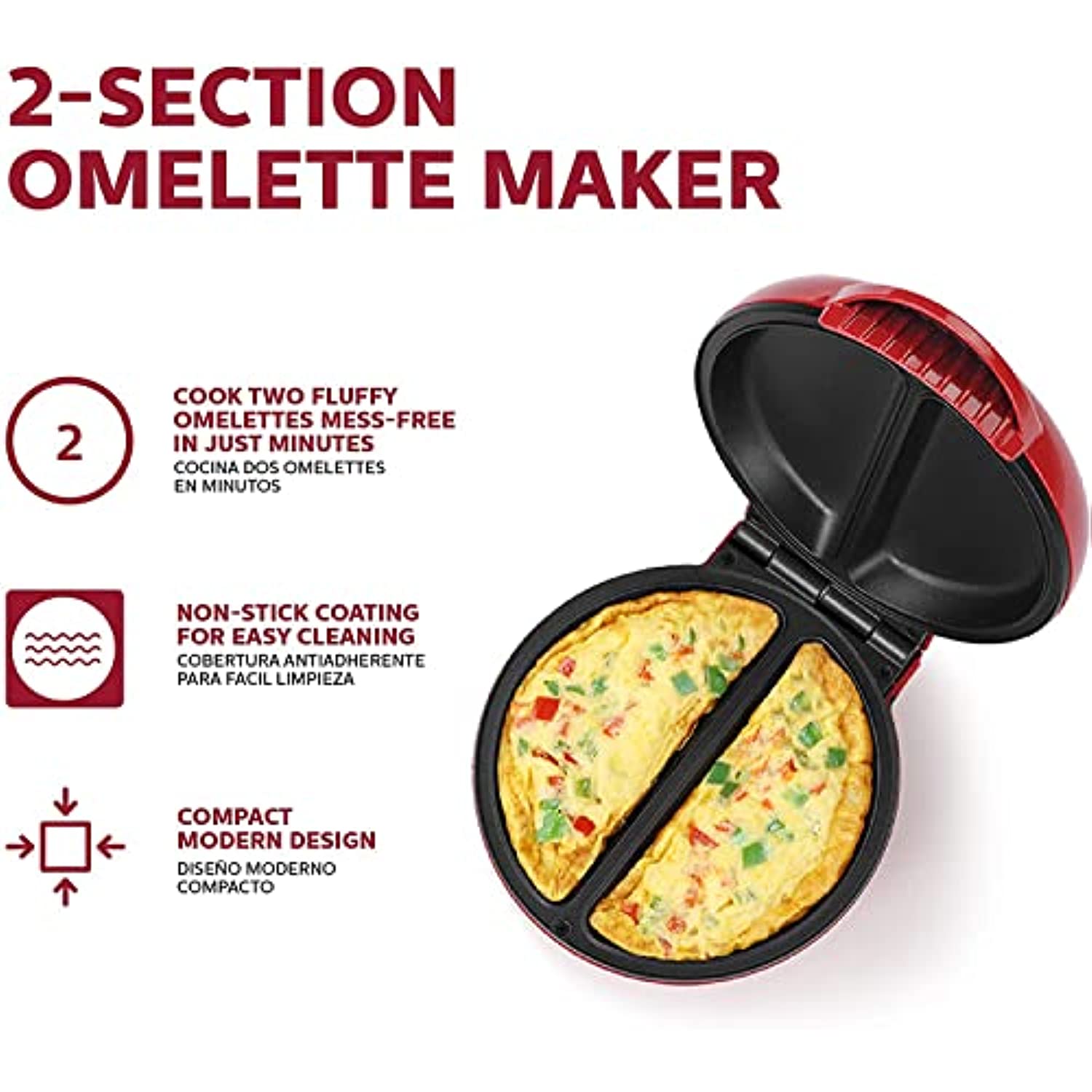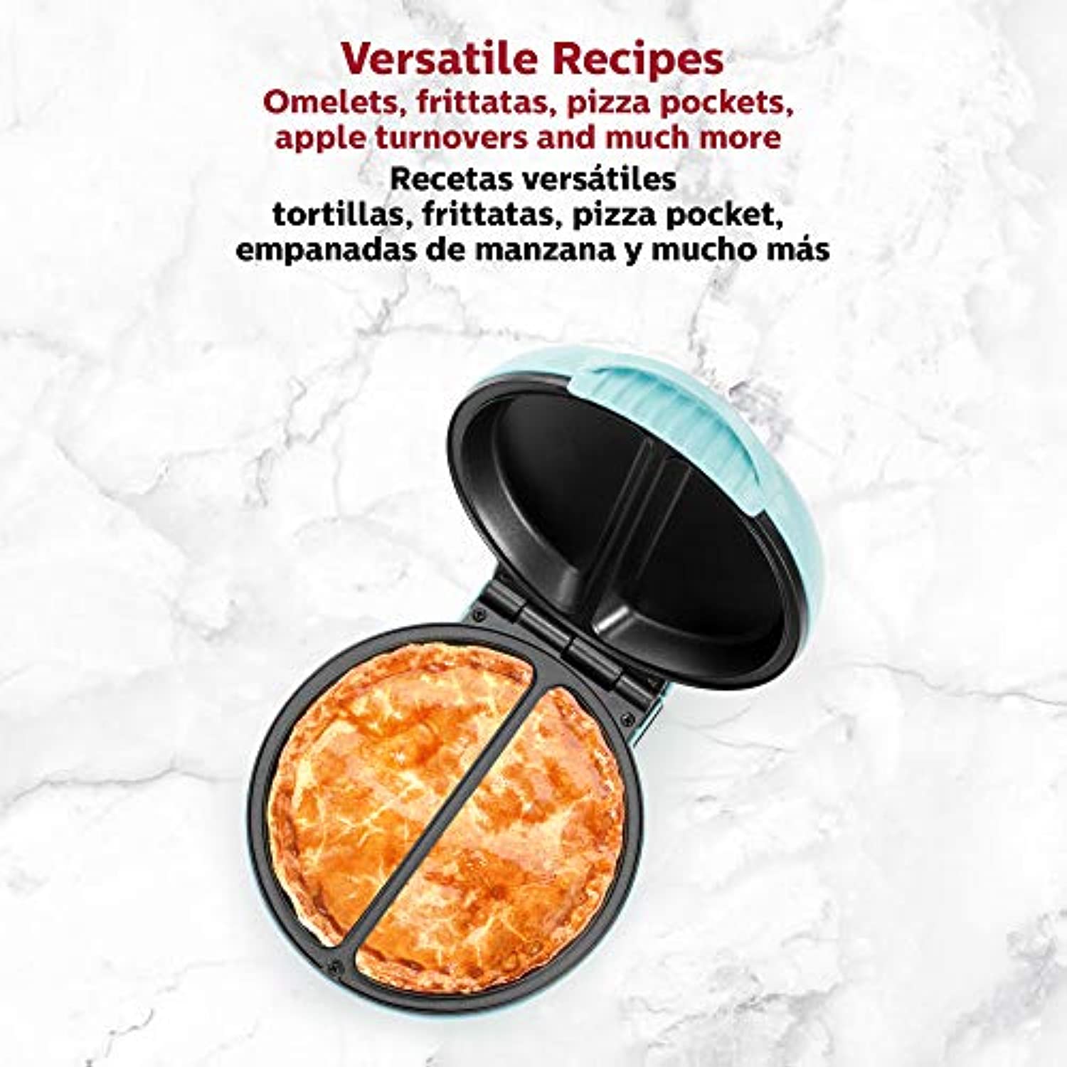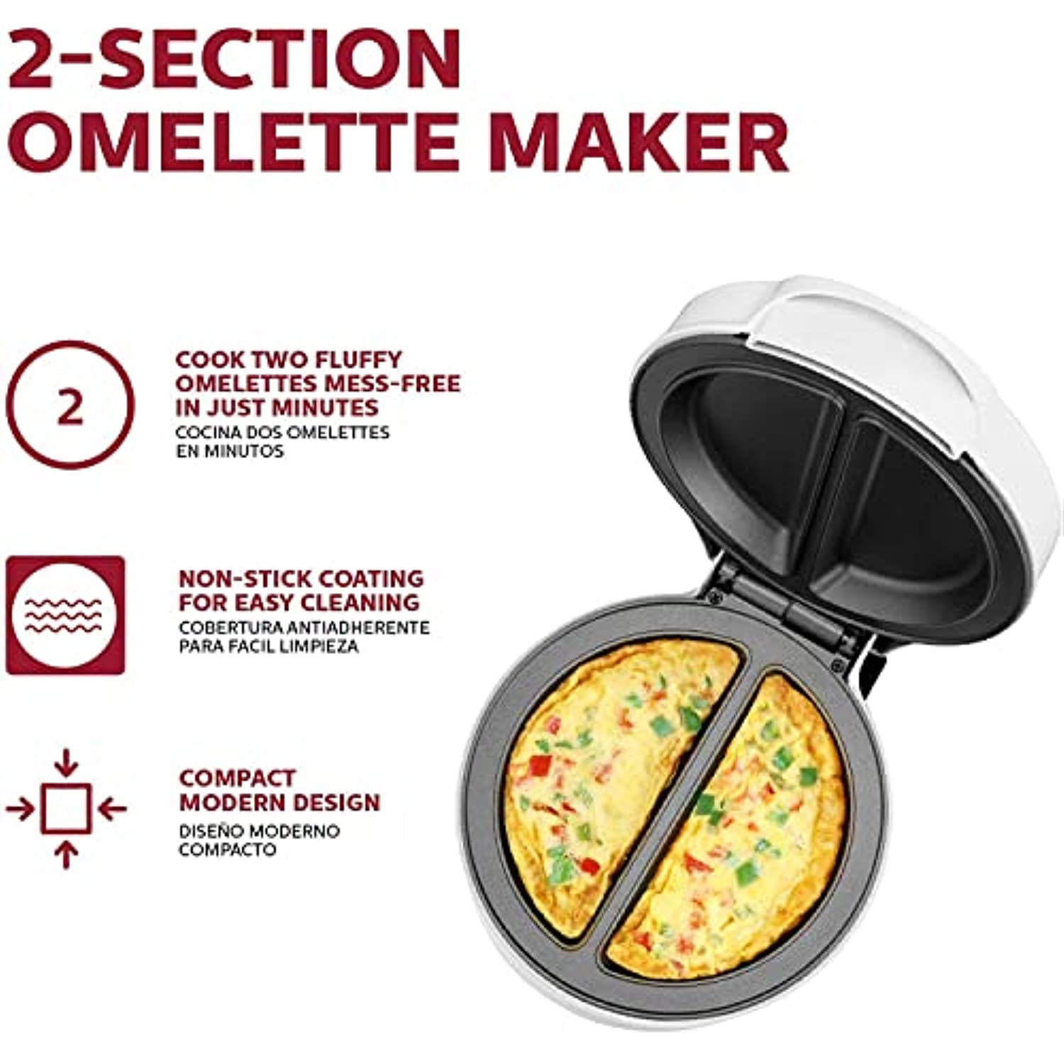• MANY DELICIOUS CHOICES: Makes two fluffy omelets in just minutes. You can also make frittatas, pizza pockets, apple turnovers and so much more! Make two customized individual portions at a time to satisfy everyone’s requests.