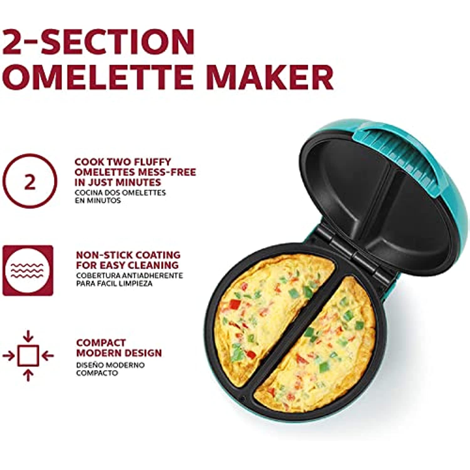 Non-Stick Omelet & Frittata Maker, Teal/Stainless Steel - Makes 2 Individual Portions Quick & Easy