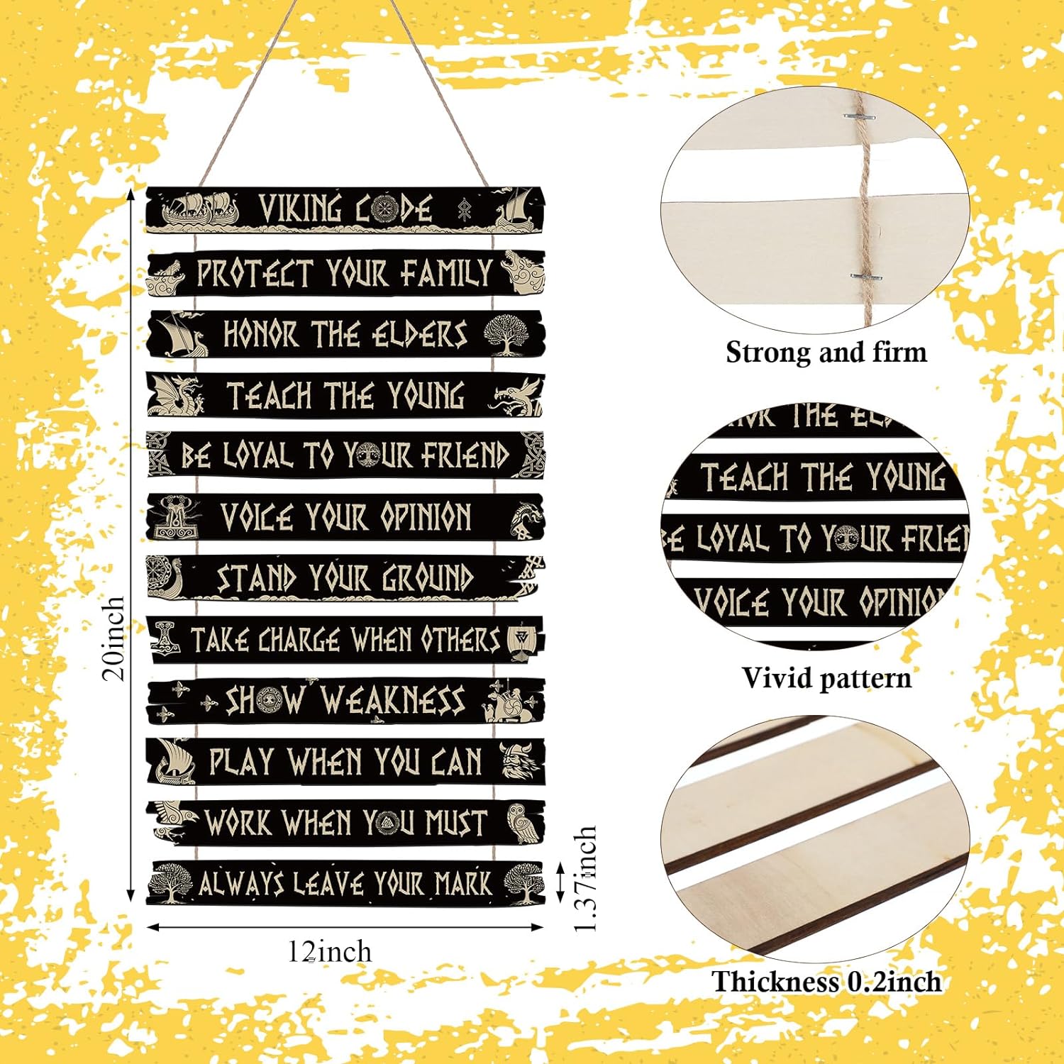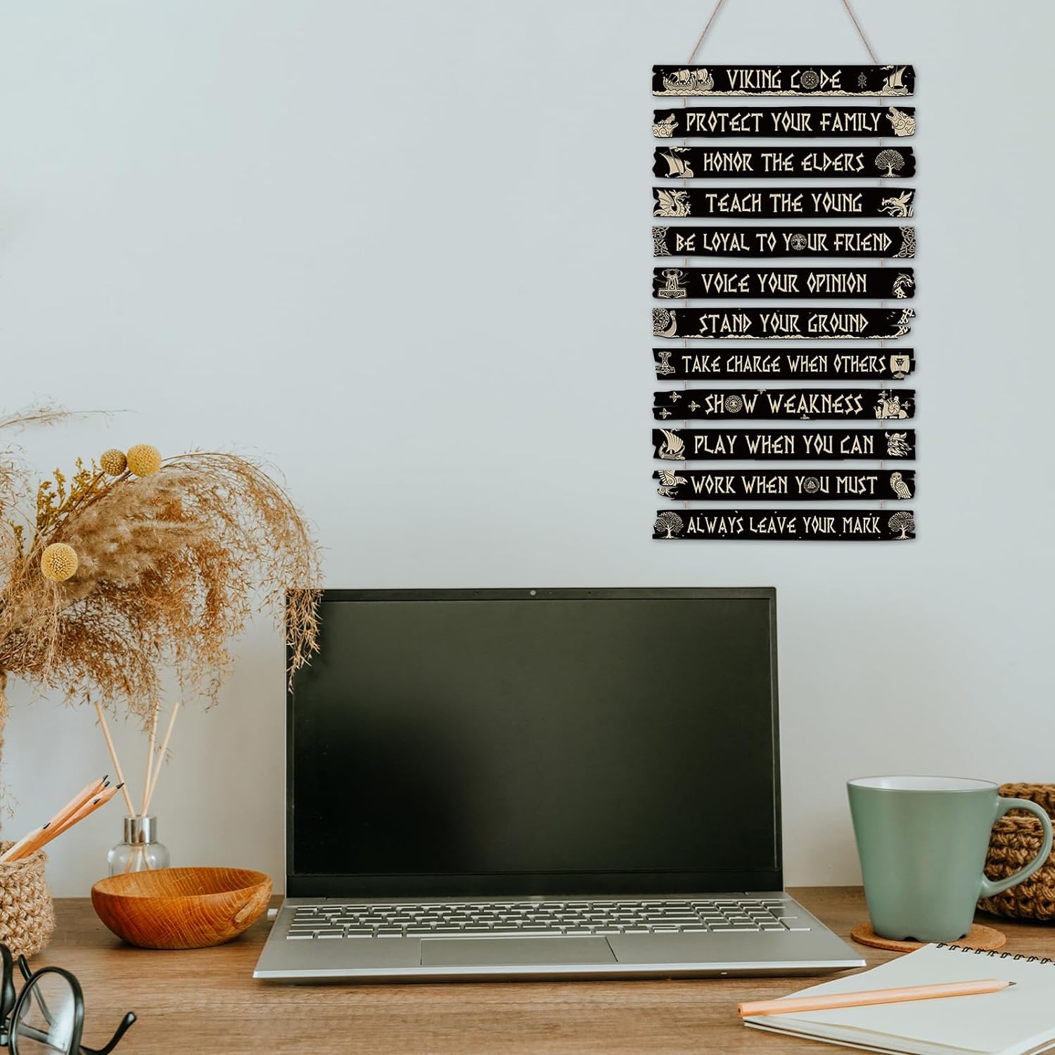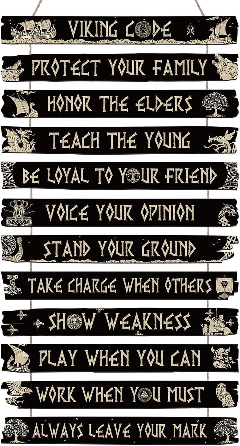 - Inspirational Wooden Sign: Our inspirational wall decor consists of 12 pieces Viking style wooden board, each wooden board has inspirational words and Viking sign on it, which can easily meet your Viking style decoration needs and bring you positive strength in your life