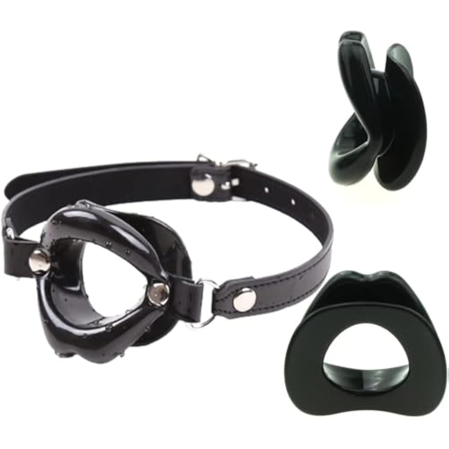 Open Mouth Gag,Female Sex Toy Mouth Gag Leather Restraints Ball Mouth Plug Silicone Bondage Ball Gag Lips Sm Toys Adjustable Strap Adult Toys Opening Gag Sexy Gag For Men Women(Black)