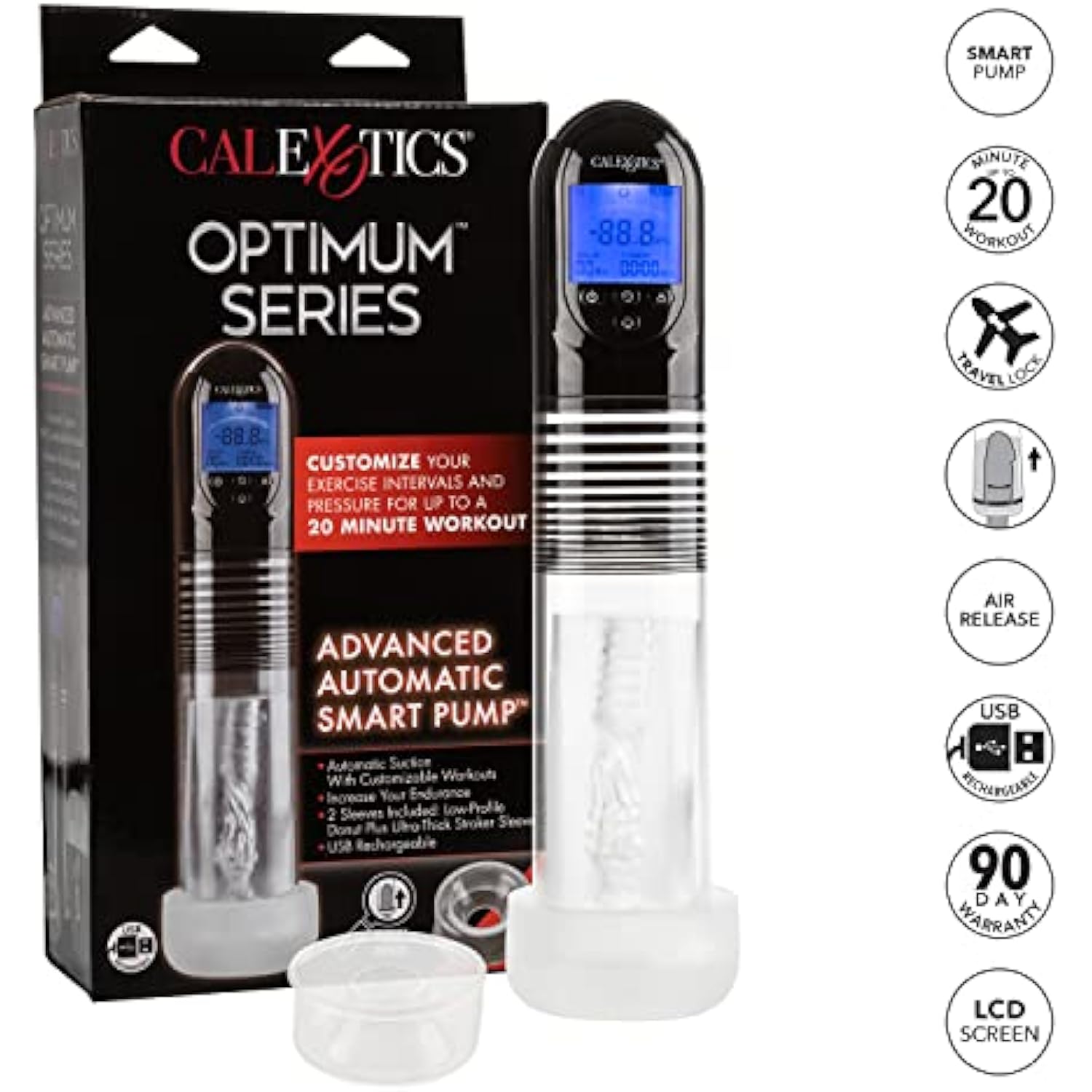 Optimum Series Advanced Automatic Smart Penis Pump, Rechargeable And Customizable Mode With Lcd Screen, Adult Sex Toy Se-1035-60-3