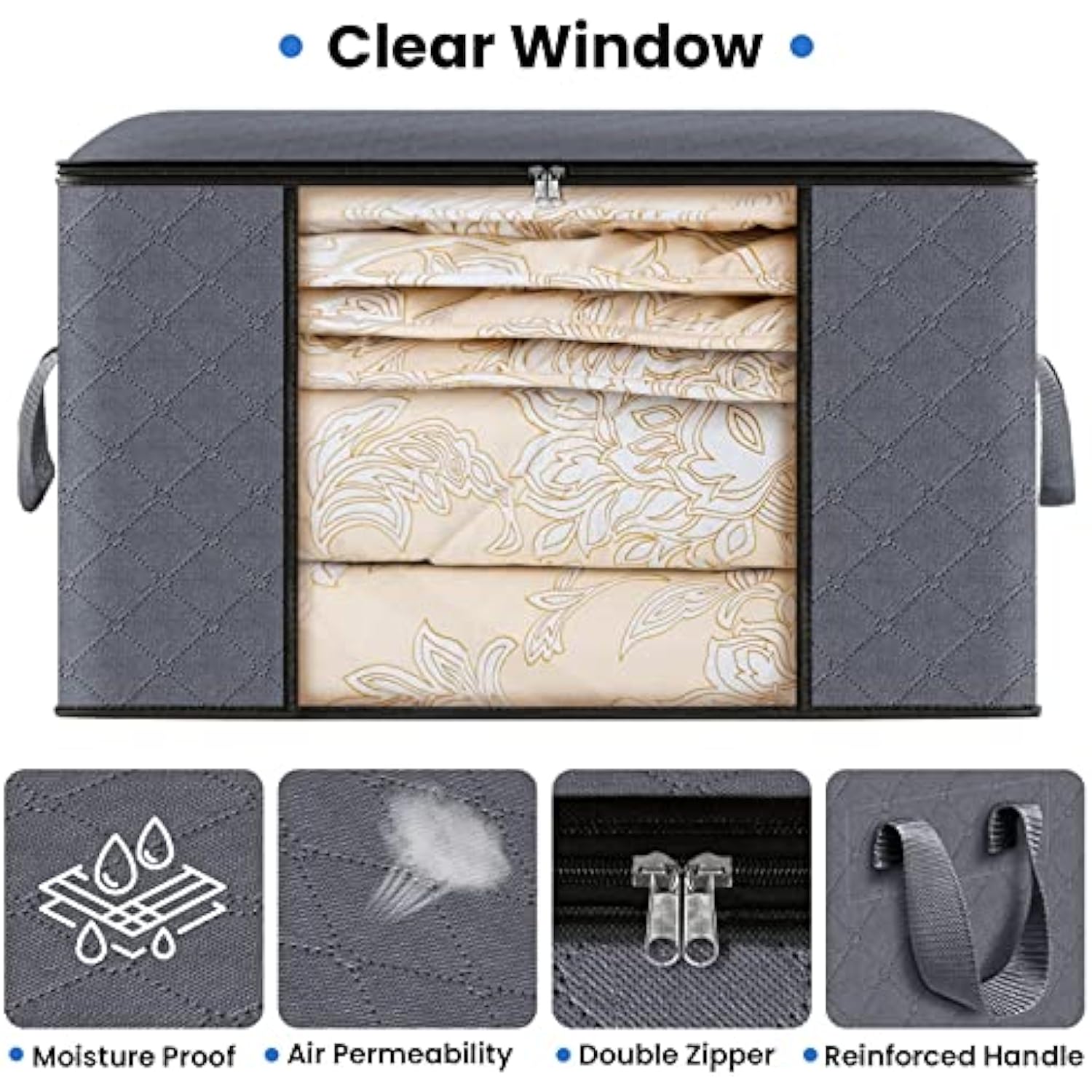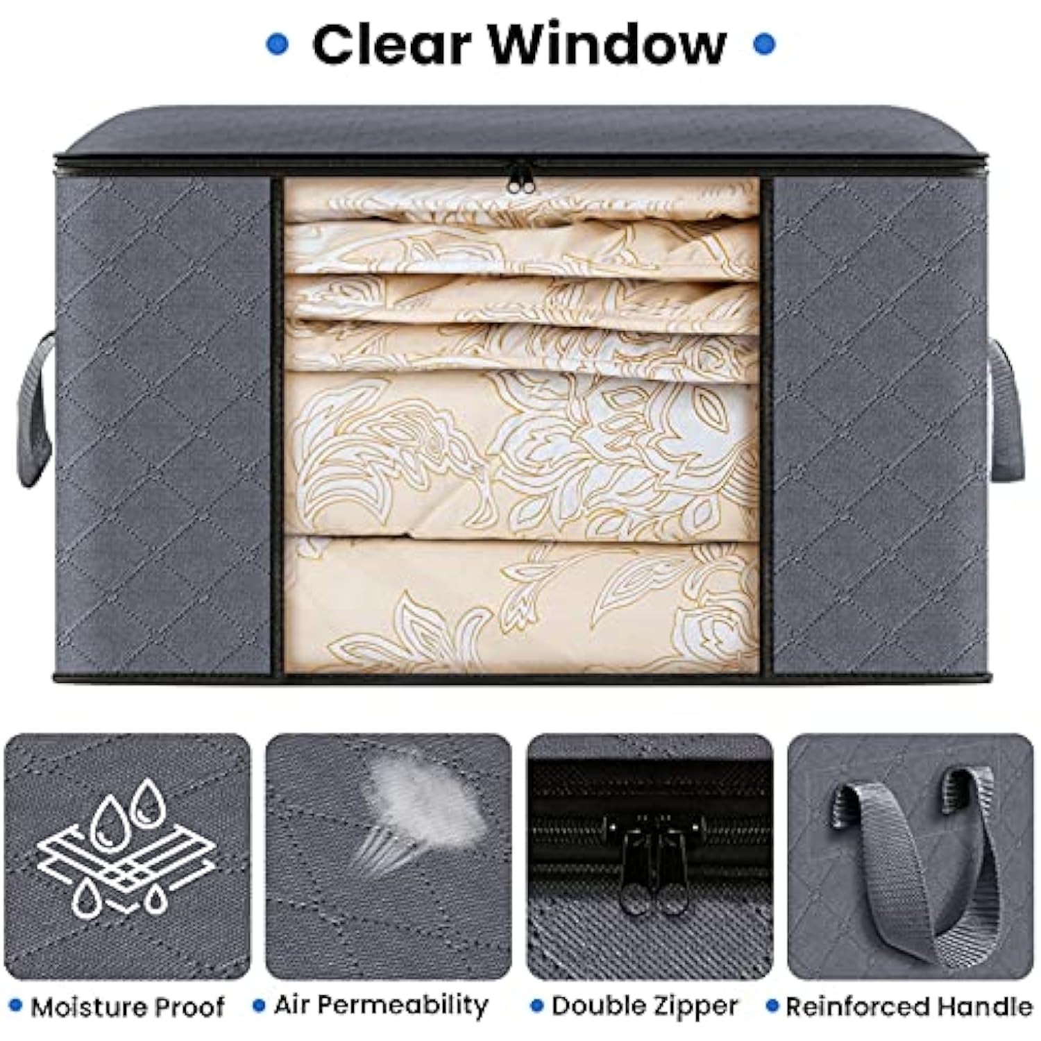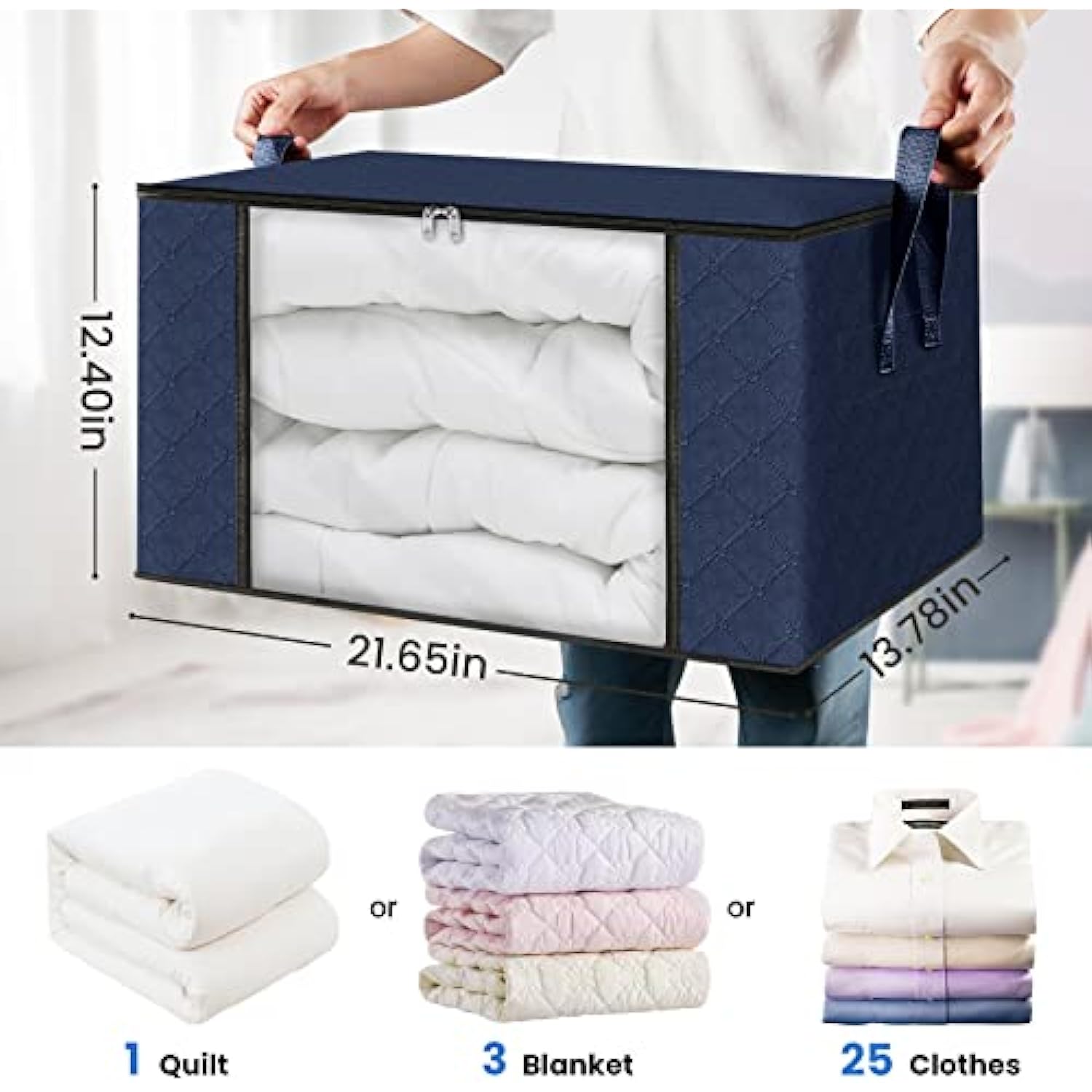- Premium Fabric: 4 pack storage containers for organizing clothing with 60L capacity. Clothes storage is made of high-quality odorless, breathable non-woven fabric to protect your clothes from dust and moisture. Each blanket storage bag measures 21.65''x 13.78''x 12.40''.