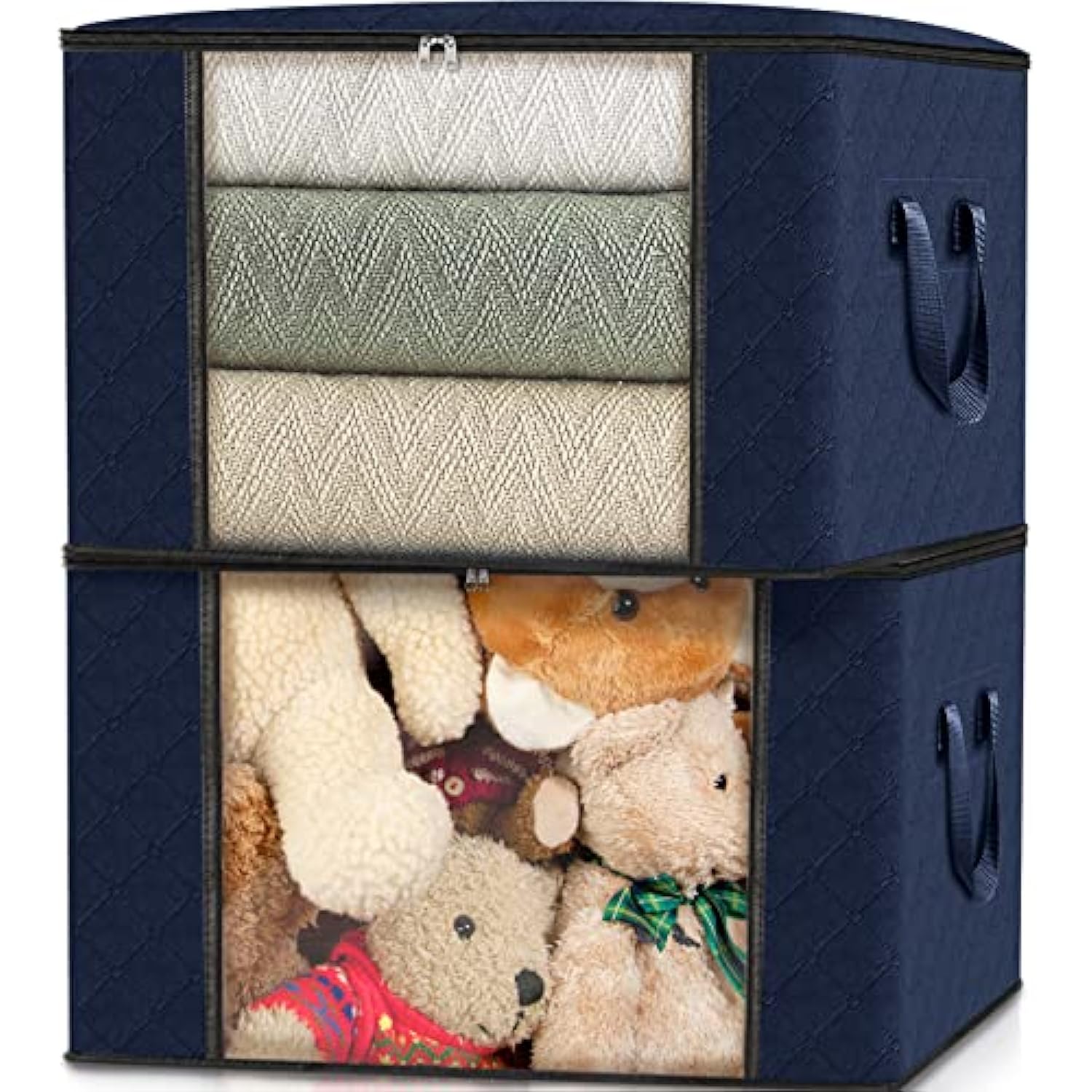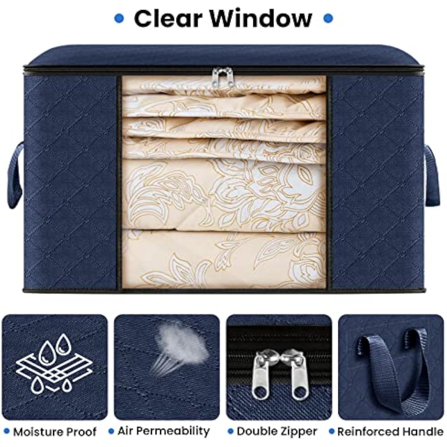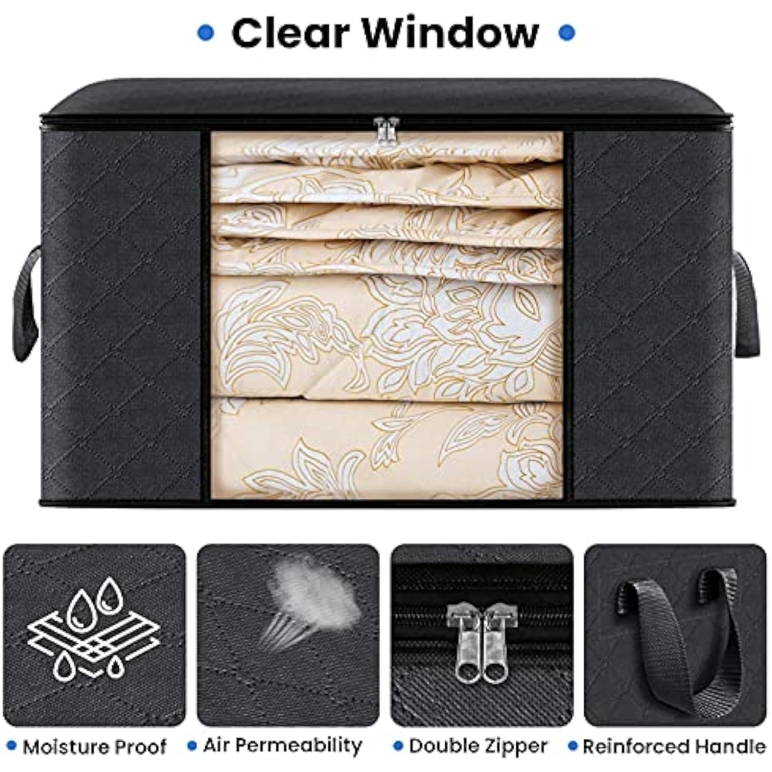 - Premium Fabric: 4 pack storage containers for organizing clothing with 60L capacity. Clothes storage is made of high-quality odorless, breathable non-woven fabric to protect your clothes from dust and moisture. Each blanket storage bag measures 21.65''x 13.78''x 12.40''.