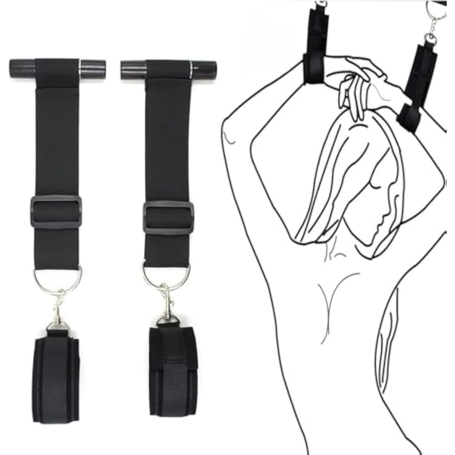 - Versatile Door Frame Restraint System: This Bdsm Bondage Set Transforms Any Standard Door Into A Pleasure Playground, Featuring Adjustable Wrist Cuffs And Sturdy Straps For Secure Over-The-Door Restraint Play. Perfect For