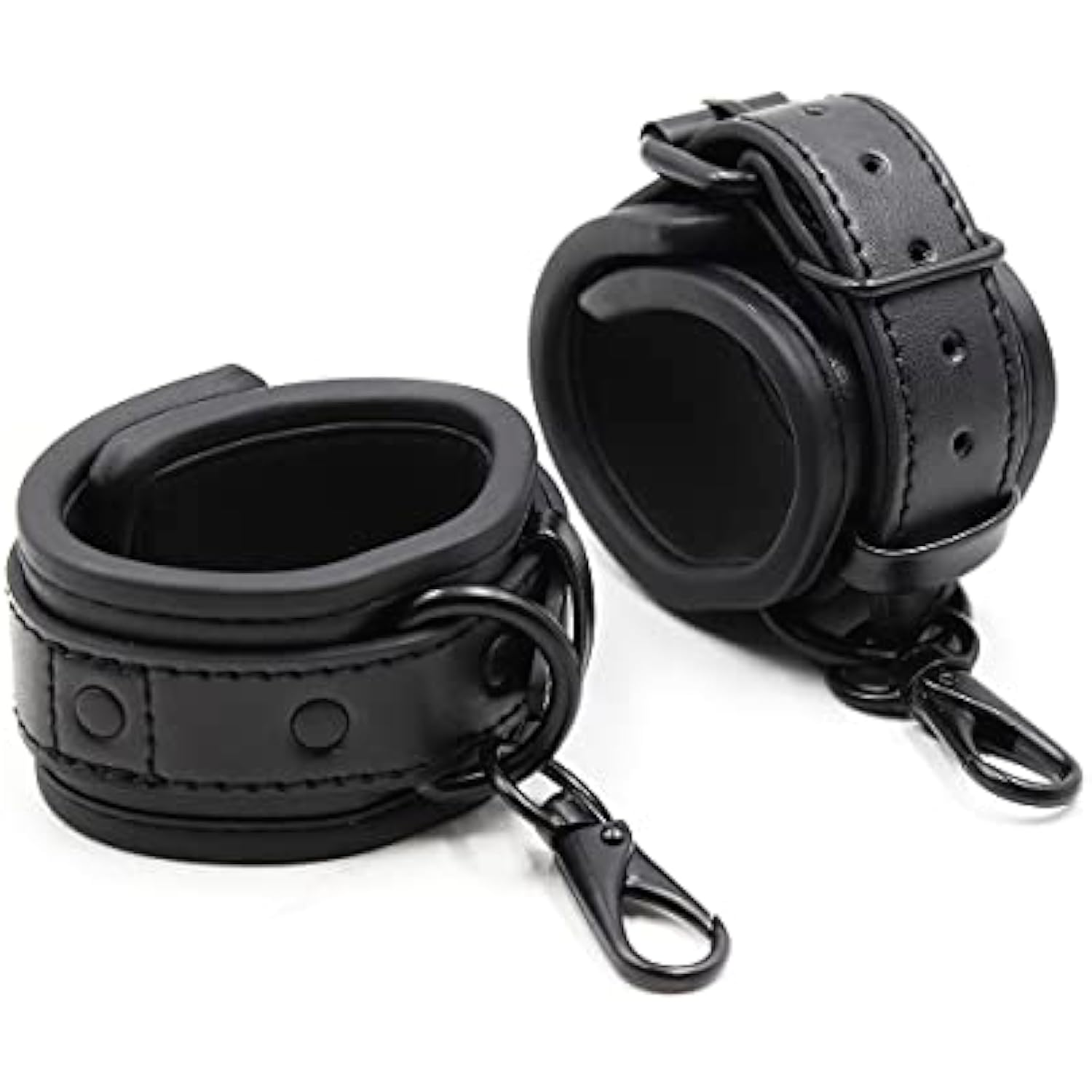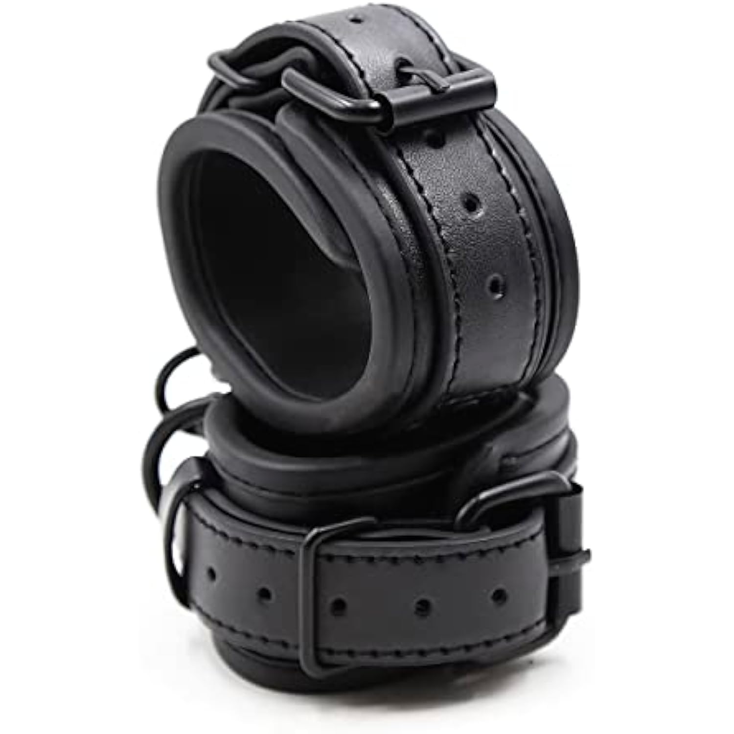 Padded Faux Leather Sex Cuffs, Bdsm Kits Bondage Restraints Toys Bondage Handcuffs Ankle Cuffs For Sex Games (Handcuffs, Black-3)