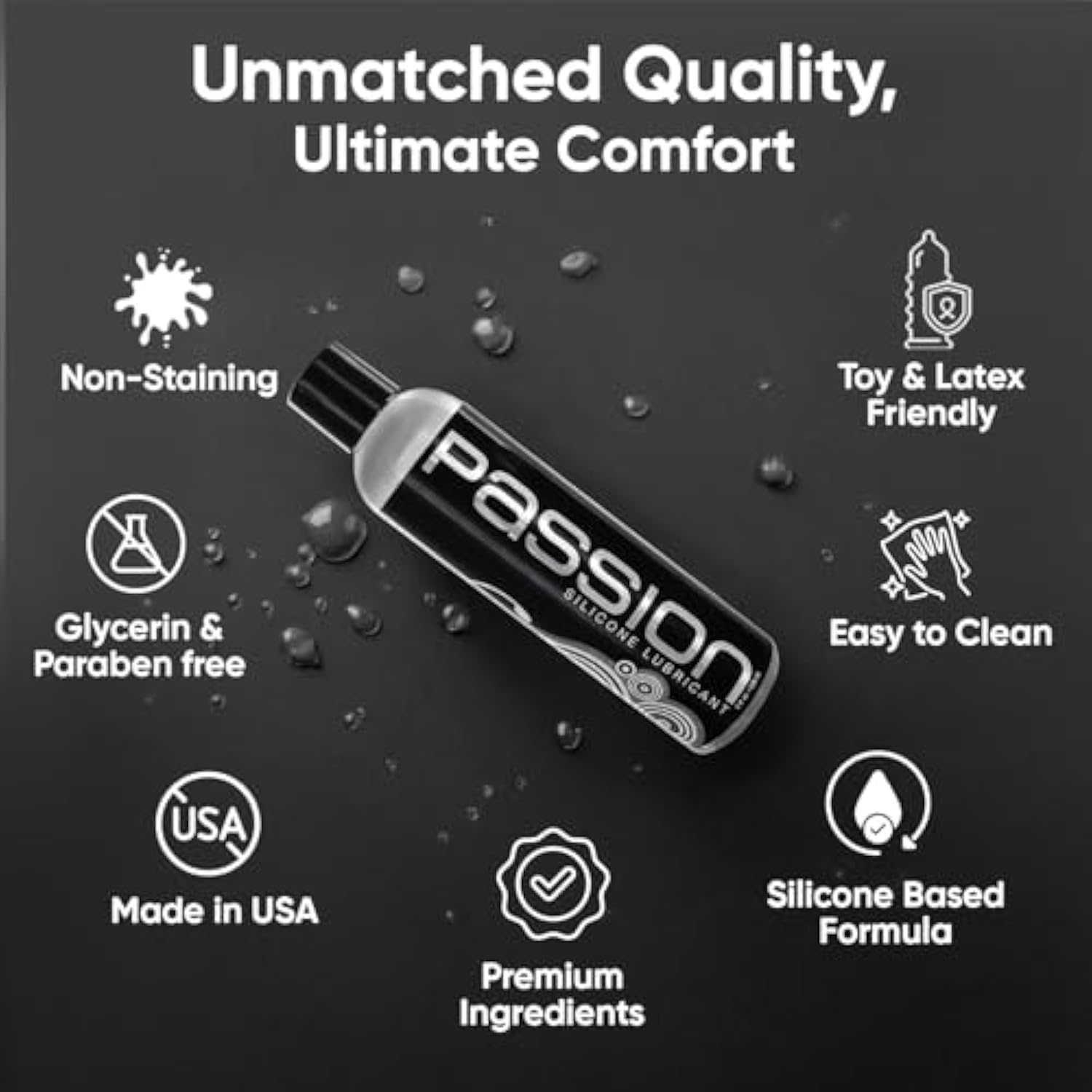 Passion Premium Silicone Lubricant, 2 Fl Oz - Long-Lasting, Non-Sticky Formula, Made In Usa, Smooth Application For Comfort