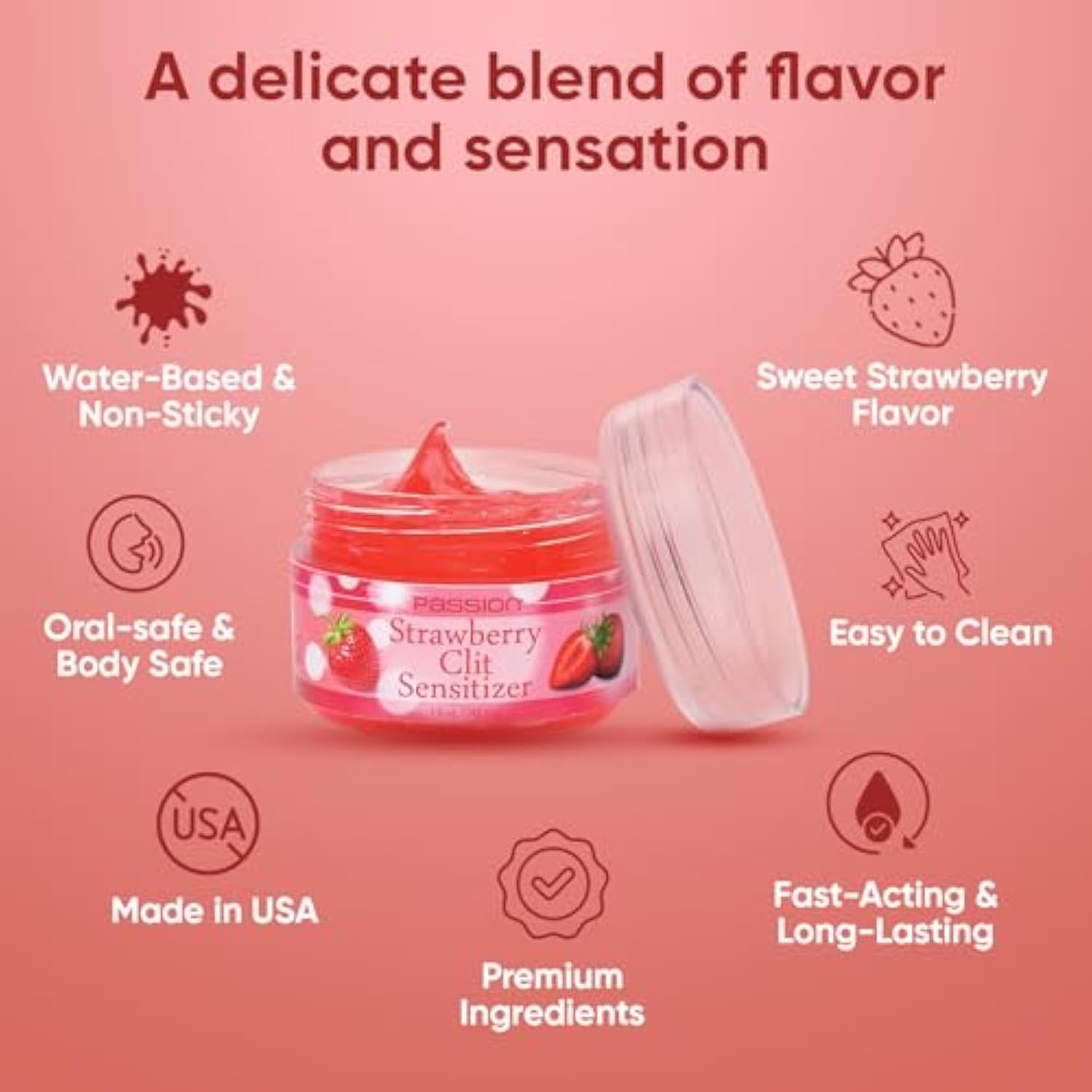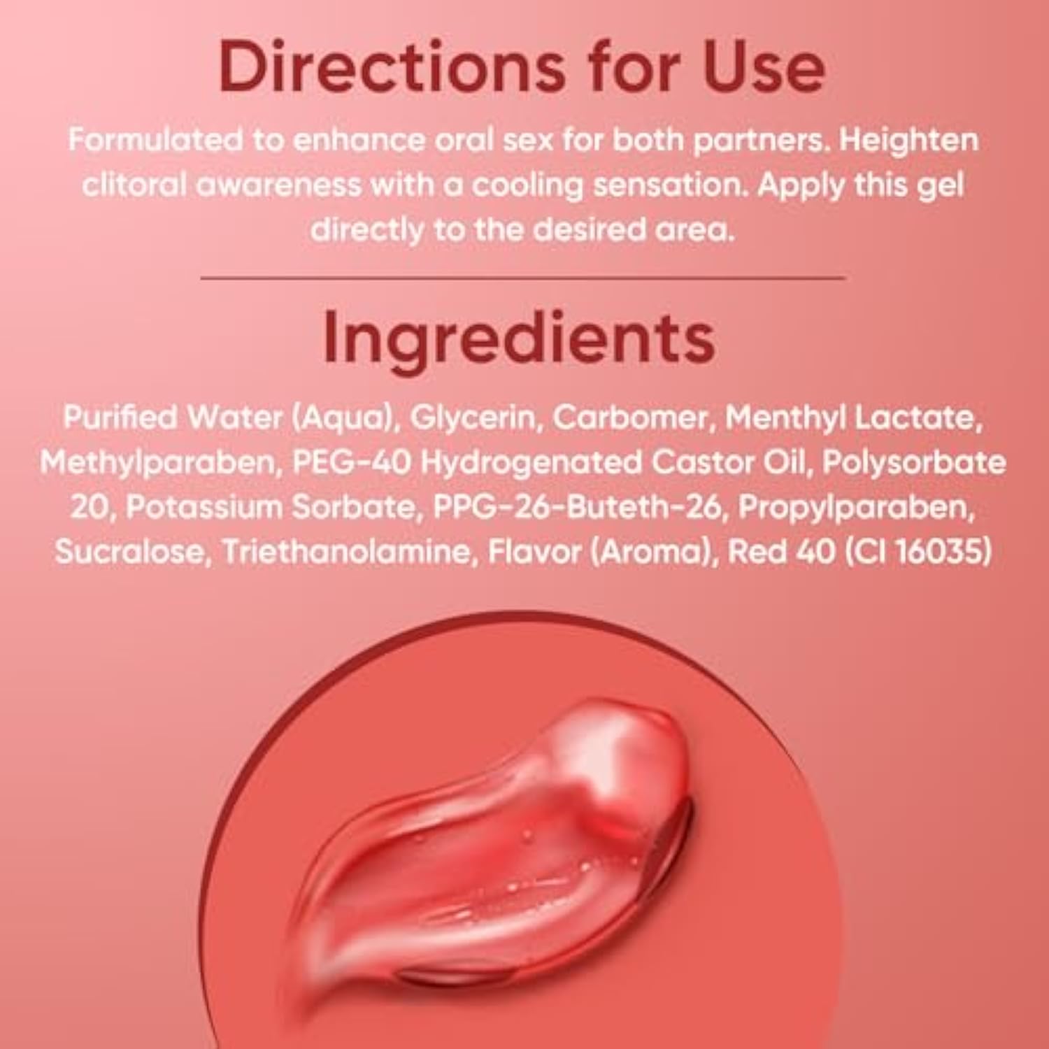 Yummy Strawberryflavor | | Enhances Sensitivity | | Kissable | | Proudly Made In The Usa: Manufactured With Care In The Usa, Ensuring The Highest Standards Of Safety And Effectiveness. | | Versatile Use: Ideal For Those Seeking A Refreshing Gel To Enhance Overall Comfort During Various Activities And Daily Routines. | |