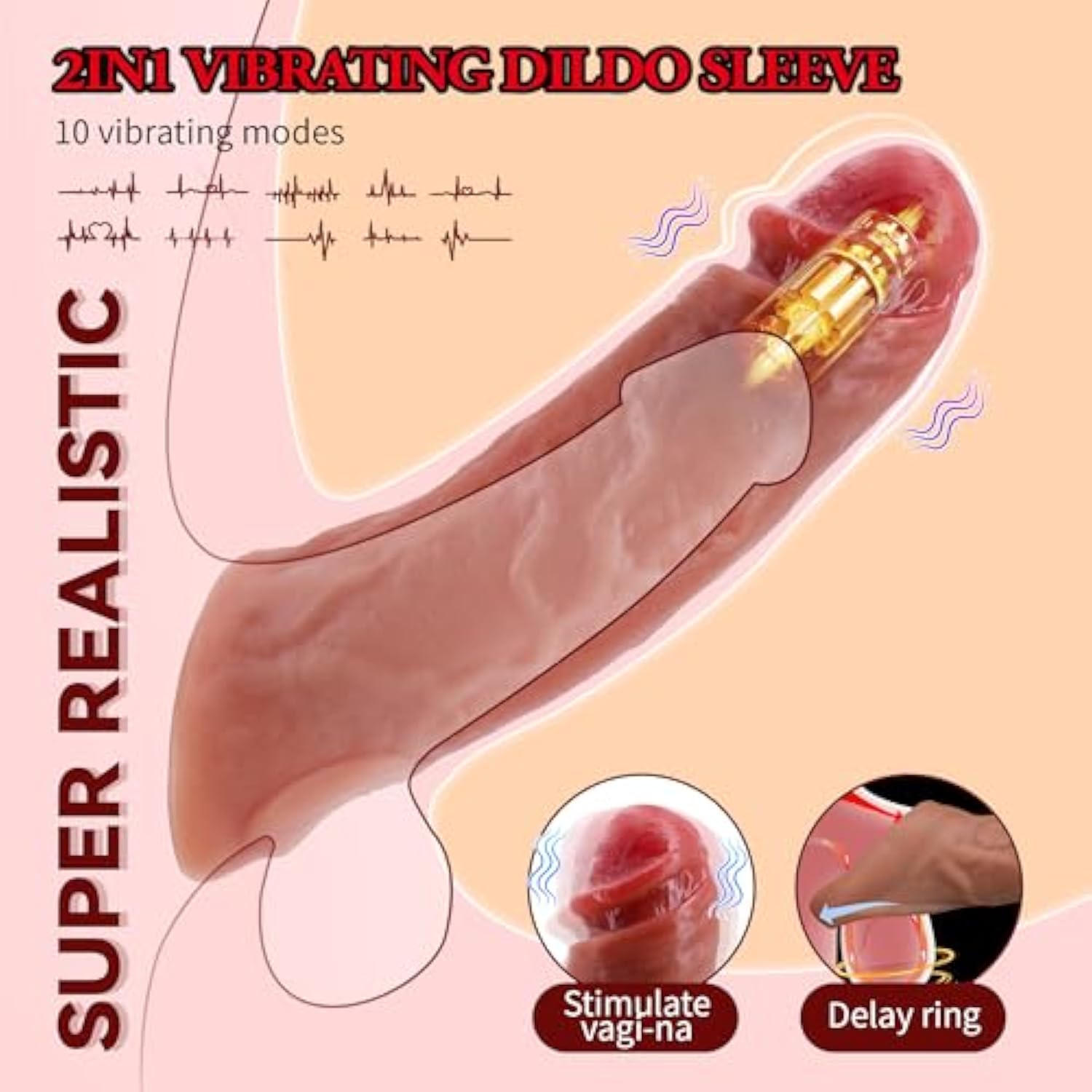 Vibrating Extend Penis Sleeve - Super Realistic Penis Sleeve With Real Appearance And Vessel Vein. With 10 Quiet But Fierce Vibrating Modes. | | 2In1 Remote Control Cock Ring - Realistic Penis Enlargement For Mens Penis Length And Width Extend. Also With Vibration For More Stmilation In Couples Play. | | Extend Girth And Length - Size: 2.36Inch Extend For Penis, Total Length 8Inch, Insertable Length 5.78Inch. Inner Width And Ring 1.37Inch. | | Light And Thin Silicone - Realistic Cock Sleeve Is Made Of Liquid Silicone, Soft And Easy To Clean. Waterproof And Odorless, Easy To Clean. Supple Material Protect Your Tender Skin, Body-Safe To Play. | | Confidential Packing And After-Sale Service - We Provide Professional