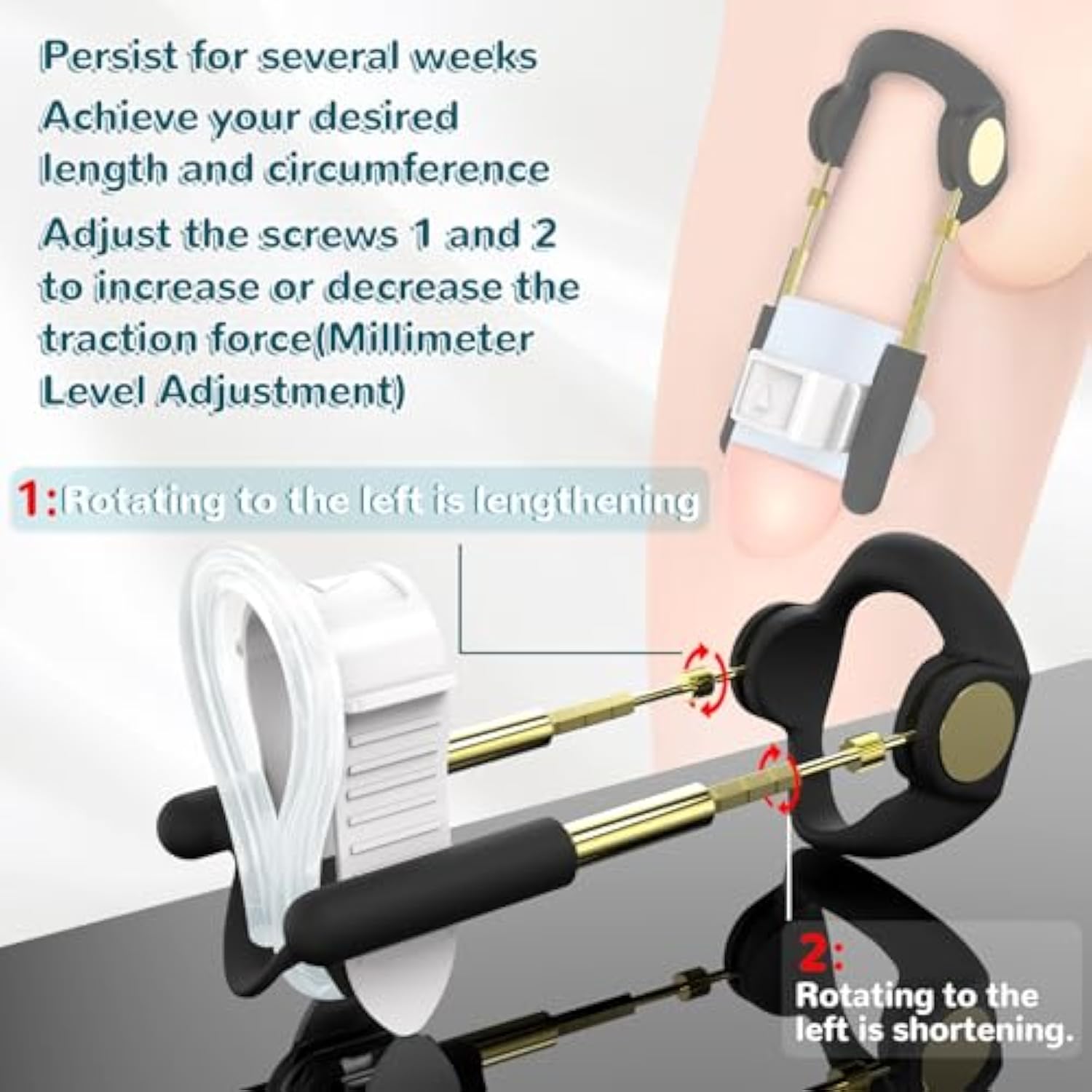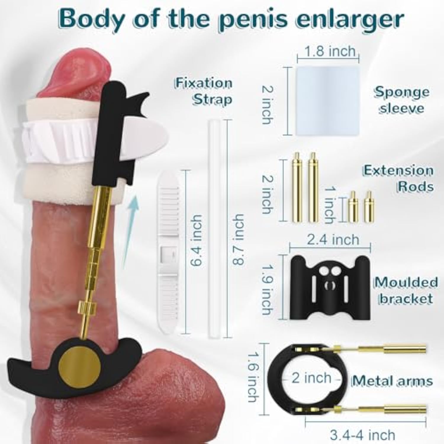 | Precision Adjustable Pennis Extension: Experience A Truly Personalised Stretch With Our Adjustable Penis Extender. Simply Twist The Precision Knob To Increase The Tension And Lengthen Gradually To Your Desired Length β No Additional Tools Required! Whether Your Goal Is Gradual Enhancement Or Improved Curvature, This Portable Stretcher Can Be Adapted To Suit Your Needs And Preferences | | Enjoy Ergonomic Comfort And A Secure, Non-Slip Fit. The Streamlined, Ergonomic Base Ring Is Designed For All-Day Wear And Moulds To Your Body Without Creating Pressure Points. Meanwhile, The Silicone Band Holds All The Pieces Securely In Place, Even During Light Activity, So You Can Focus On Making Progress, Not Readjusting | | Unrivalled Black And Gold Aesthetics And Quality Construction: Our Sleek Black And Gold Traction Kit Adult Sex Toys Pair A Matte Black Abs Plastic Frame With Gleaming Nickel-Plated Brass Rods To Create A Bold, Long-Lasting Look. Unlike Other Penis Stretcher Devices With Exposed Threads, Ours Has A Smooth Metal Rod So You Can Wear It Without Worrying About It Rubbing Against Your Skin | | Simple To Install And Easy To Operate: The Penis Extender Takes Less Than Two Minutes To Set Up: Snap On The Helmet, Slide In The Bar, Attach The Strap, And You'Re Ready To Go. The Concise Instruction Guide Will Talk You Through The Best Way To Use It, Ensuring You Start Using It Safely And Securely | | Confidential Packaging And Travel-Friendly Design: To Protect Your Privacy, This Compact Penis Pump Comes In A Plain Box, So No One Will Ever Know What'S Inside | |