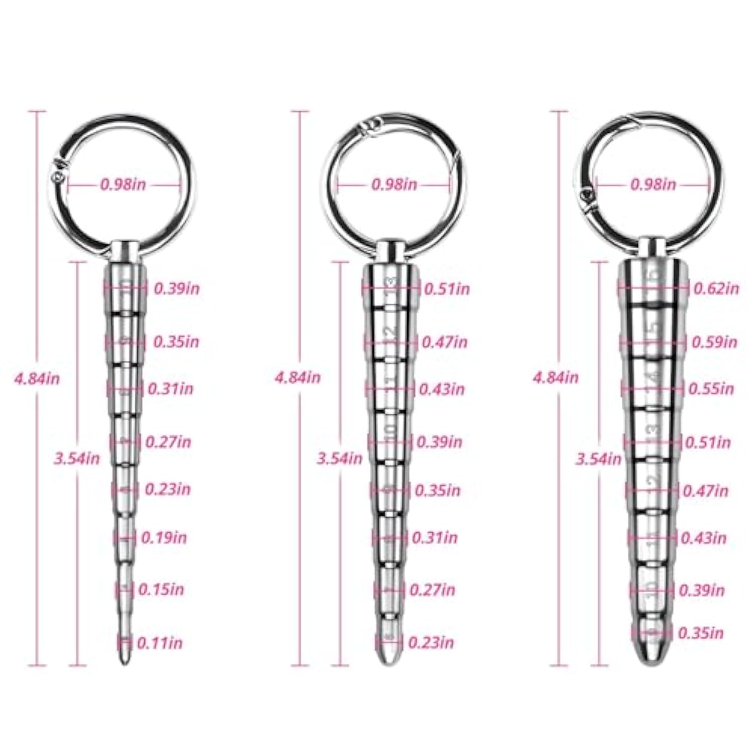 | Round Carabiner Clip: The Urethral Plug Is Designed With An O-Shaped Carabiner Clip On Top, Which Not Only Allows You To Freely Control The Speed And Rhythm Of Insertion And Removal, But Also Effectively Prevents Inadvertent Dropping And Shifting Of The Position, Making The Sexual Journey Safer. You Can Also Buckle The Penis Plug On Your Pants And Carry It Around With You, So You Can Enjoy Your Pleasure Whenever And Wherever You Want | | Ergonomic Design: The Urethra Sound Has A Tapered End For Easy Insertion Into The Urethra. As The Depth Of Insertion Increases, Its Width Gradually Increases For Better Dilation And Stimulation Of The Urethra. Let You Feel The Pleasure From Emptiness To Fullness And Enjoy Urethral Orgasm To The Fullest | | Urethra Training: 3 Different Widths Of Urethral Dilators Are Included, Perfect For Urethra Training. Start Training With Small Penis Plugs, Slowly Move To Medium Penis Plugs And Finally Upgrade To The Largest Penis Plugs To Continuously Improve Your Sexual Performance And Maximize Your Urethral Limits For A Perfect Sexual Experience | | Scale Design: The Unique Scale Design Of The Urethral Plugs Make Every Progress Clearly Visible. When You Record The Maximum Width You Can Reach During Each Training Session, You Can Visualize The Progress Of Your Sexual Ability And Get A Full Sense Of Achievement | | High Quality Material: The Urethral Sounding Is Made Of Stainless Steel, Which Has A Smooth Touch And No Sharp Gaps Or Cracks, Bringing You A More Comfortable Sex Experience. The Waterproof Feature Allows For Better Cleaning Of The Penis Dilator. Keep The Urethral Dilator Clean, So You Can Use It With More Peace Of Mind | |