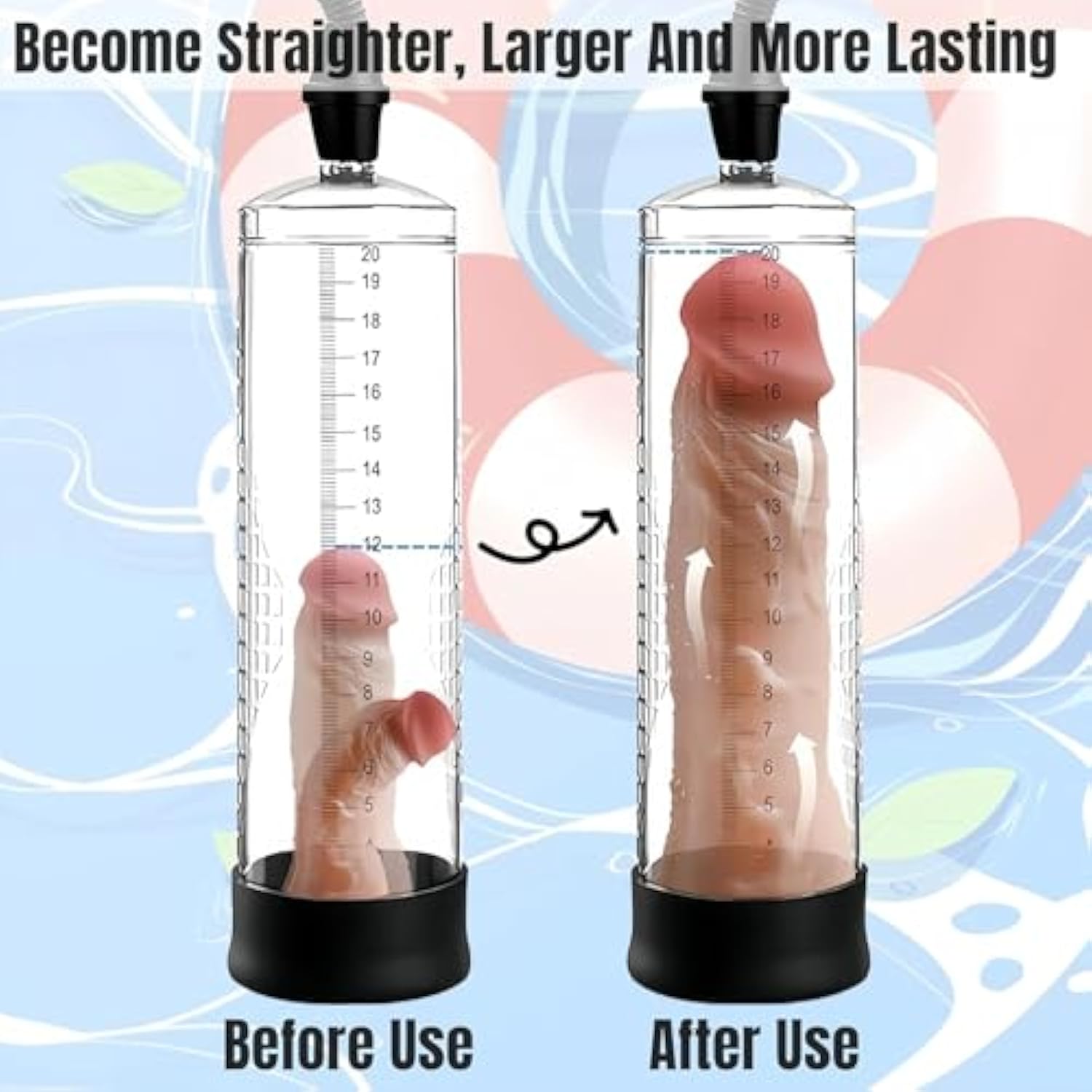 | Manual Design Vacuum-Based - This Manual Penis Enlargement Pump Is Designed To Be Held Comfortable. Facilitating Your Convenient Adjustment Of The Air Pressure Up To Your Maximum Tolerance. This Skin-Friendly Vacuum Effect Prompts The Blood Circulation Within The Penis, Making You To Attain Your Desired Girth And Length. Additionally, It Has The Potential To Increase Your Erection Duration And Enhance Your Sexual Performance | | Safe For The Skin Gentle And Comfortable - This Penis Pump Is Made Of Liquid Silicone And Abs Materials, Which Possess Good Strength And Toughness And Are Friendly To The Skin. It Is Gentle, Comfortable And Non-Irritating. You Only Need To Exercise Weekly, And There Will Be A Considerable Effect Of Increasing Erections. The Larger The Erections, The More Satisfying The Sex Life | | 3D Visual Design Soft Penis Sleeve - The Transparent Tube Of The Penis Erection Training Pump Is Designed With A Clear Scale, So You Can Clearly See The Continuous Changes Of Your Penis When Using It. It Is Also Equipped With A Soft Vaginal Sleeve That Can Be Used Together With The Penis Pump | | Manual Operation Erectile Assistance - Manually Operating This Physical Vacuum Pump To Help You Achieve An Erection Not Only Enables You To Better Control The Process And Intensity Of The Erection, But Also Reduces Your Anxiety And Psychological Stress Caused By Erectile Problems During The Usage, Which Is Conducive To Achieving A Better Performance And Experience In Sexual Life | | Size Suitable For All Men Waterproof - This Physical Vacuum Penis Pump Is Elaborately Designed And Truly Achieves A Size Suitable For All Men. Whether You Are Tall Or Short, Whether Your Body Type Is Overweight Or Thin, It Can Fit Perfectly | |