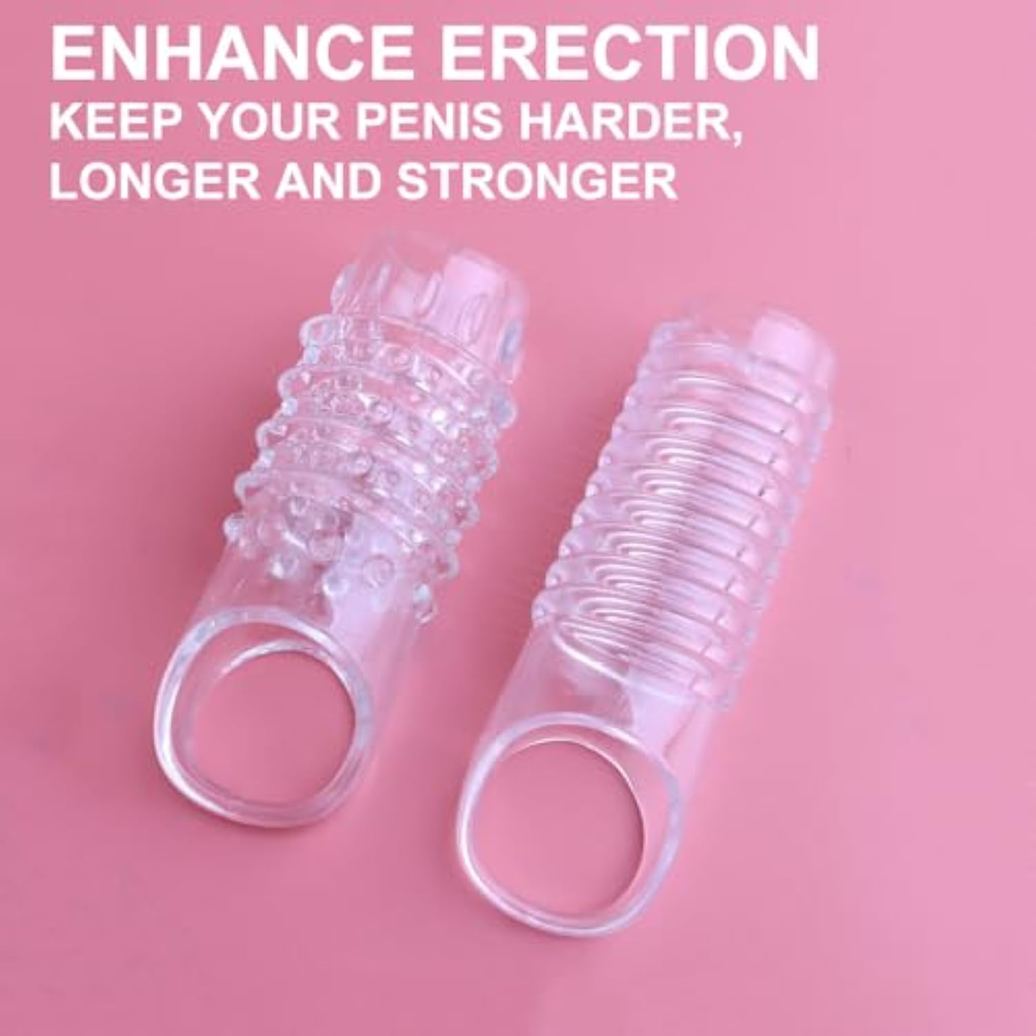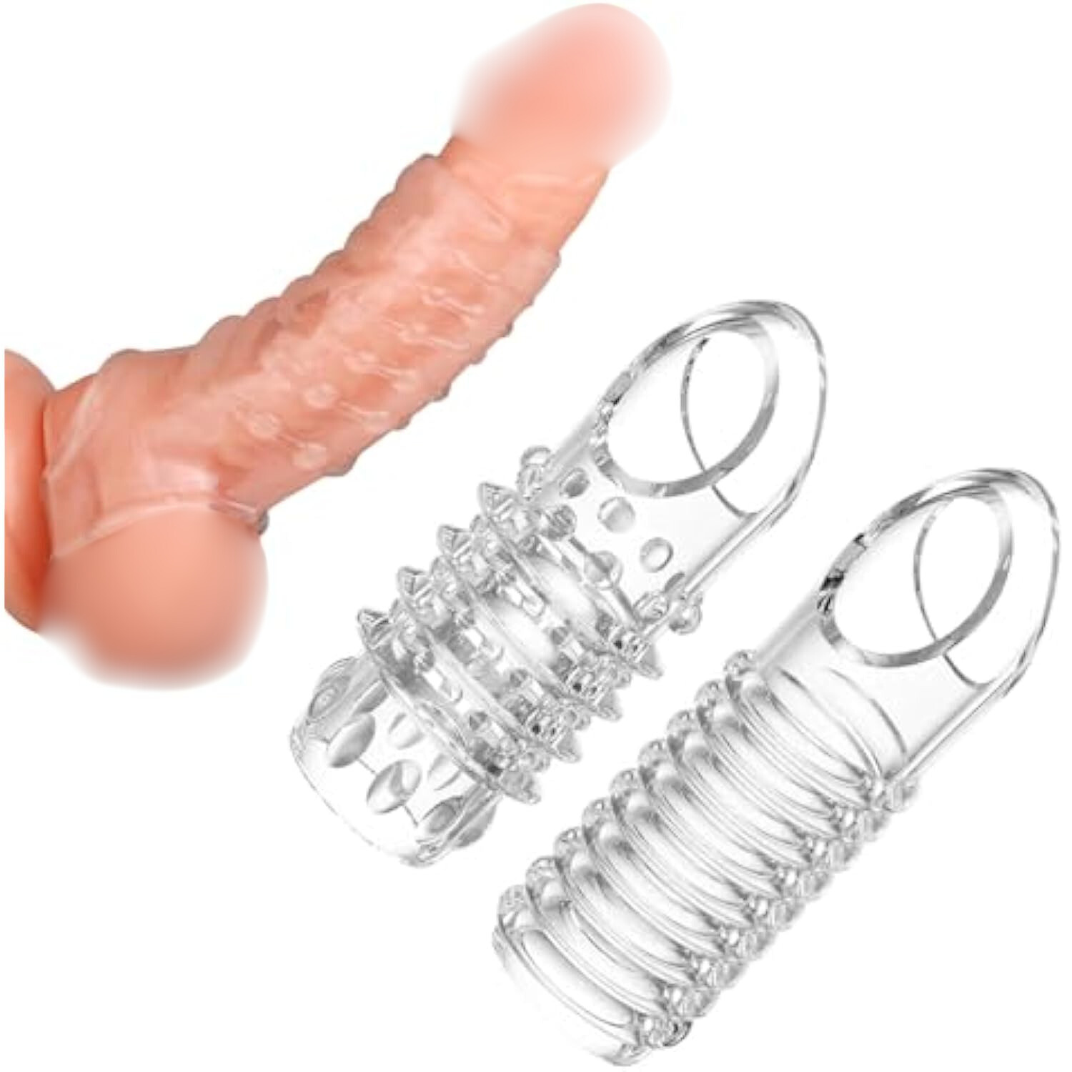 Penis Rings Cock Sleeve For Men,Silicone Cock Rings 2Pcs Stretchy Textured Studded Stretchy,Erection Enhancing Enhance Men Enlarger For Go-Long Stamina (Transparent)