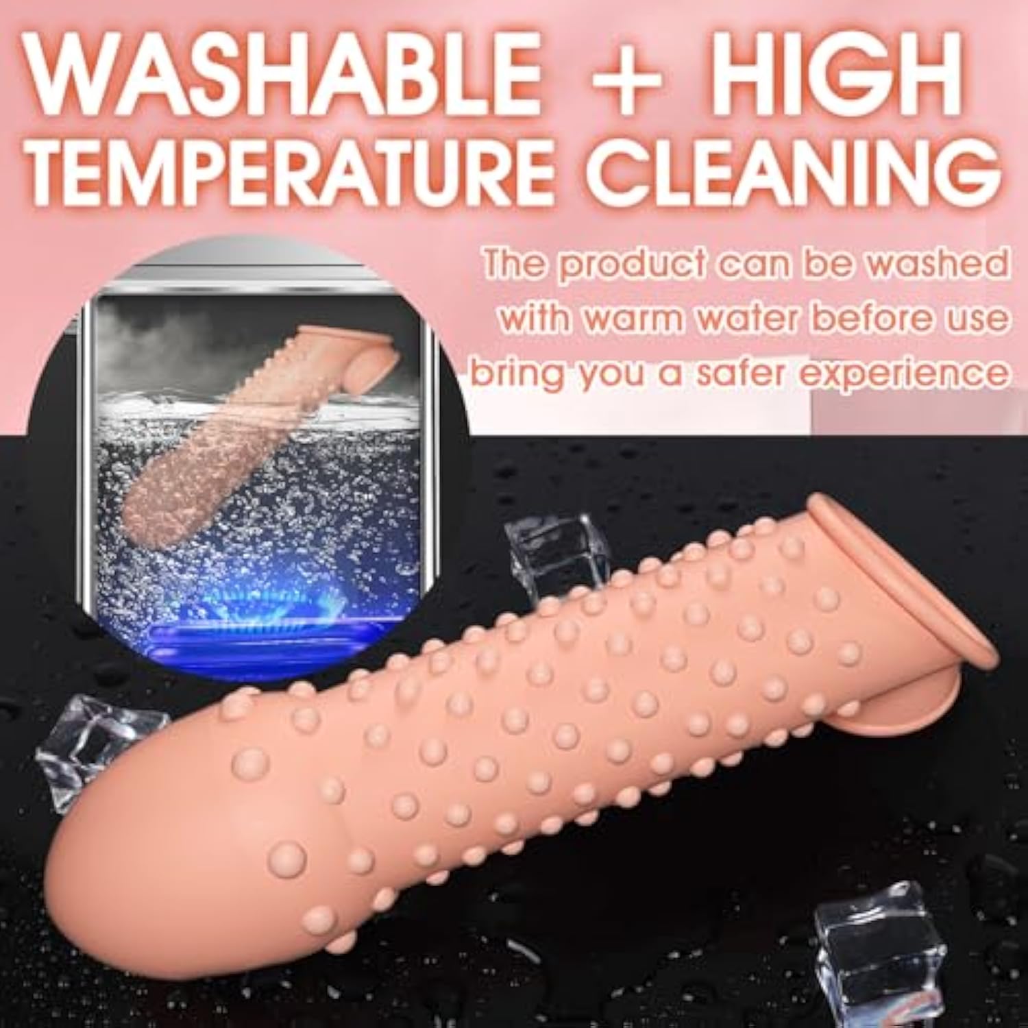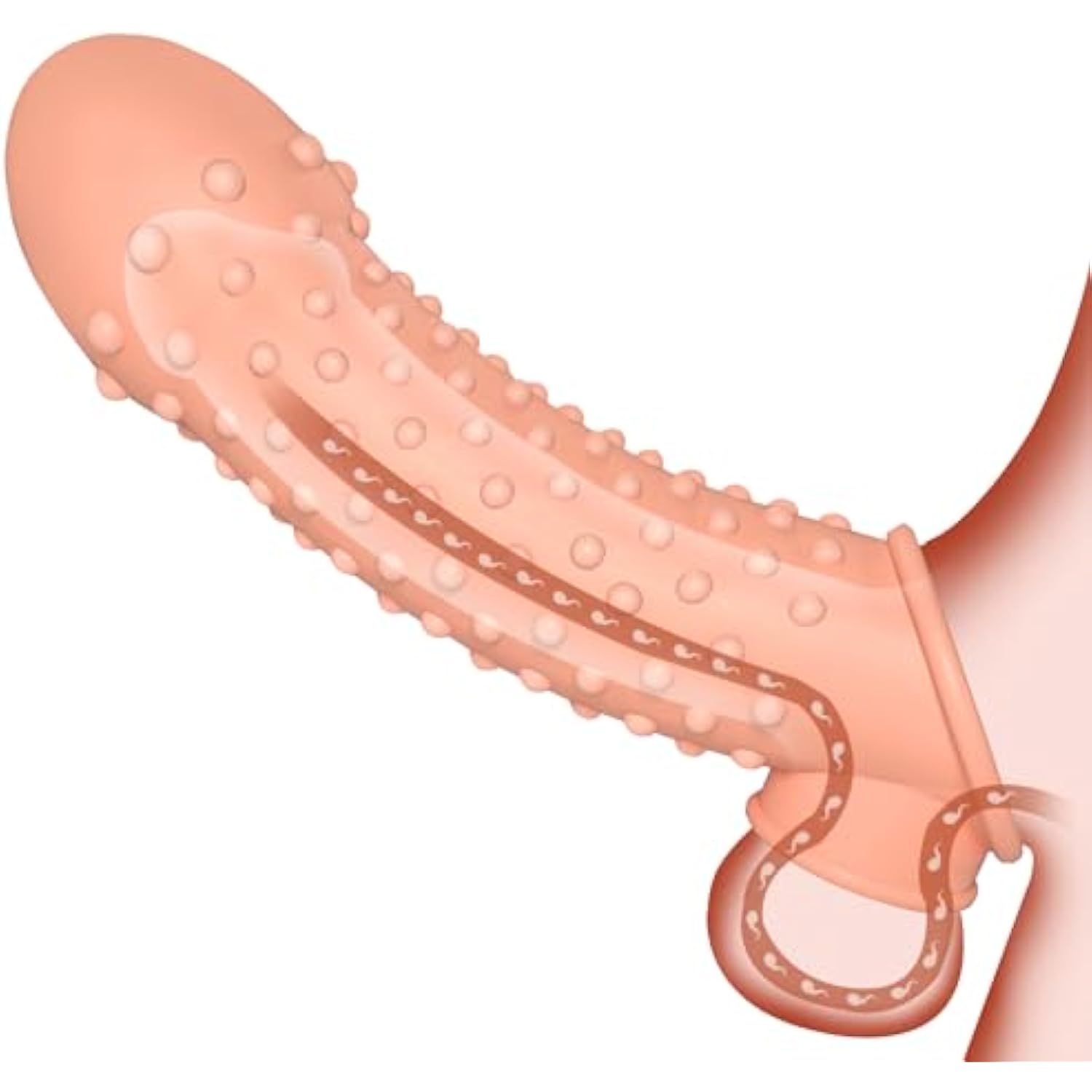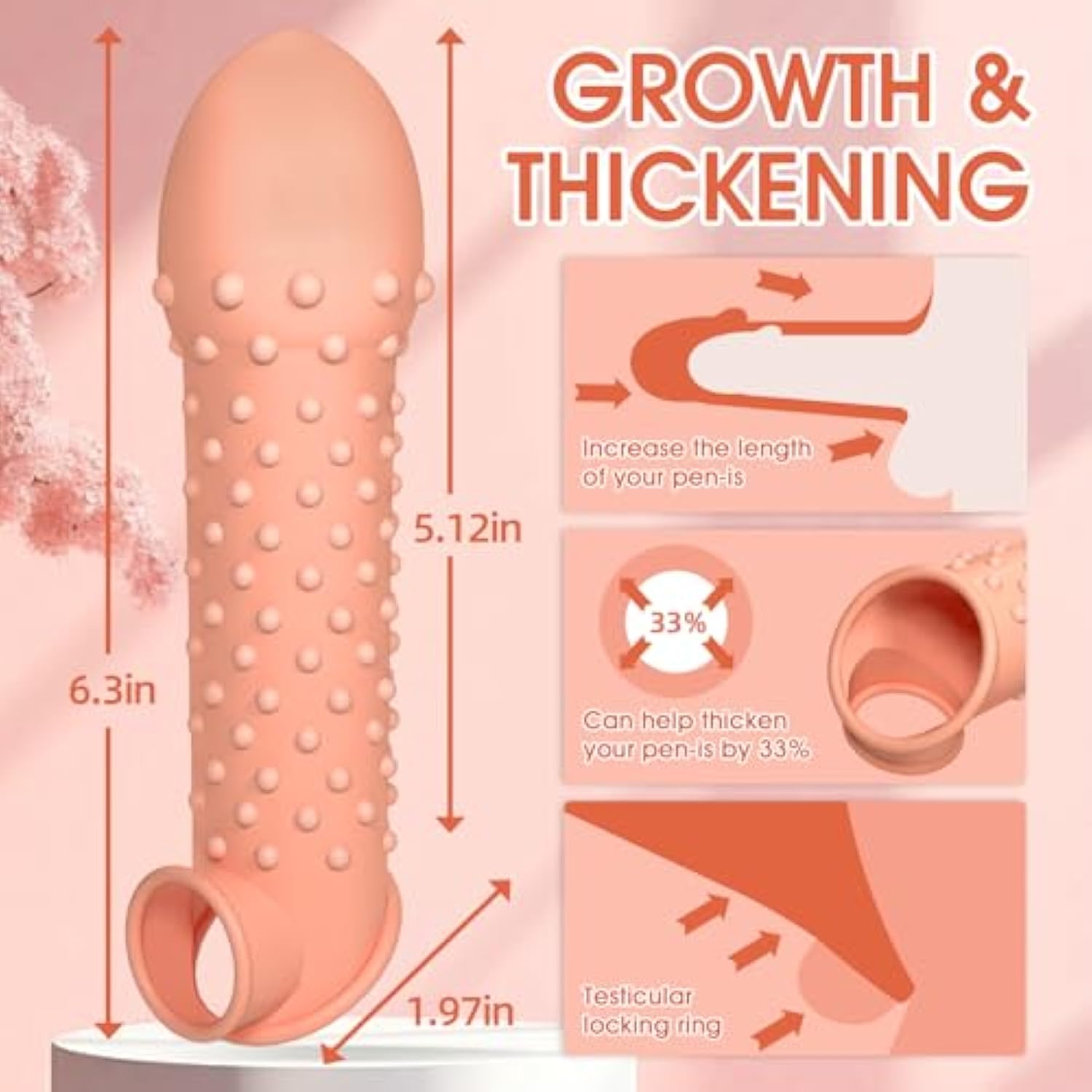 - ?New Design?: Brand New Design Wearing Our Penis Sleeve Bring Different Sensory,Soft Granules On The Outside.It Will Help You To Add More Girths. Our Penis Sleeve Comes With A Ring With Sperm Locking Feature Underneath. It Has Our Exclusive Design Textu